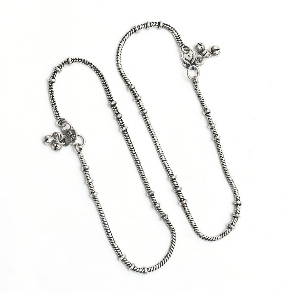 Mominos Fashion Kamal Johar Oxidised Light Weight Silver Anklets