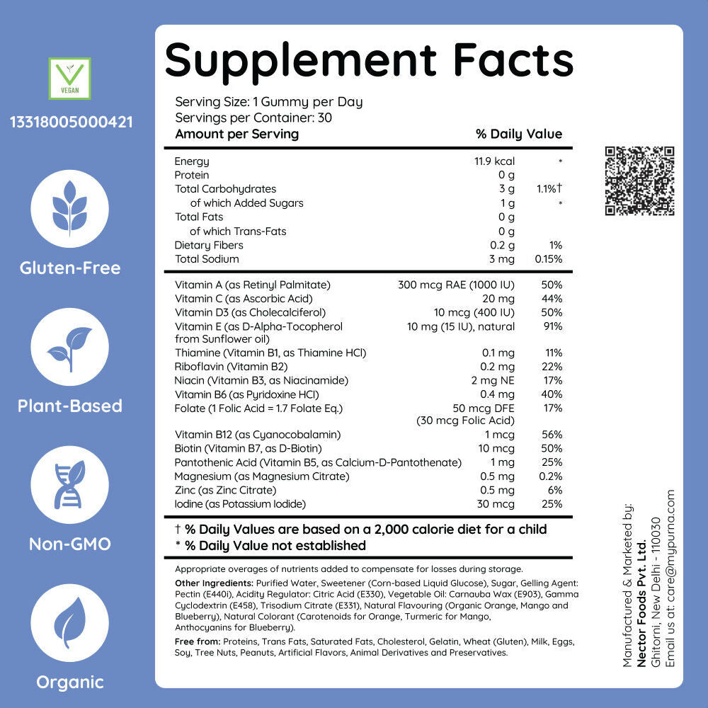 Purna Gummies Kids Multivitamin Gummies for Growth, Immunity and Health