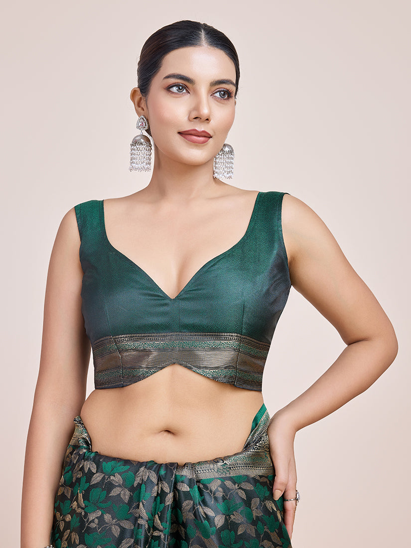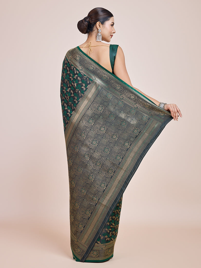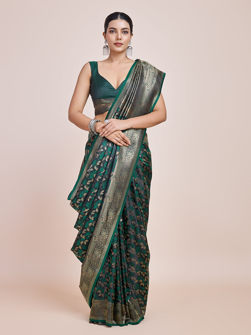Monjolika Fashion Banarasi Satin Silk Dark Green Weaving Designer Saree