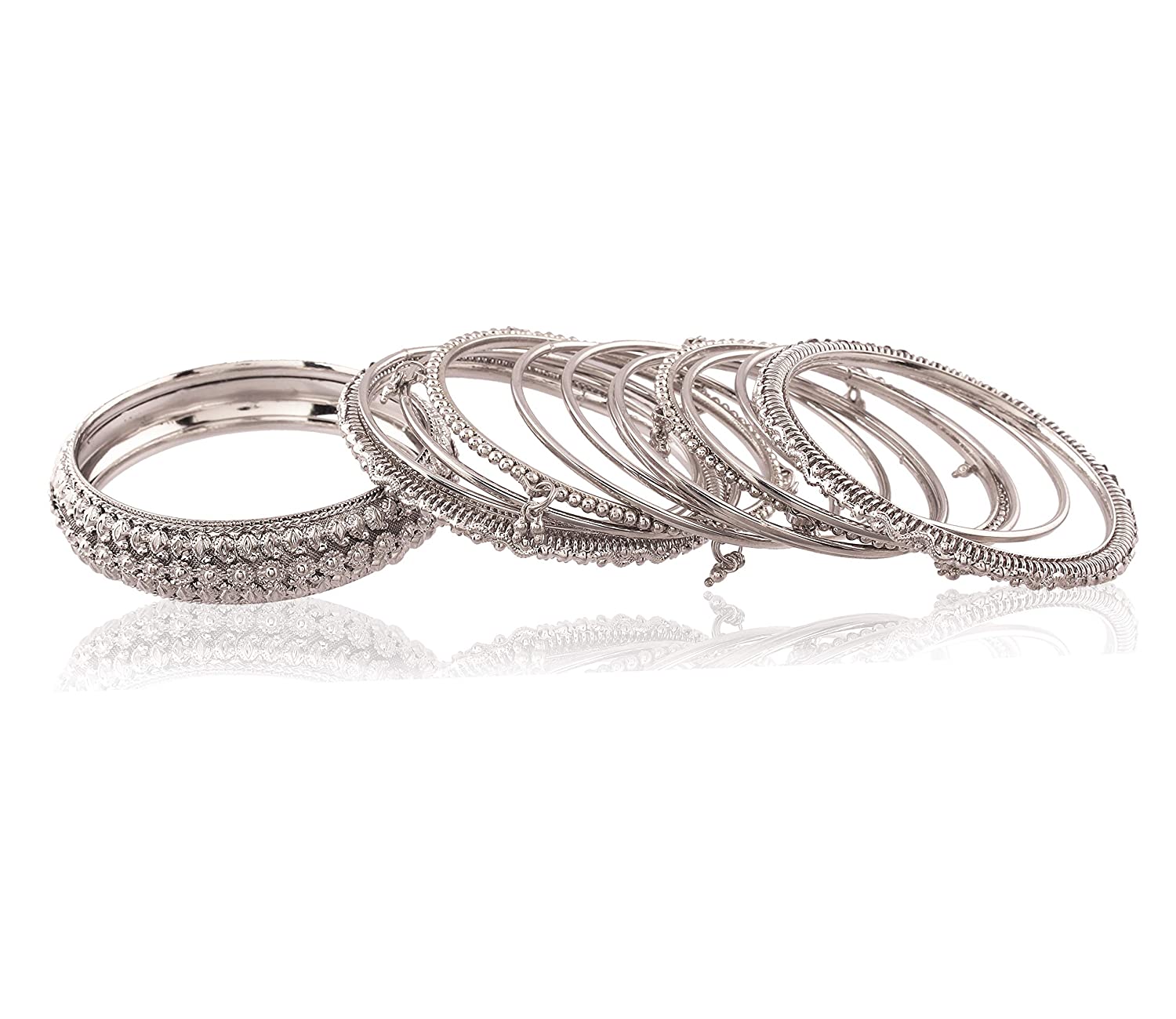 Navratri Ethnic Traditional Silver Plated Oxidized Bangles Set Jewellery for Women/Girls - Wahe Jewels