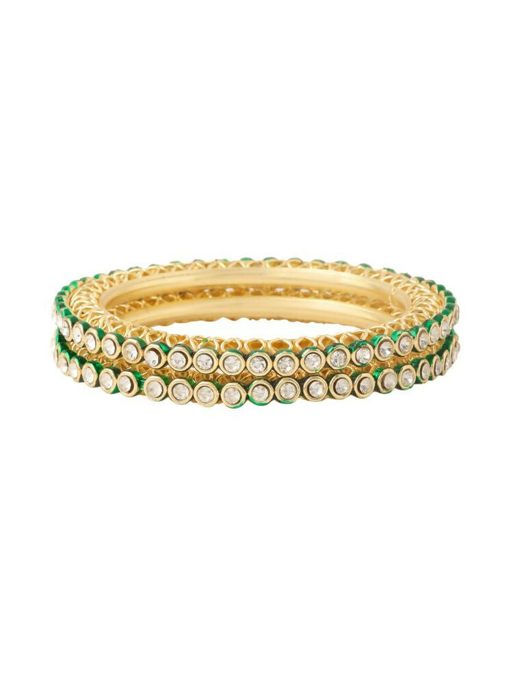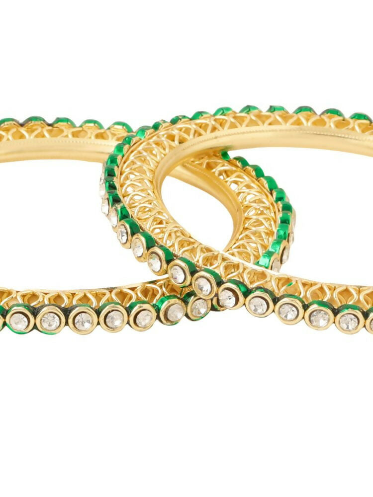 NVR Women Set of 2 Gold-Polished Green Kundan Studded Bangles