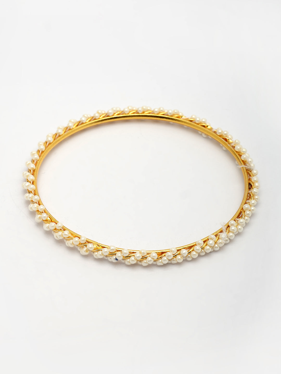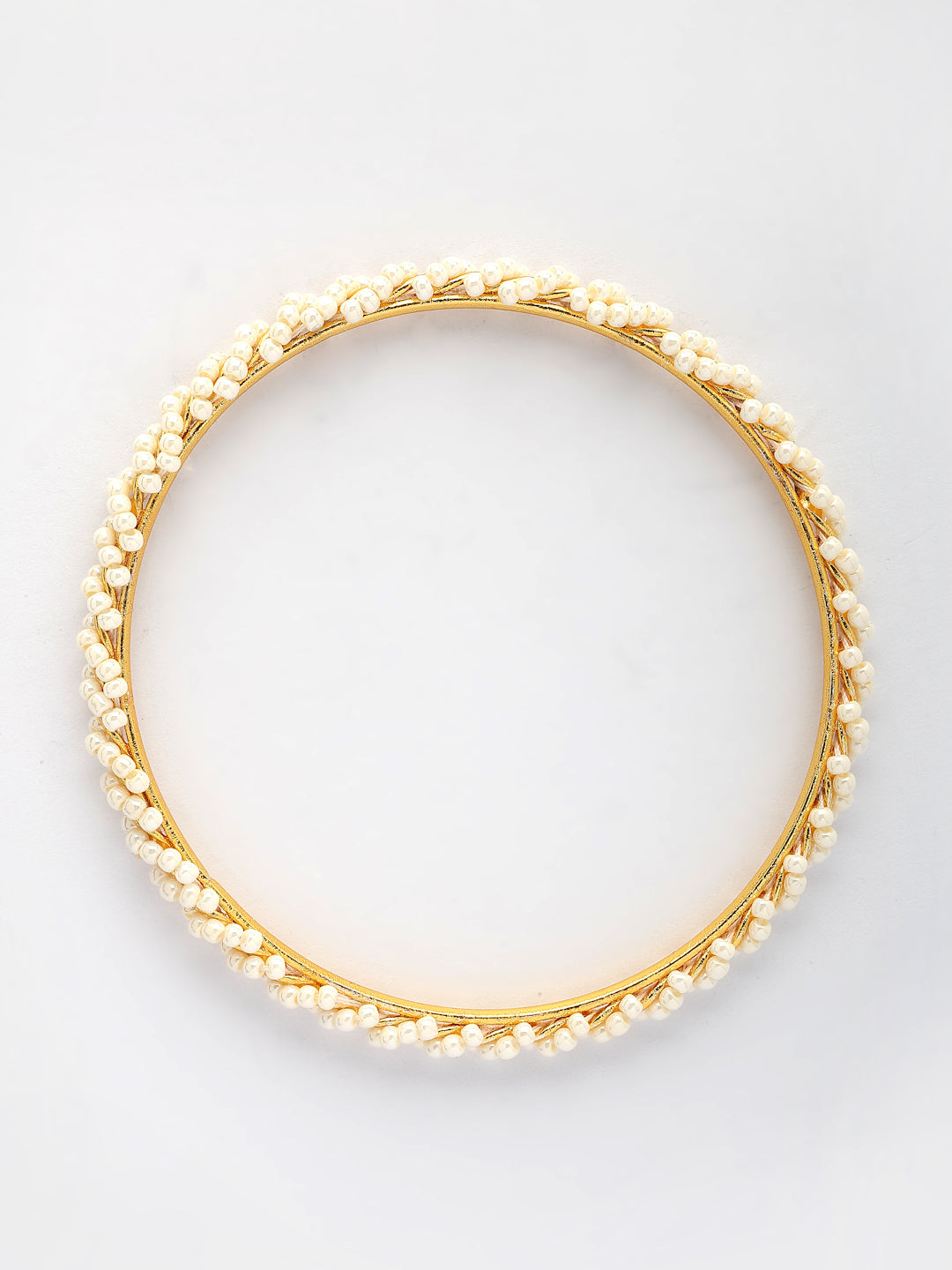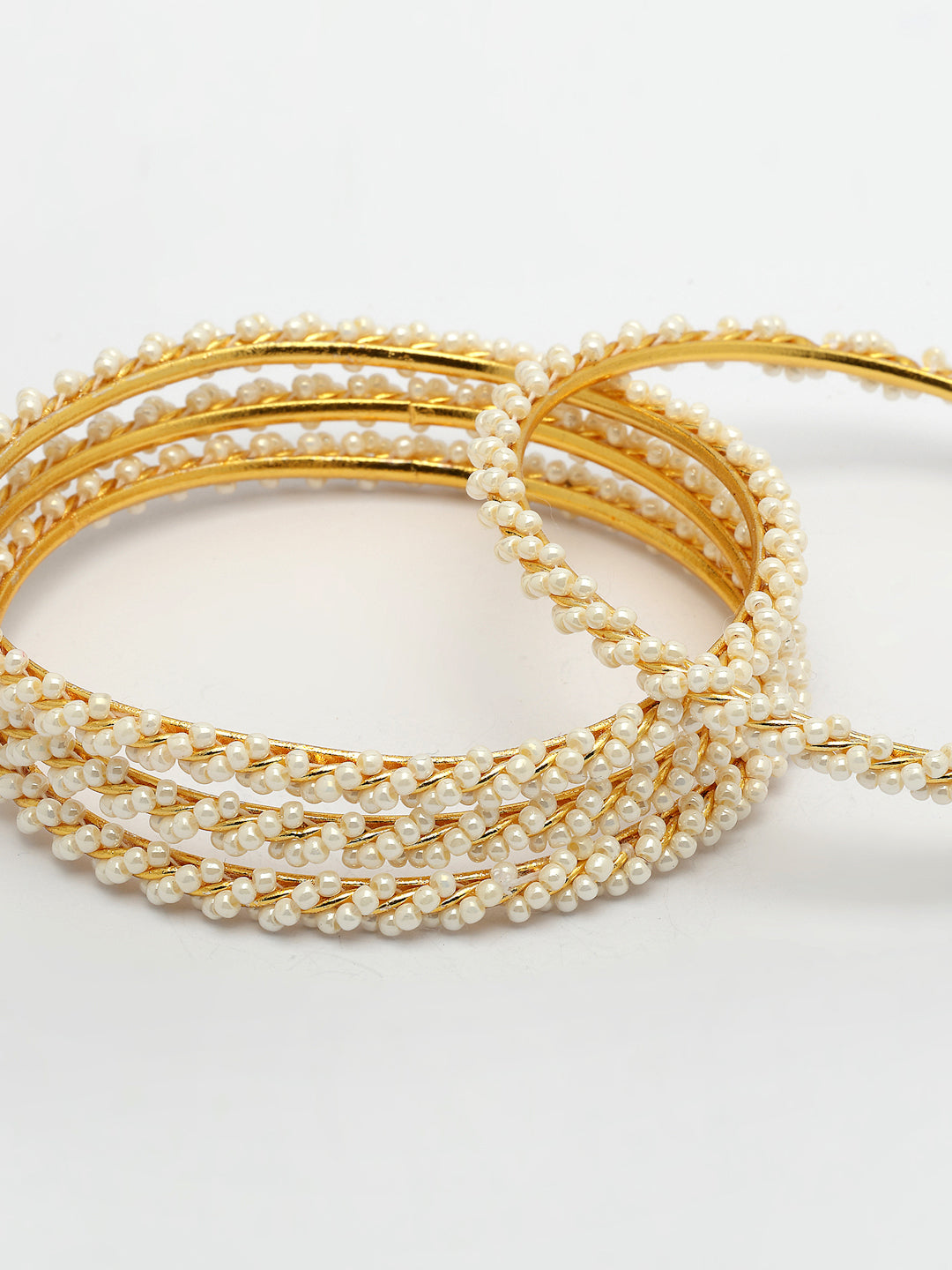 NVR Women Set of 4 Gold-Polished Pearls Handcrafted Traditional Bangles