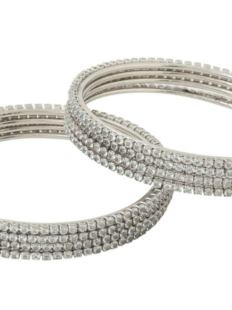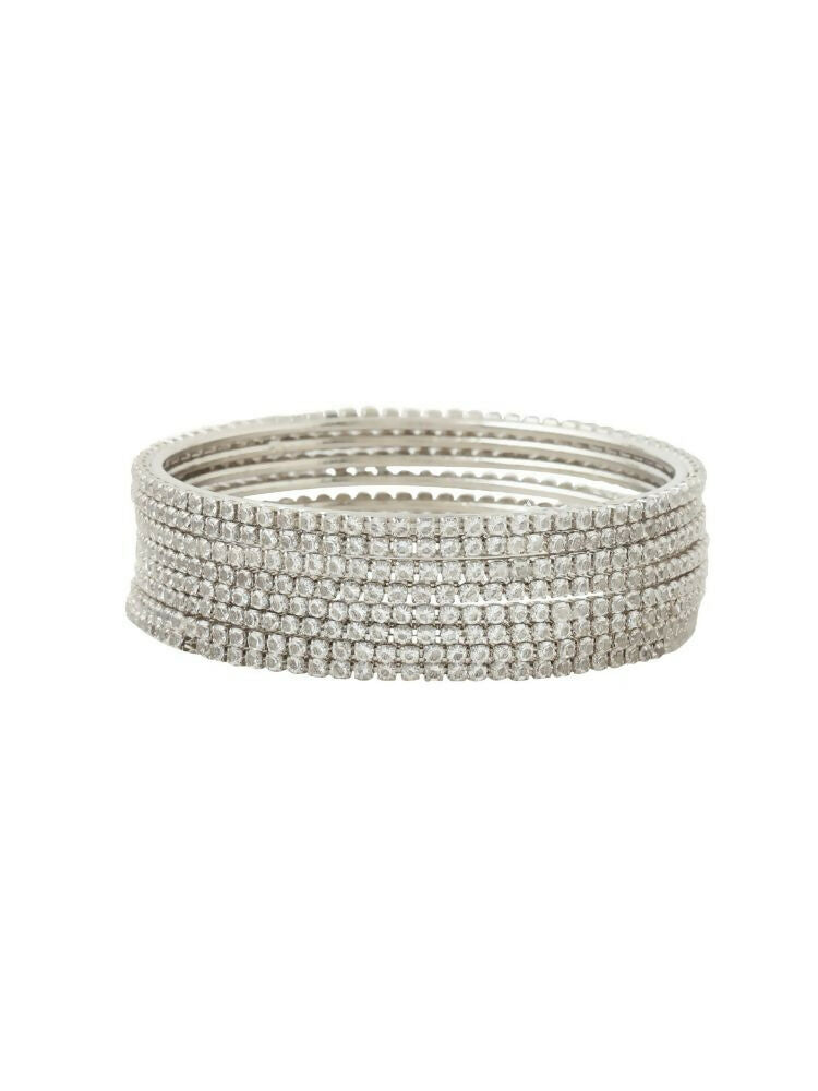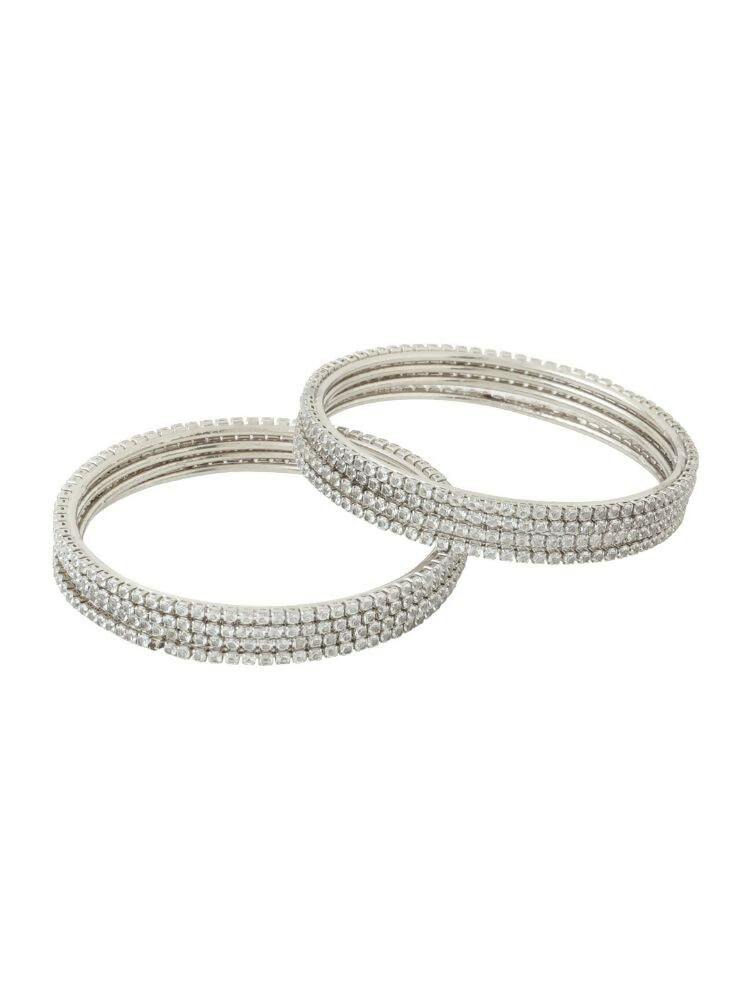 NVR Women Set of 8 American Diamond Silver Plated Bangles