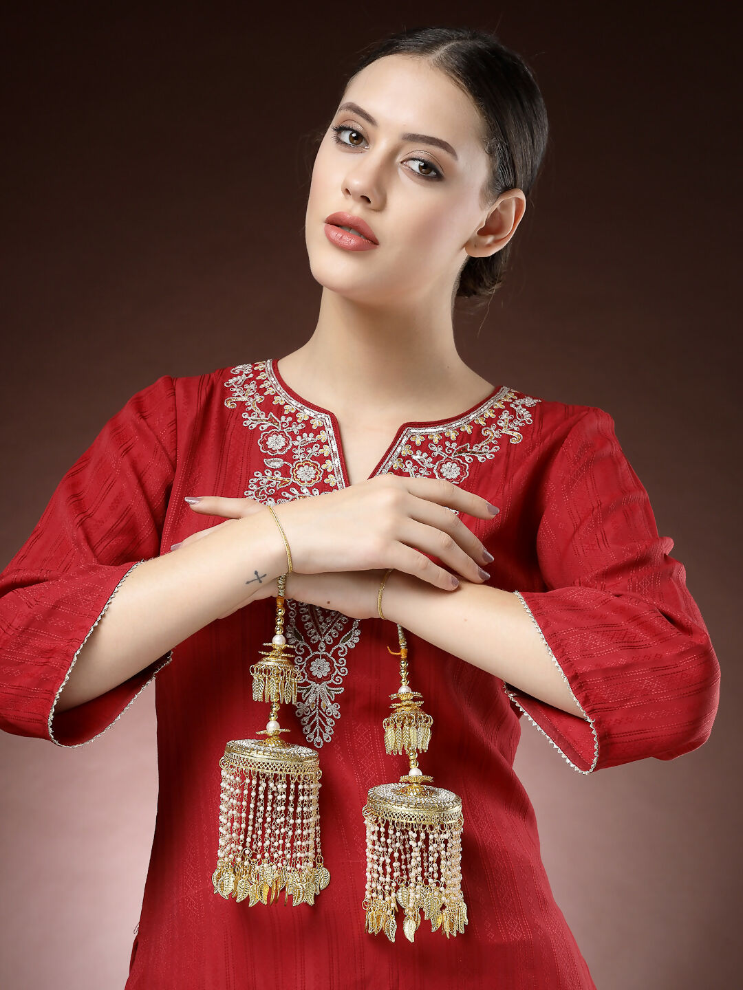 NVR Women's Pack Of 2 Gold-Polished Kundan Bridal Heavy Kaleera Sets