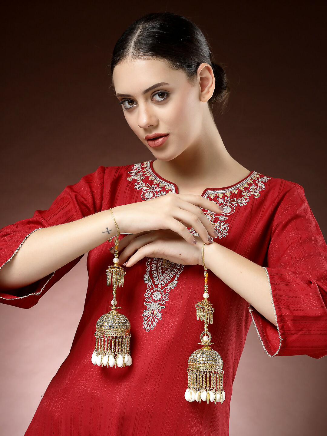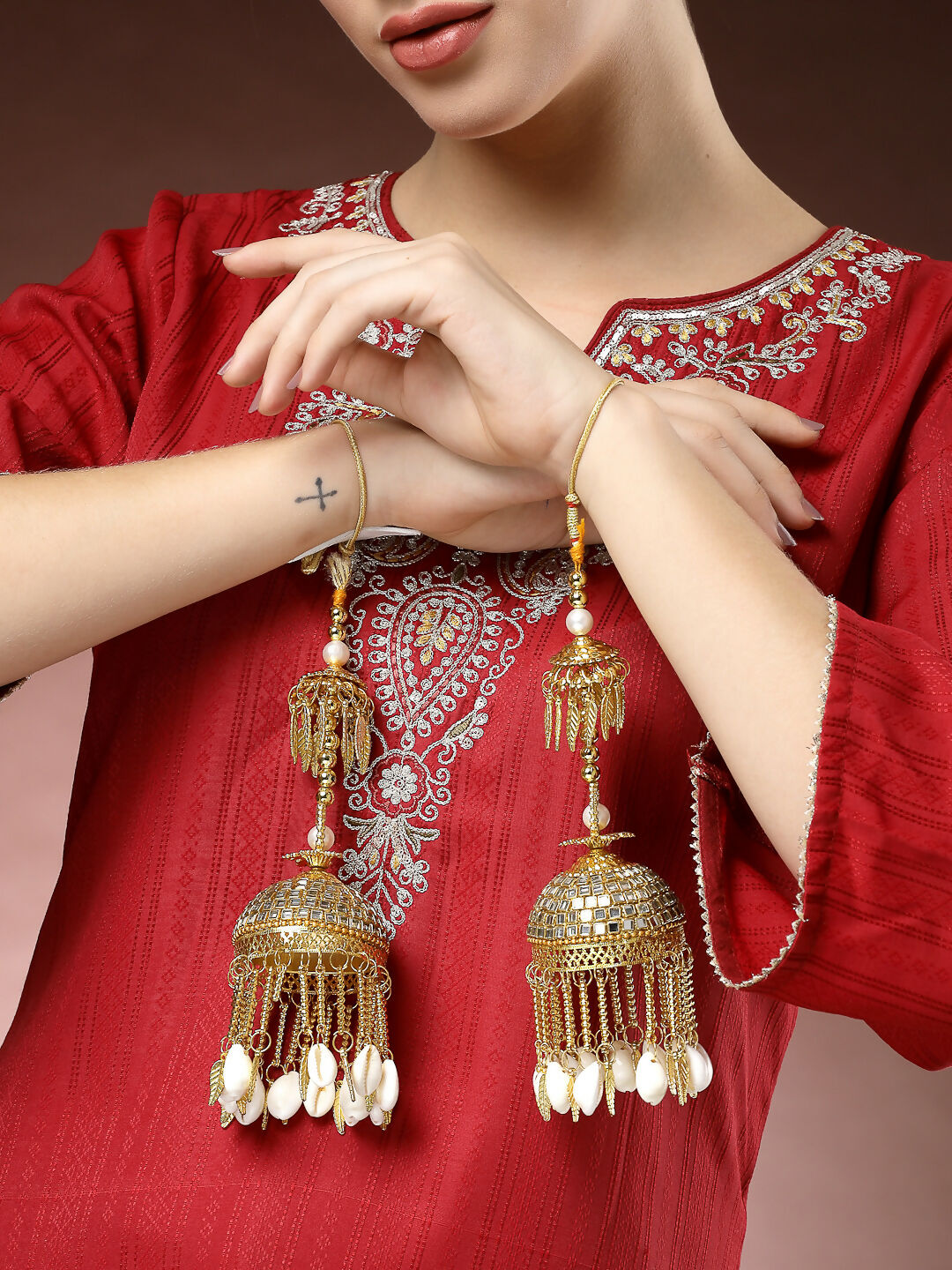 NVR Women's Pack Of 2 Gold-Polished Kundan Kaleera Sets