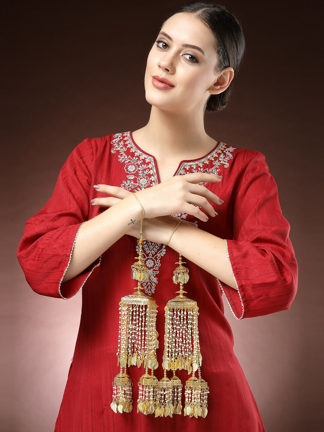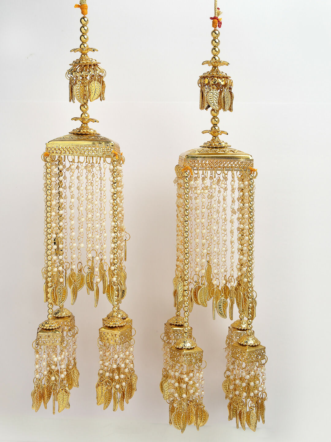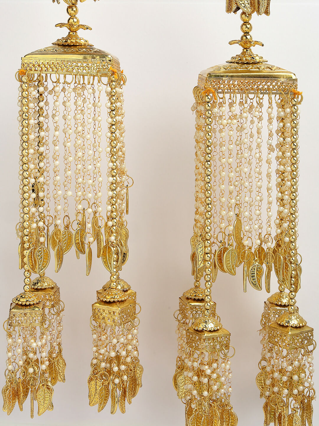 NVR Women's Pack Of 2 Gold-Polished & White Pearl Beaded Bridal Heavy Kaleera Sets