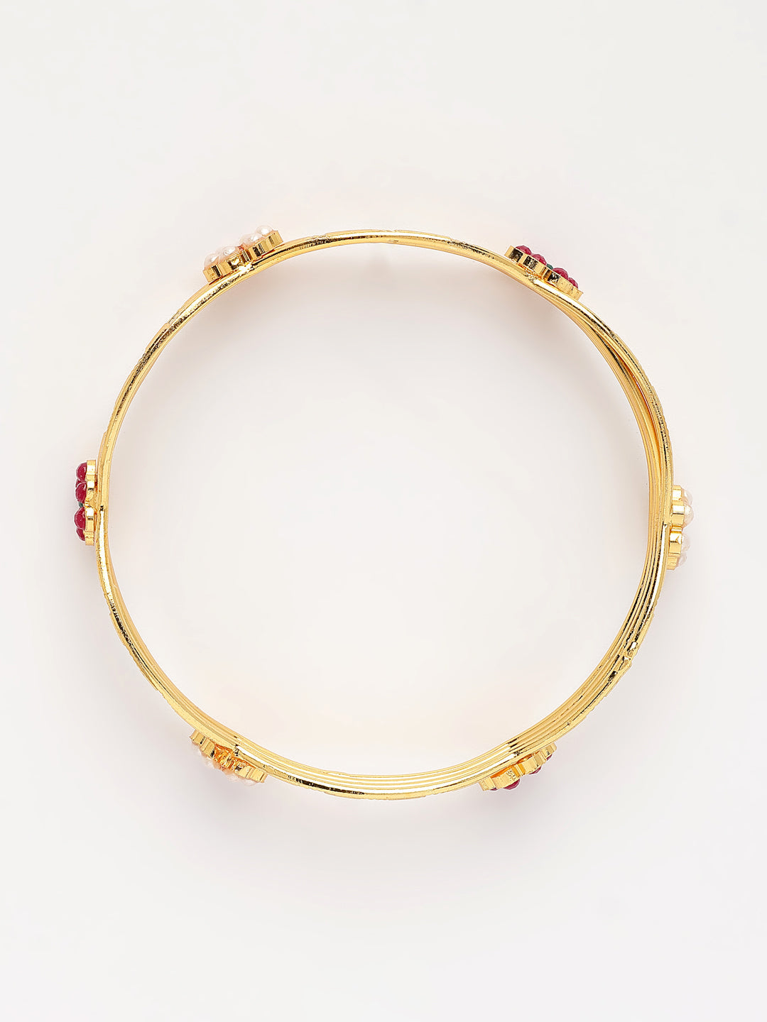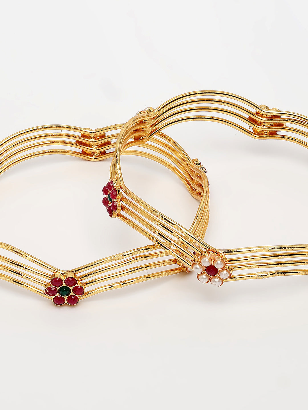 NVR Women's Set of 2 Gold-Polished Artificial Stones Traditional Bangles