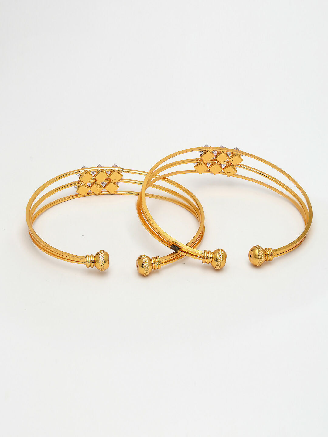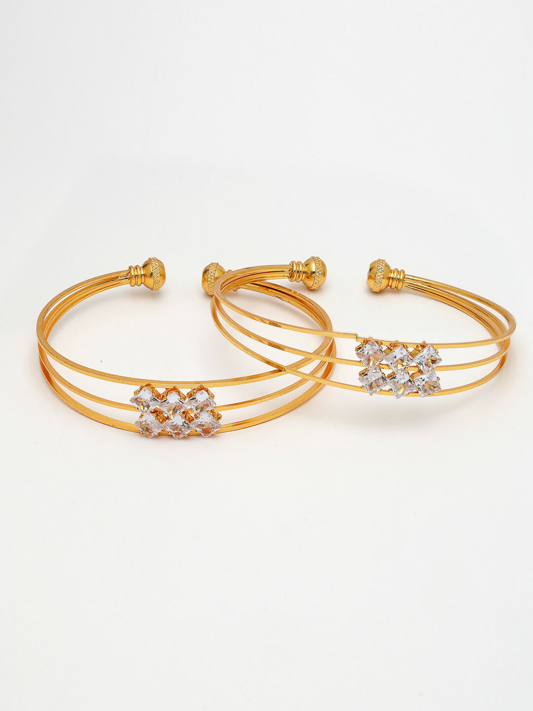 NVR Women's Set of 2 Gold-Polished CZ Stone-Studded Adjustable Bangles