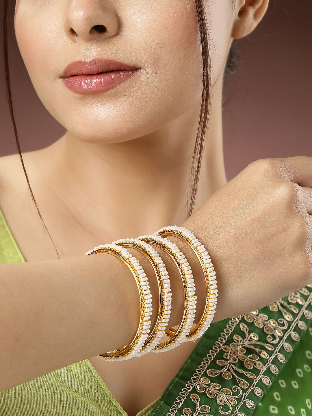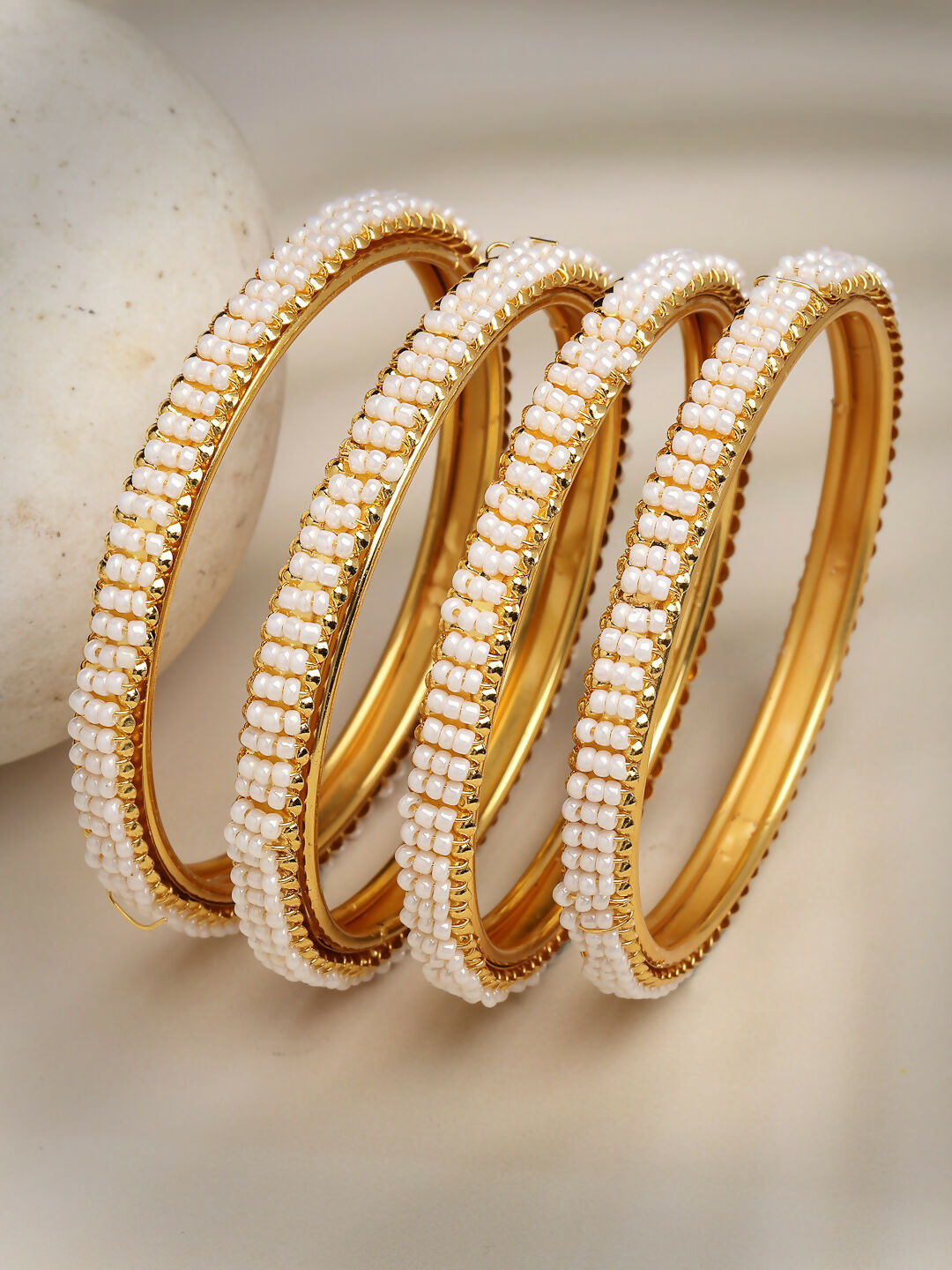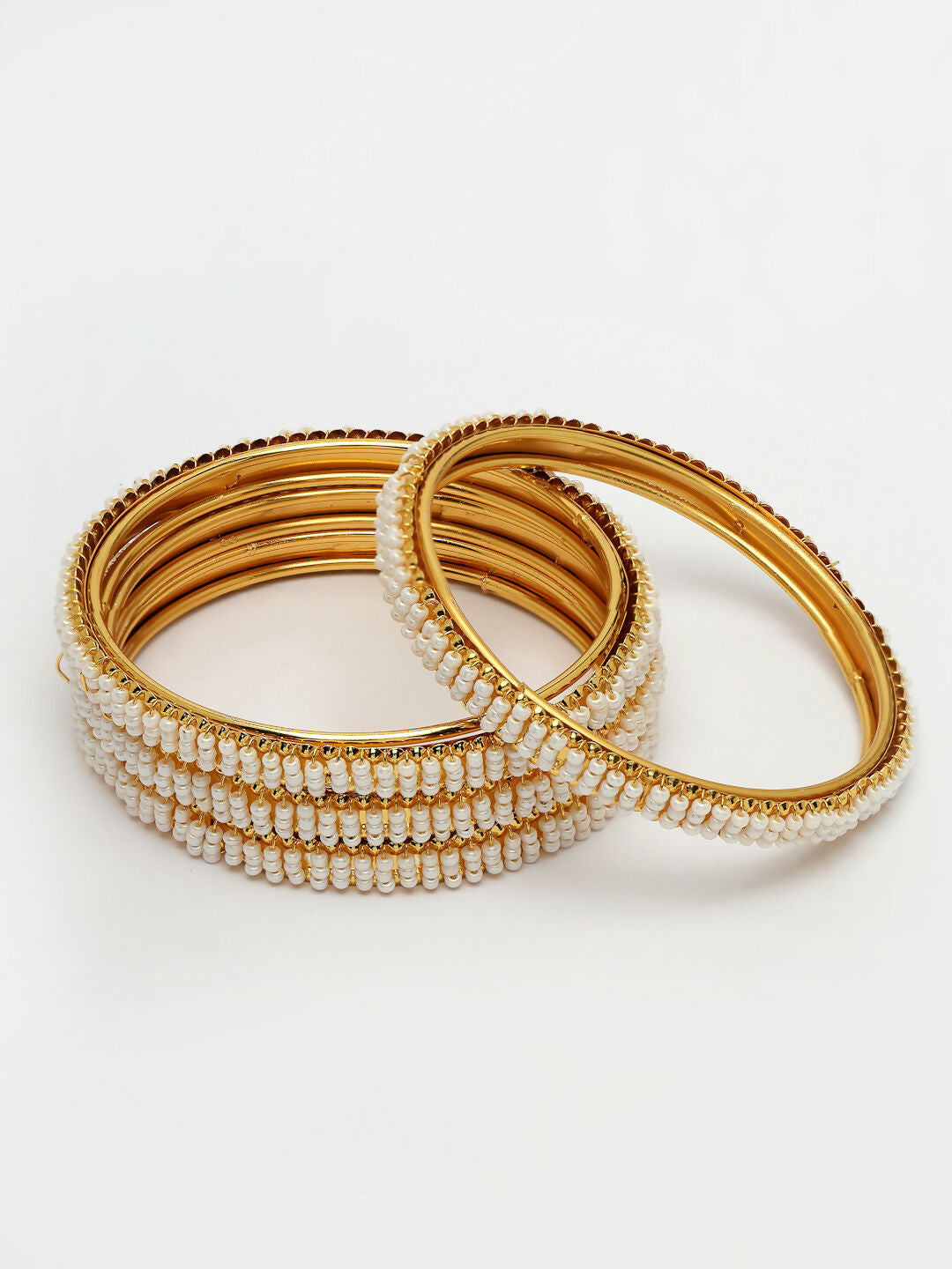 NVR Women's Set of 4 Gold-Polished Pearl Handcrafted Traditional Bangles