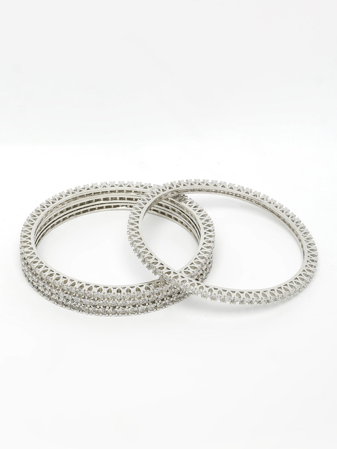 NVR Women's Set of 4 Silver-Plated Cubic Zirconia Stone Studded Bangles