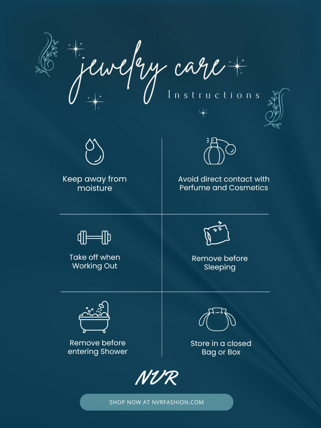 • Material care description: Wipe your jewellery with a soft cloth after every use. Always store your jewellery in a flat box to avoid accidental scratches. Do not soak your jewellery in water. Clean your jewellery using a soft brush. Keep sprays and perfumes away from your jewellery.