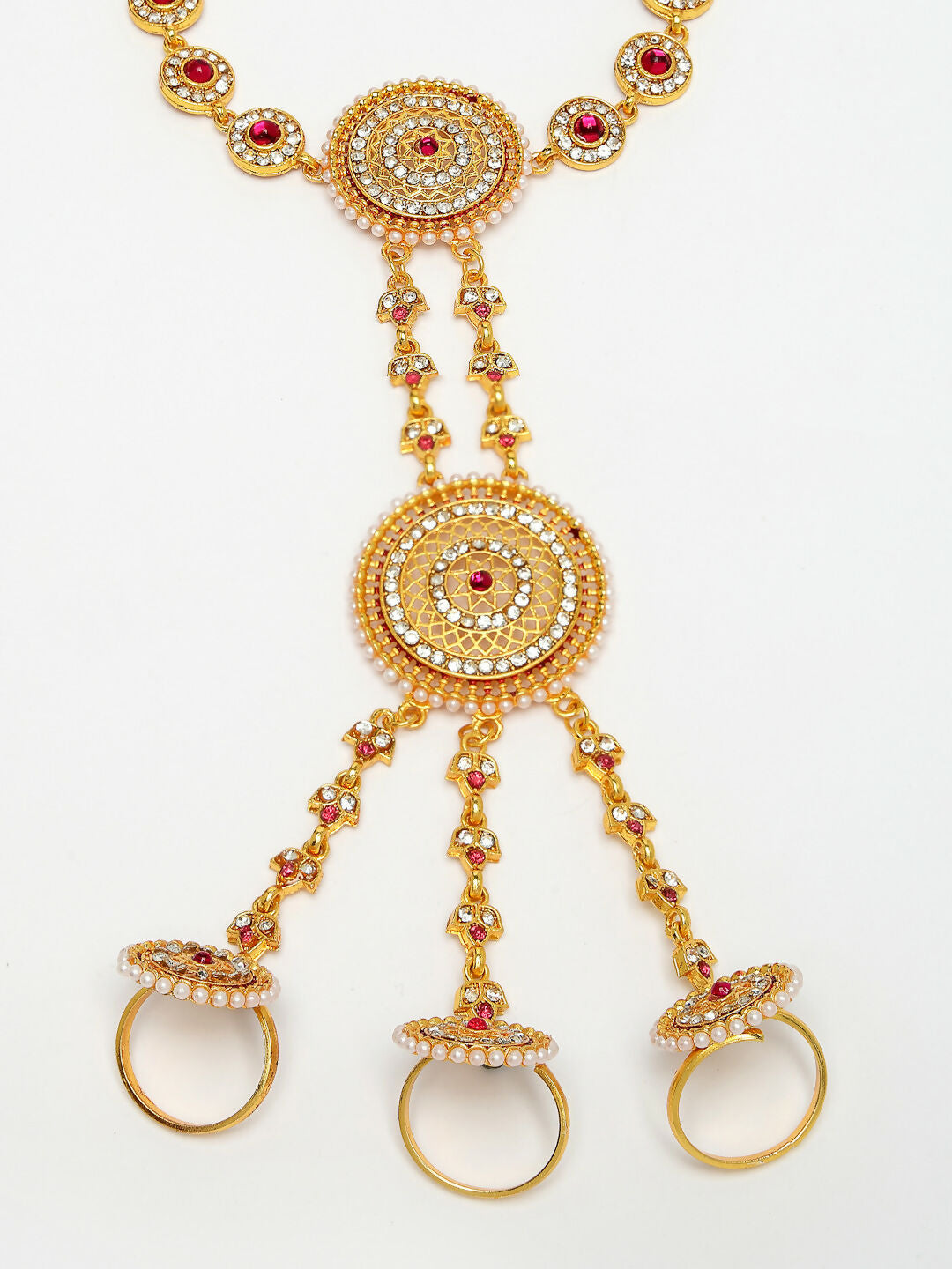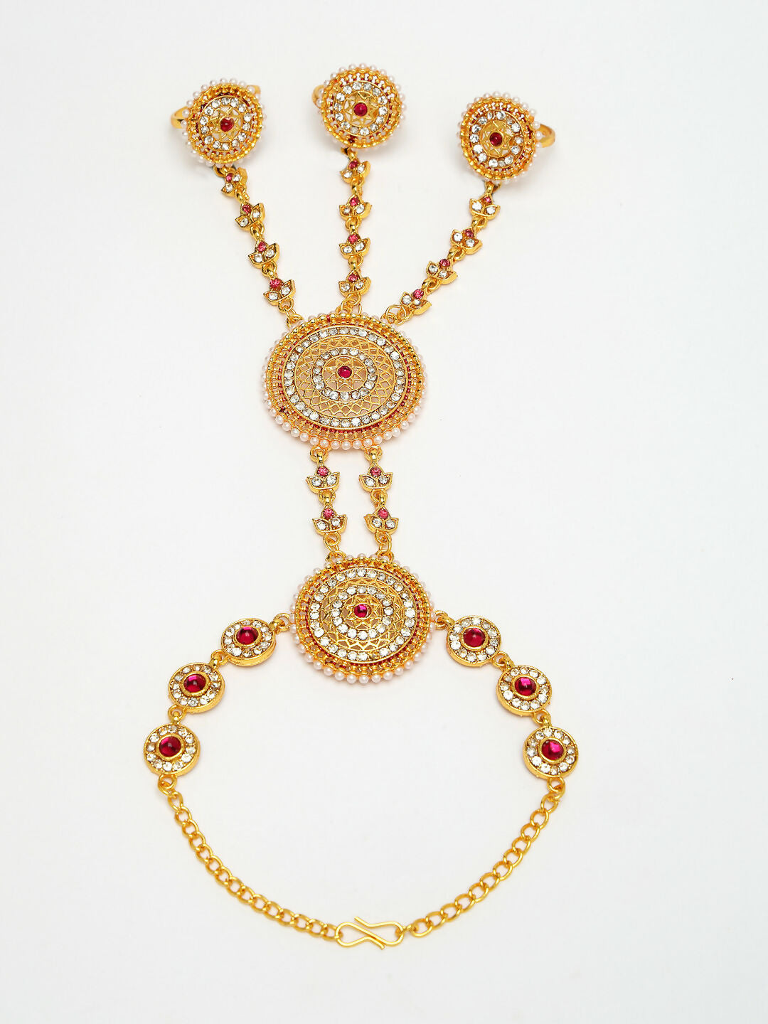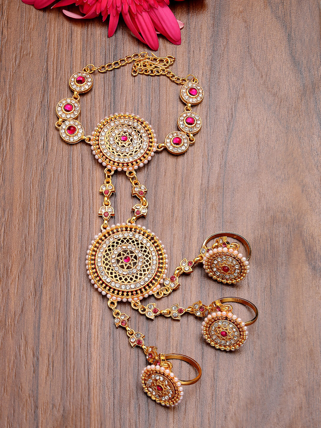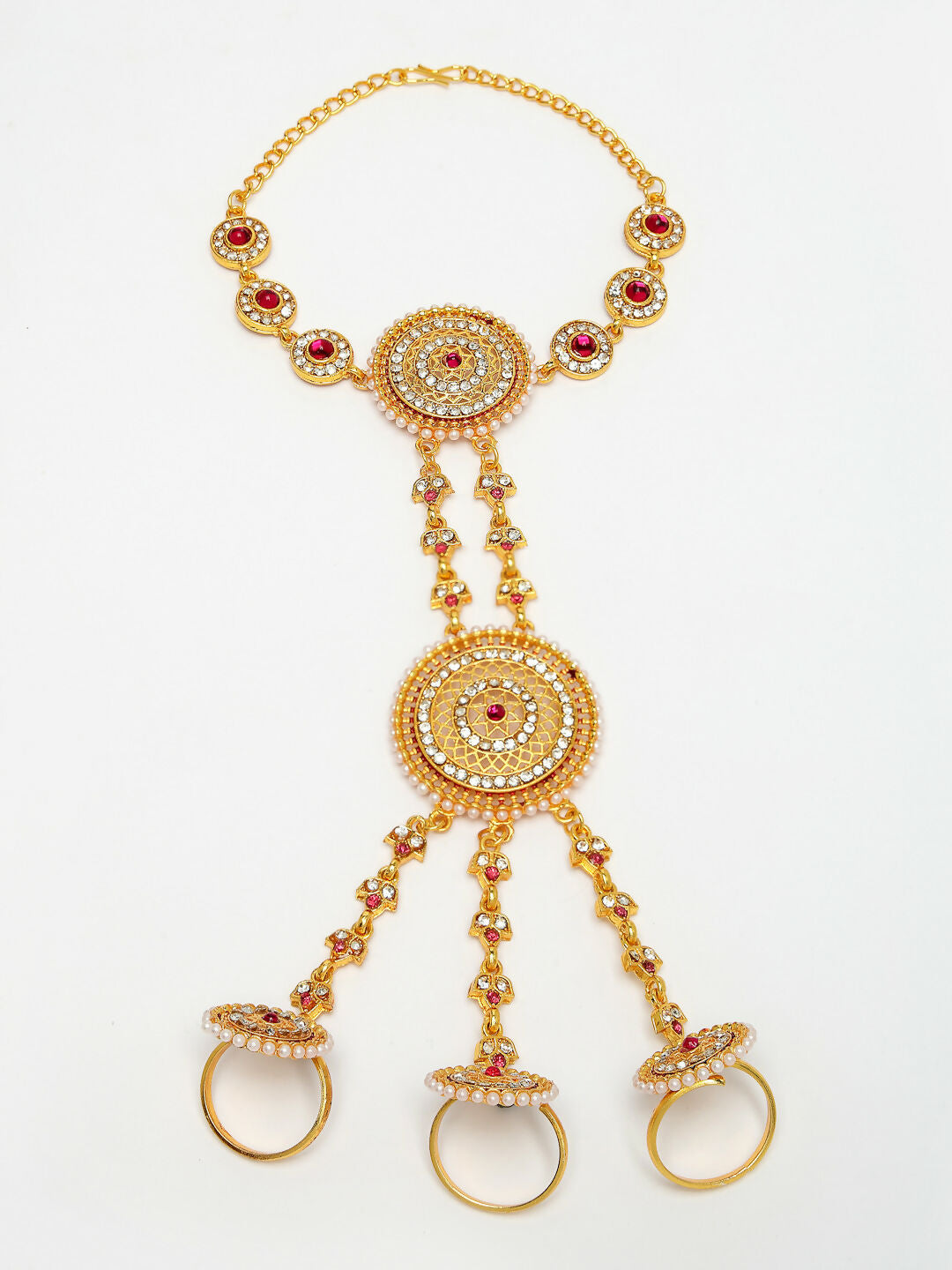 NVR Women's Gold-Polished CZ Stone-Studded Handcrafted Ring Bracelet