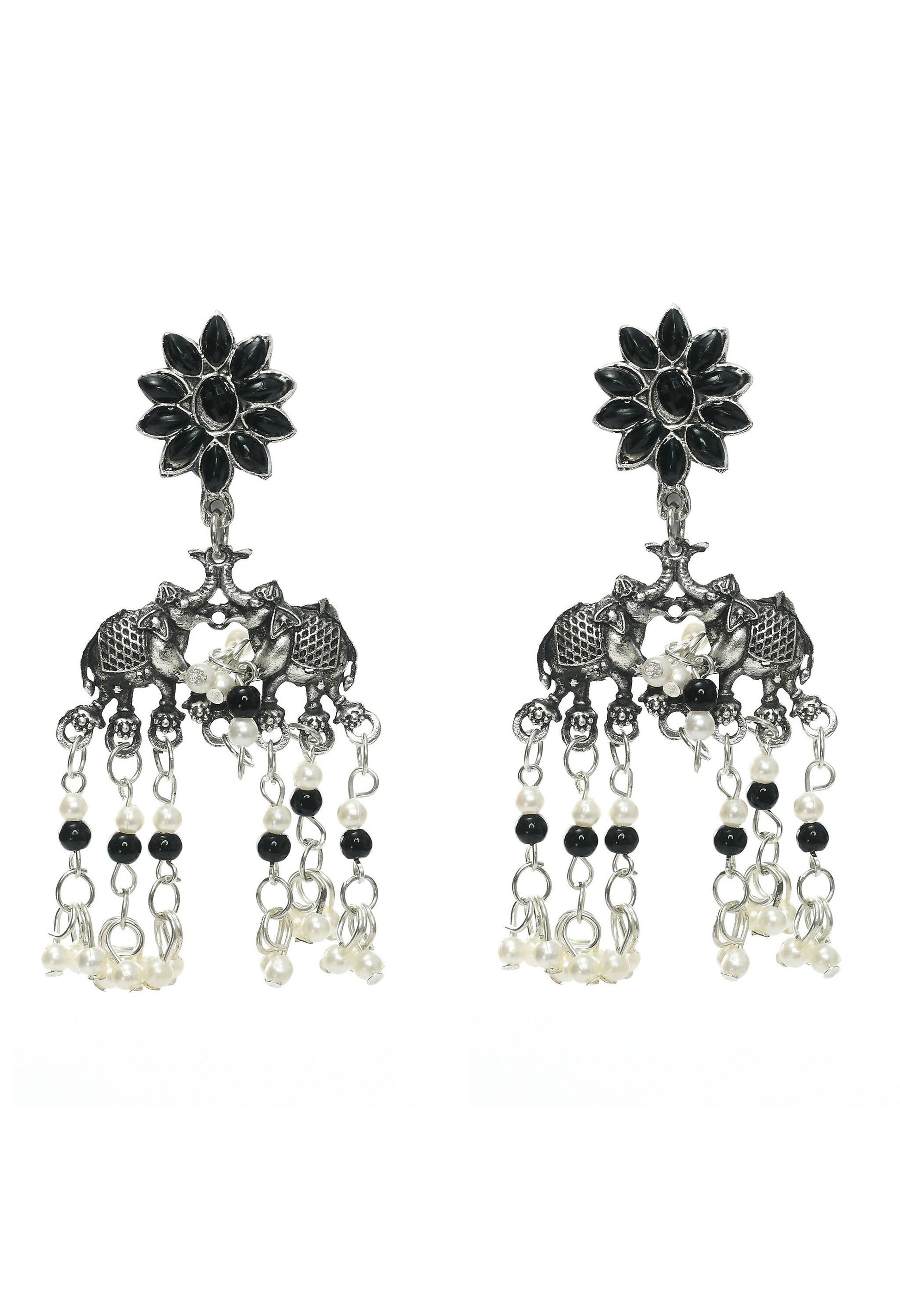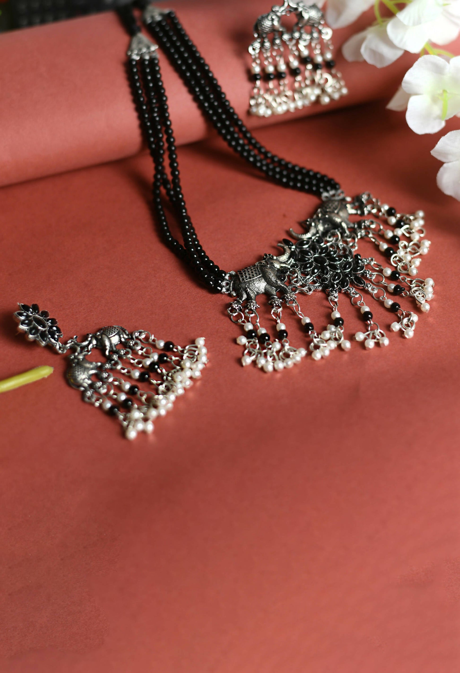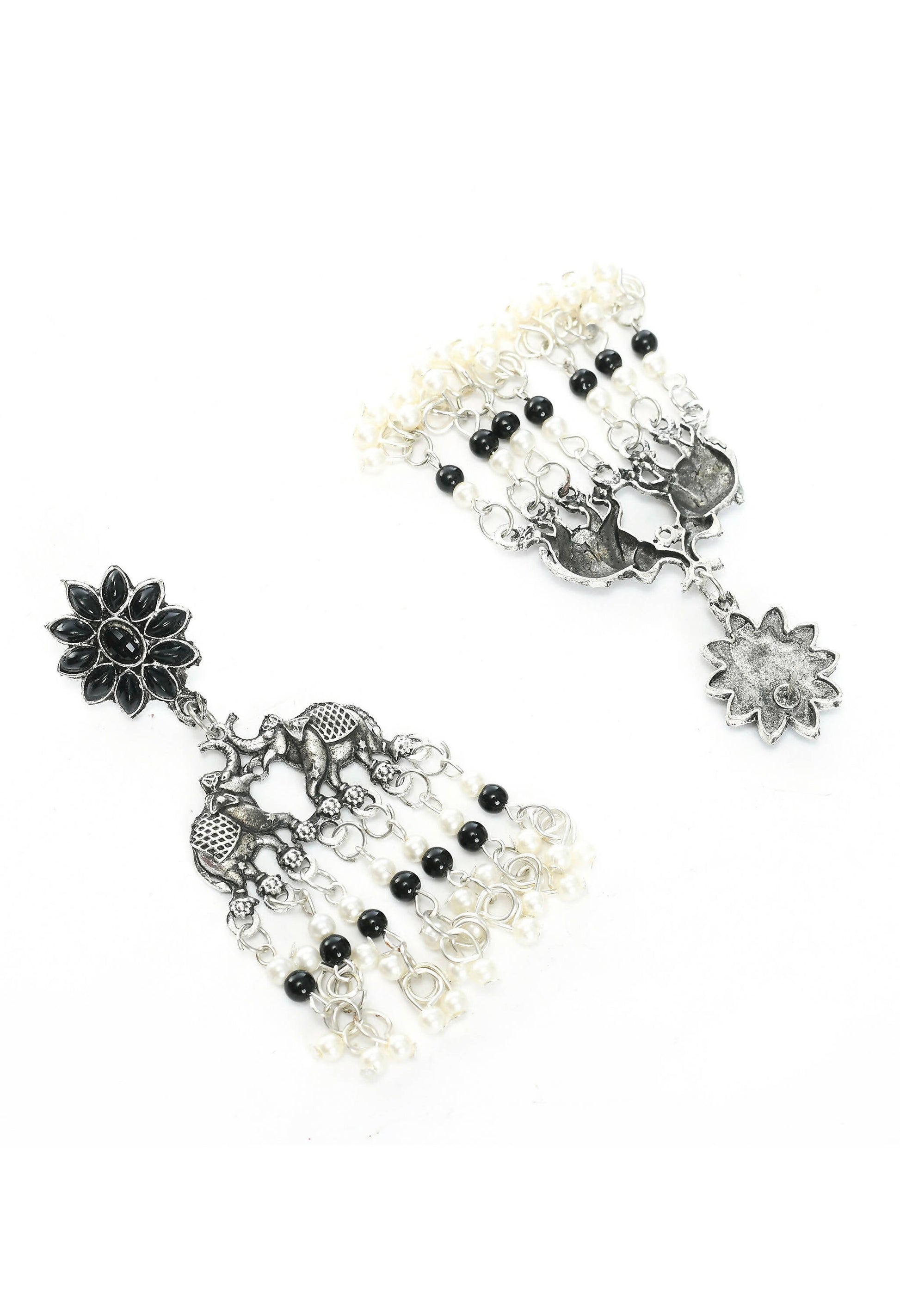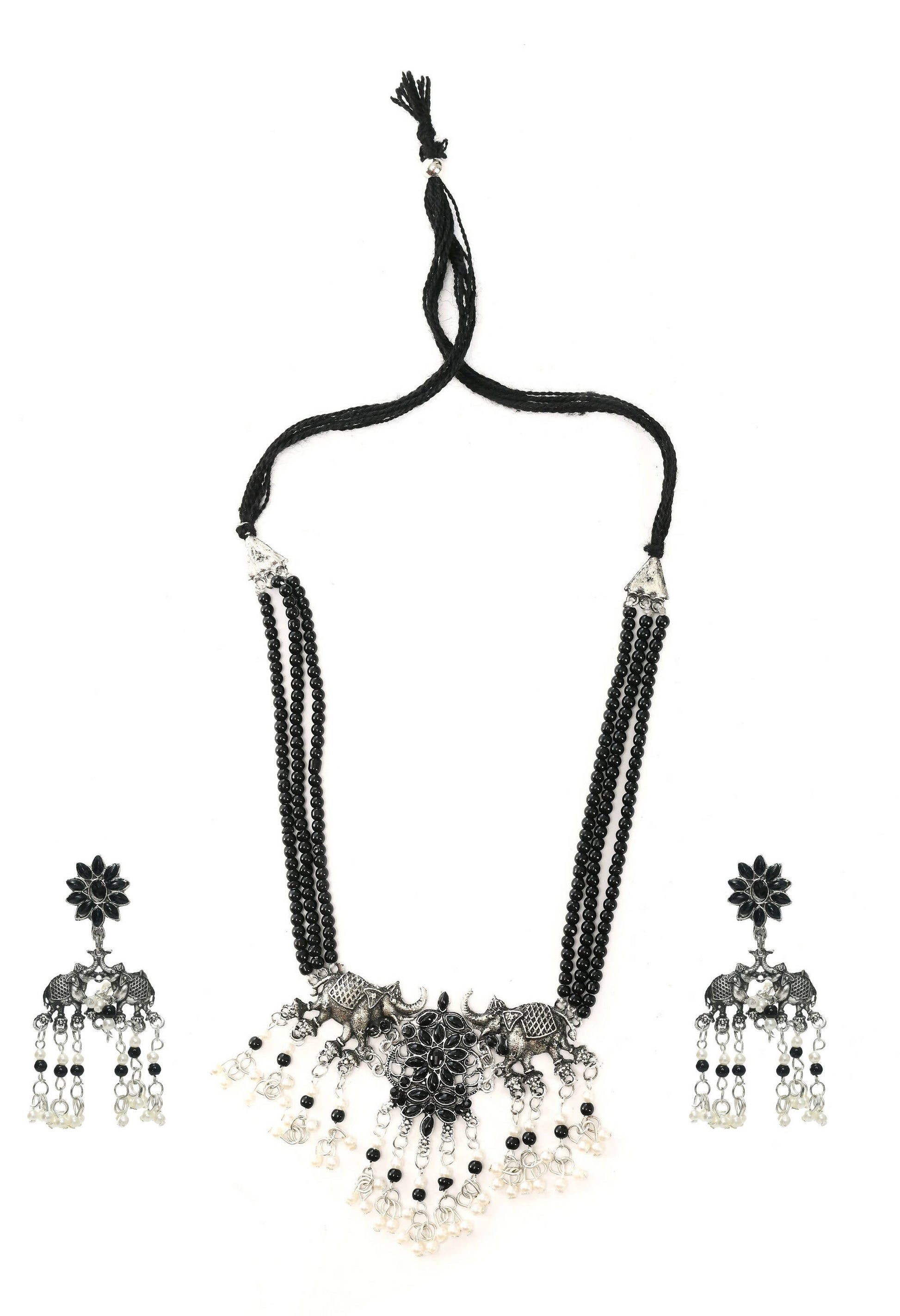 Mominos Fashion Johar Kamal Silver-Plated Brass Finish Elephant Desgin Choker For Women (Black)