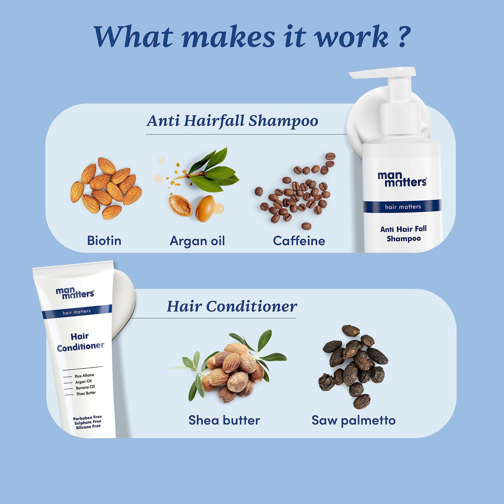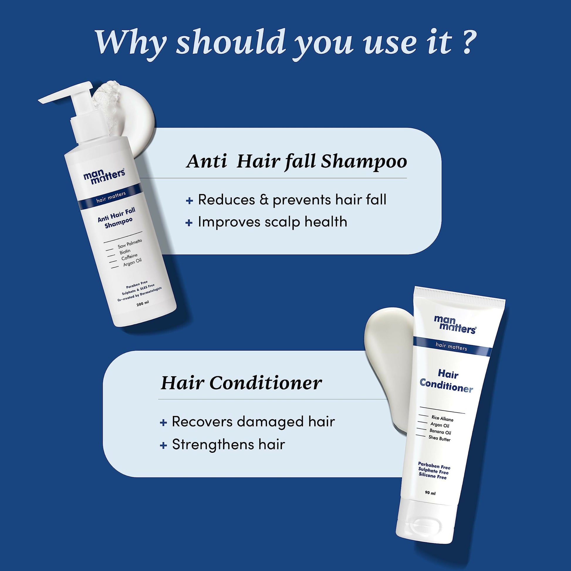 Man Matters Anti Hair Fall Shampoo and Conditioner Combo - Helps in Deep Nourishment and Frizz Free Hair, Sulphate & Paraben Free