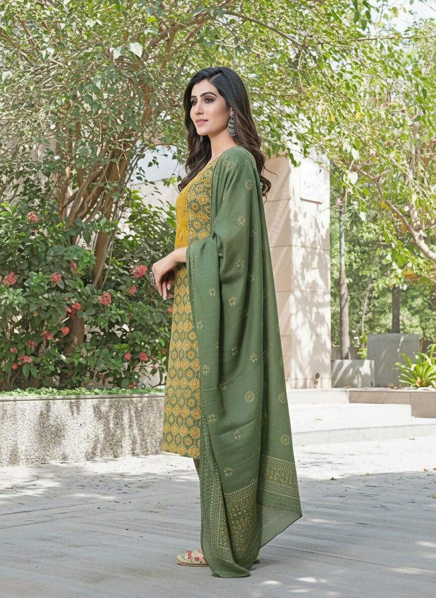 BulBul Aaliya Green Elegance Cotton Kurta Set with Embroidered Organza Dupatta