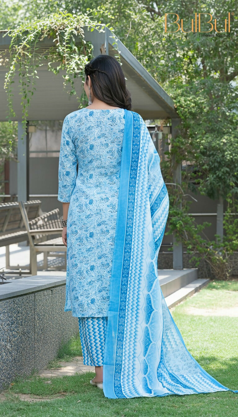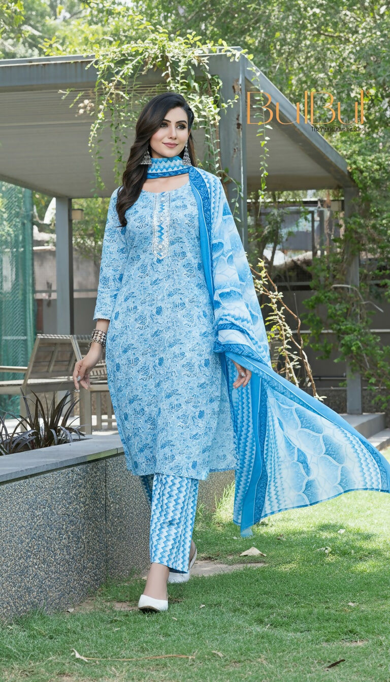 BulBul Fashionista Blue Cotton Kurta Set with Dupatta
