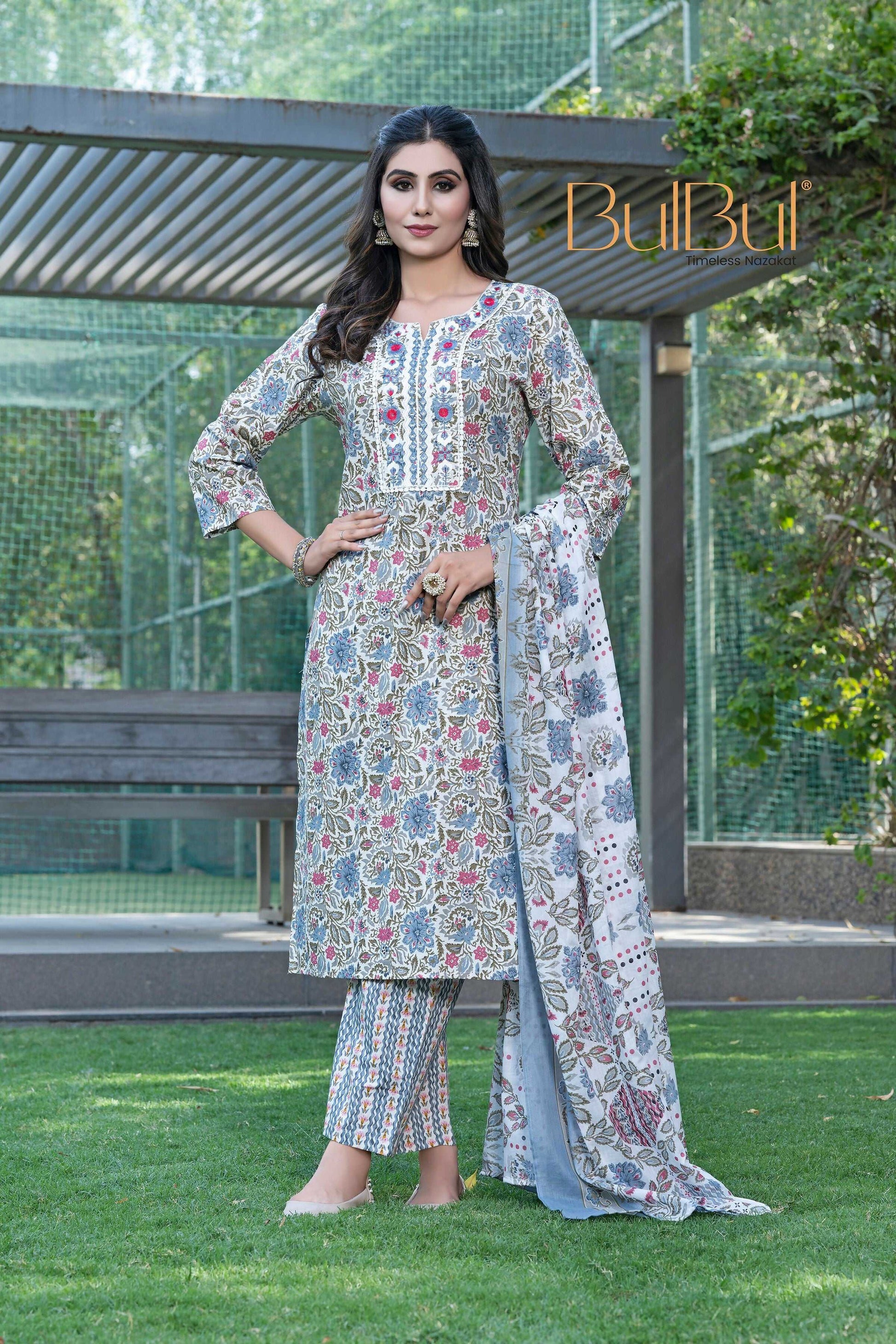 BulBul Fashionista Grey Floral Cotton Kurta Set with Dupatta