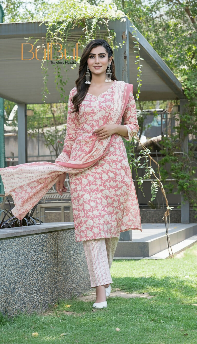 BulBul Fashionista Red Cotton Kurta Set with Dupatta