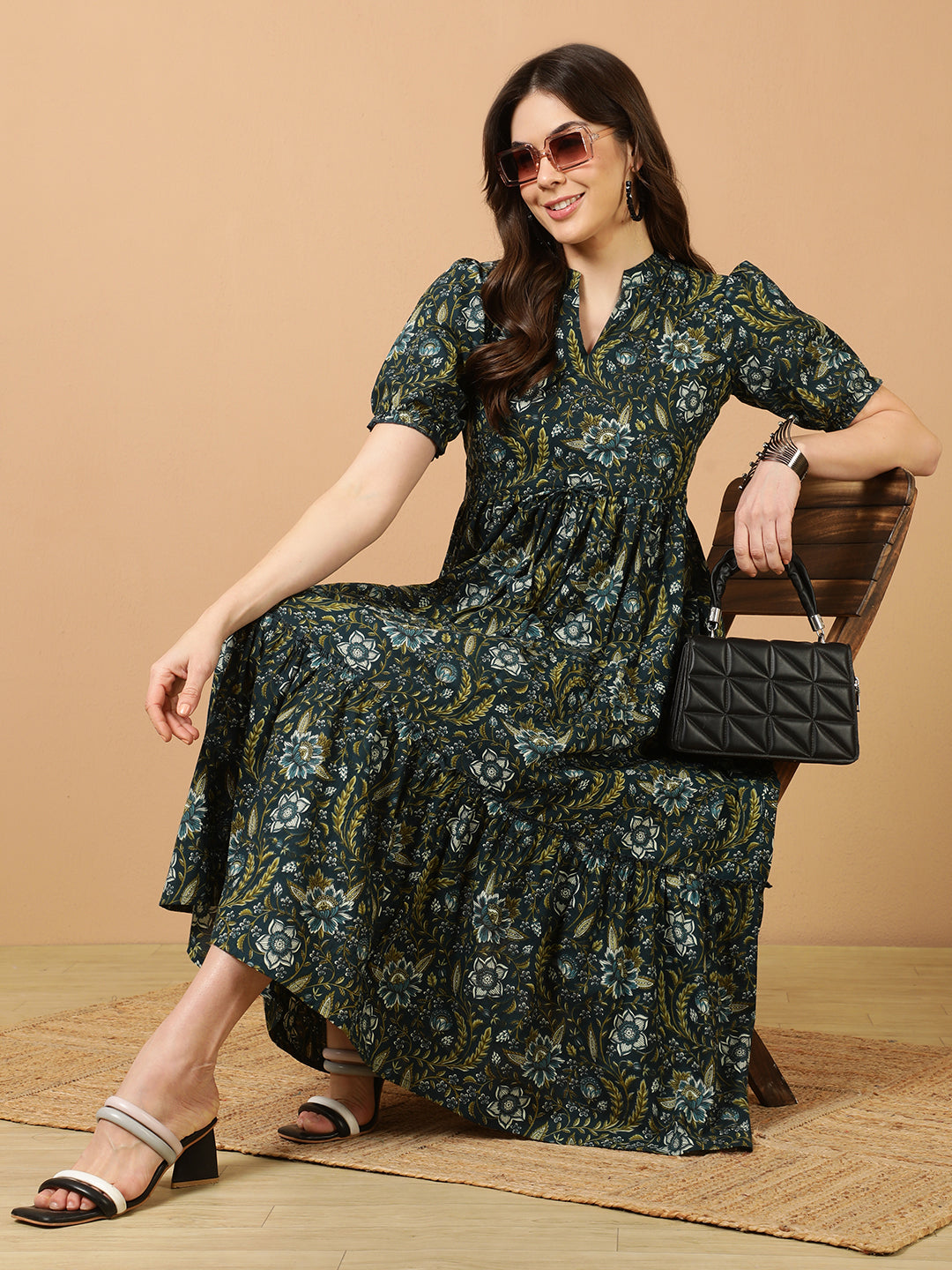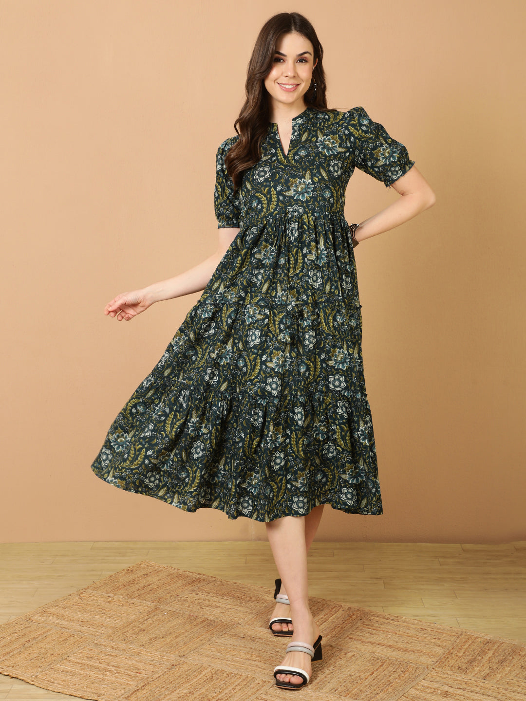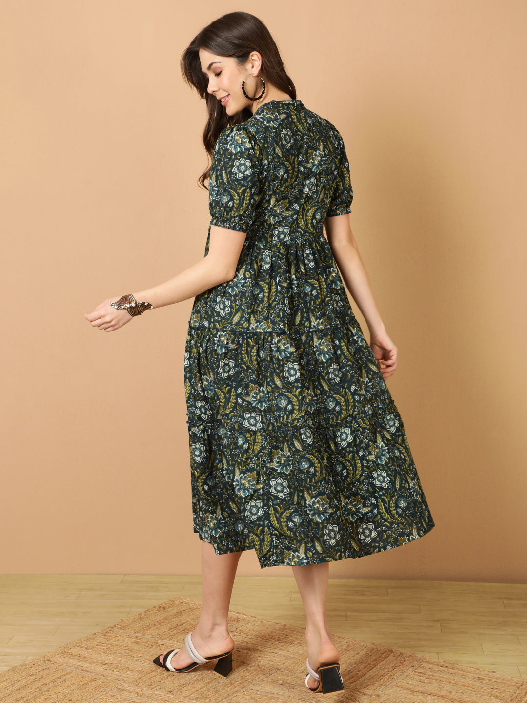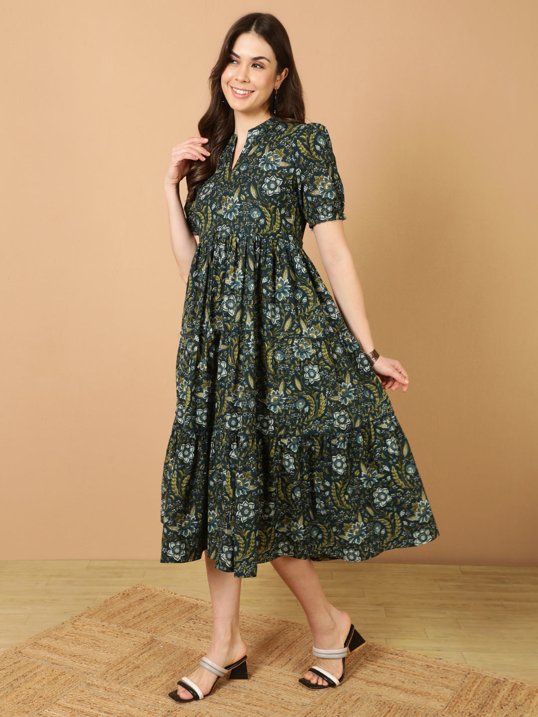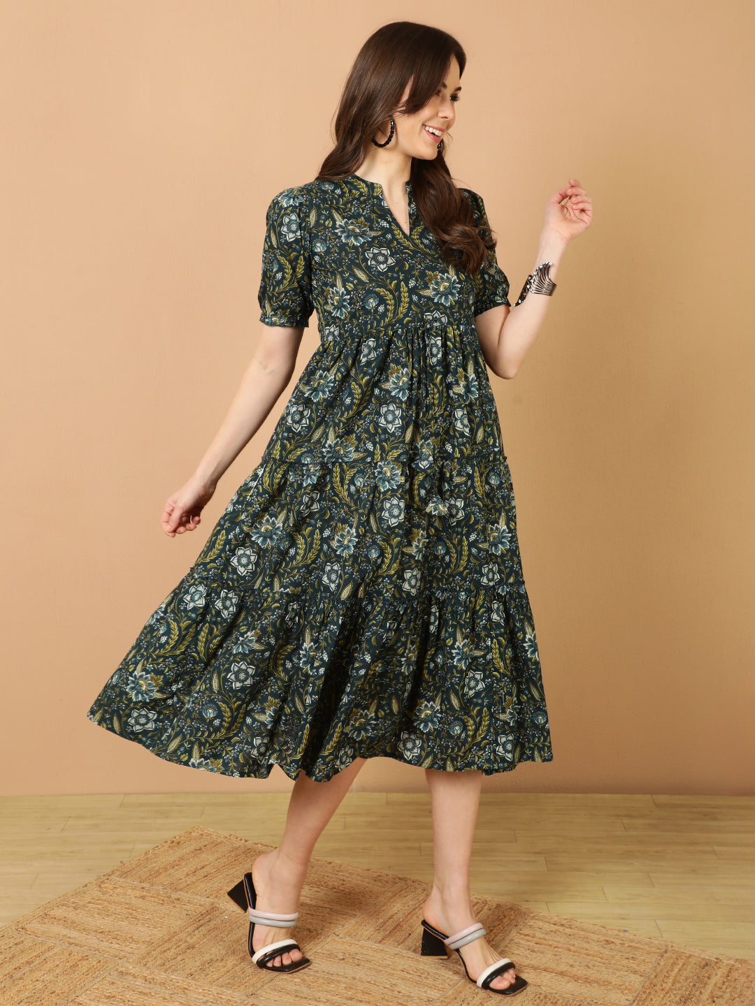 Antaran Blue Pure Cotton Tiered Printed Dress