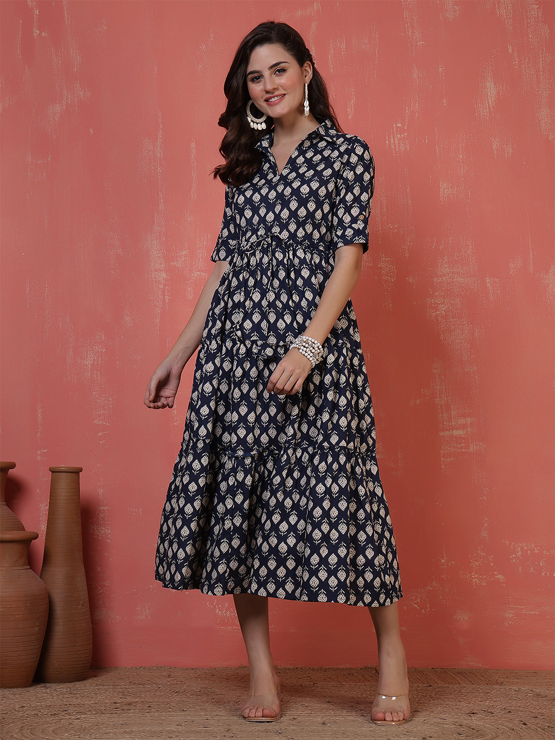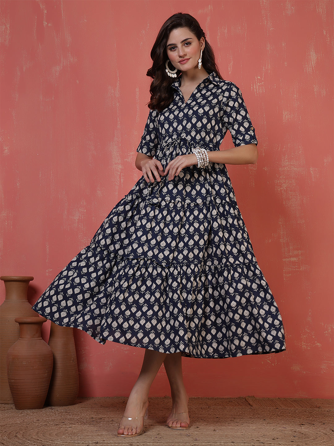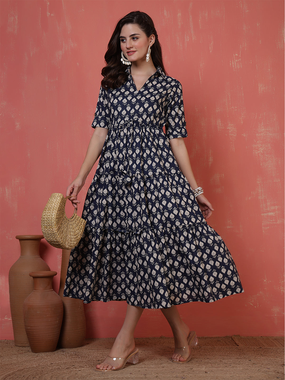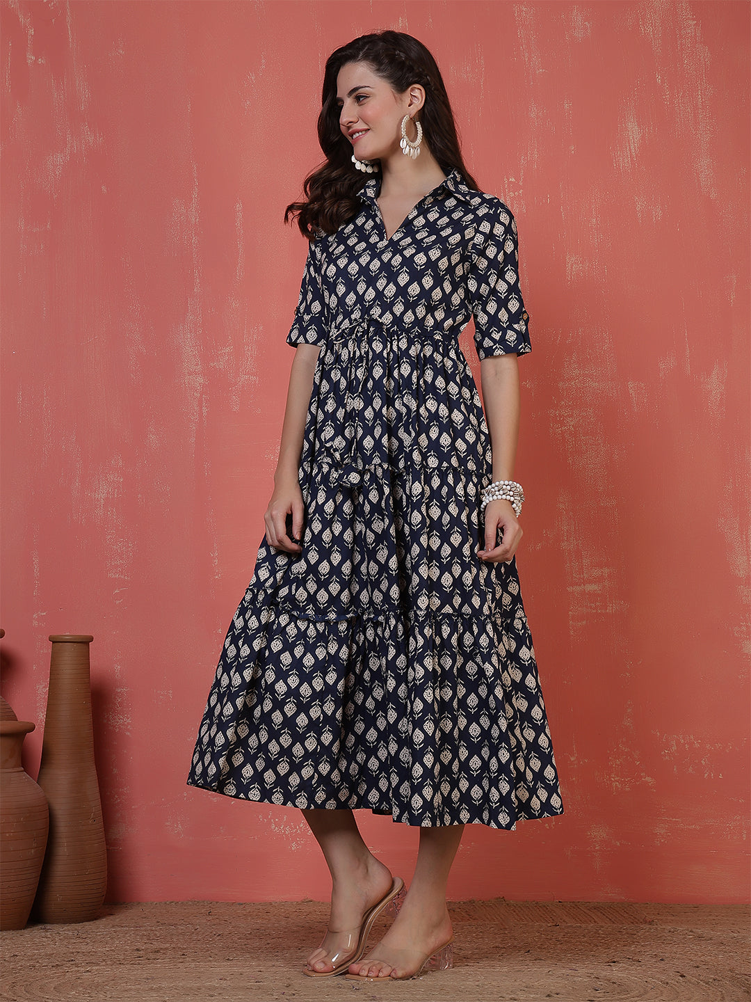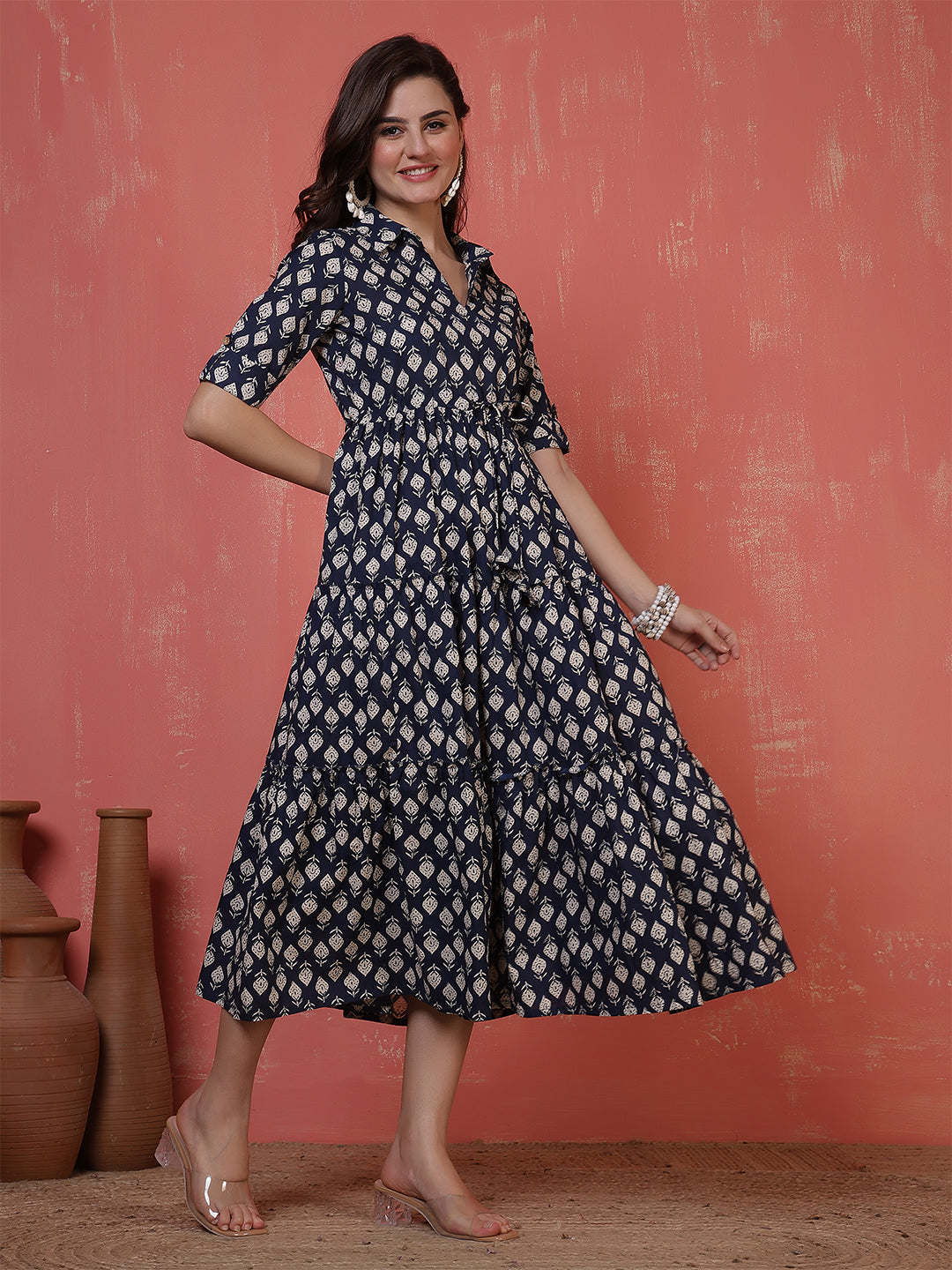 Antaran Blue Pure Cotton Tiered Printed Dress