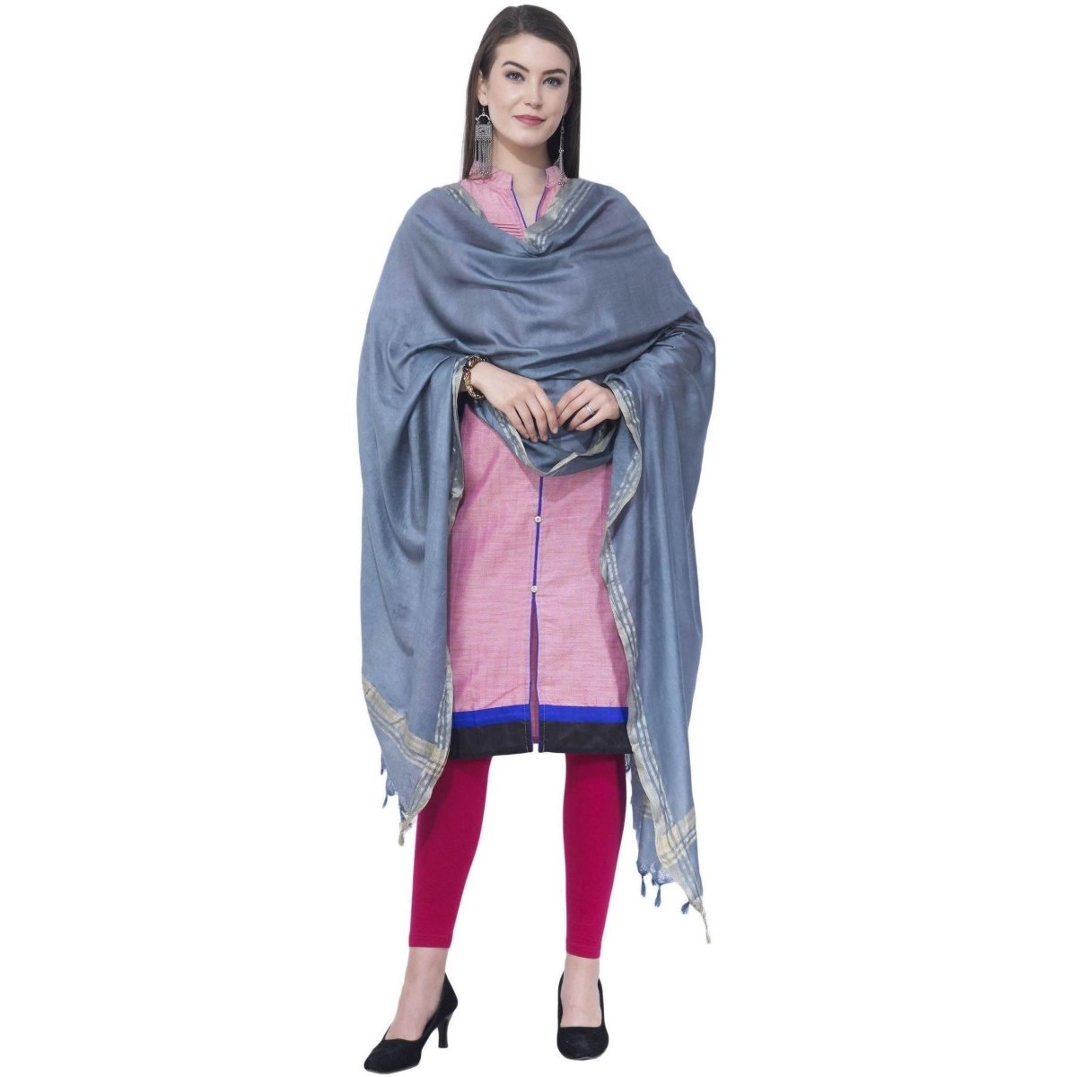A R Silk Gray Color Golden Border Cotton Dupattas and Chunnis