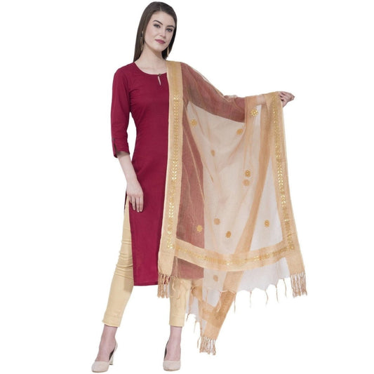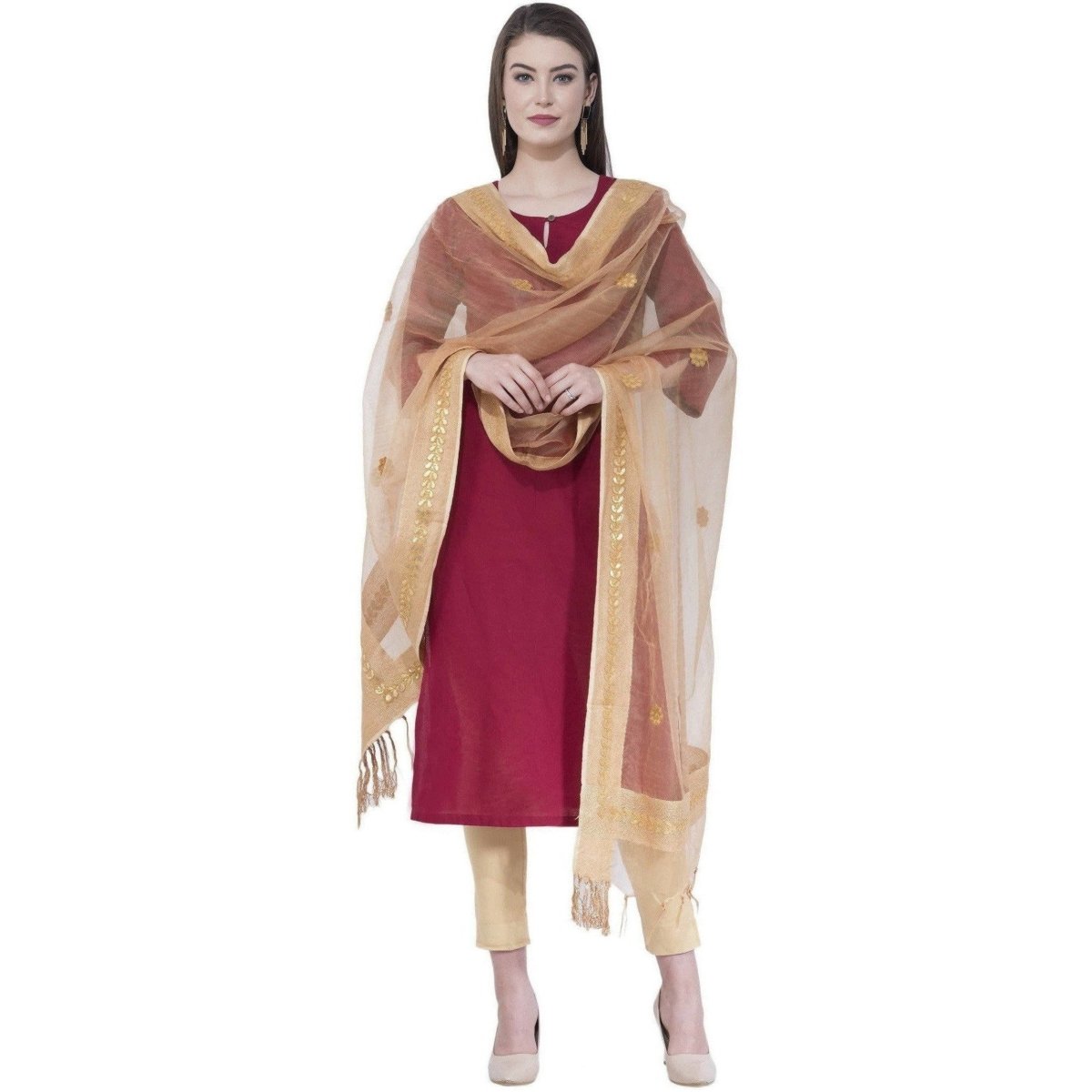 A R Silk Women's Gotta Patti Embroidery Orgenza Cotton Golden Dupattas and Chunnis