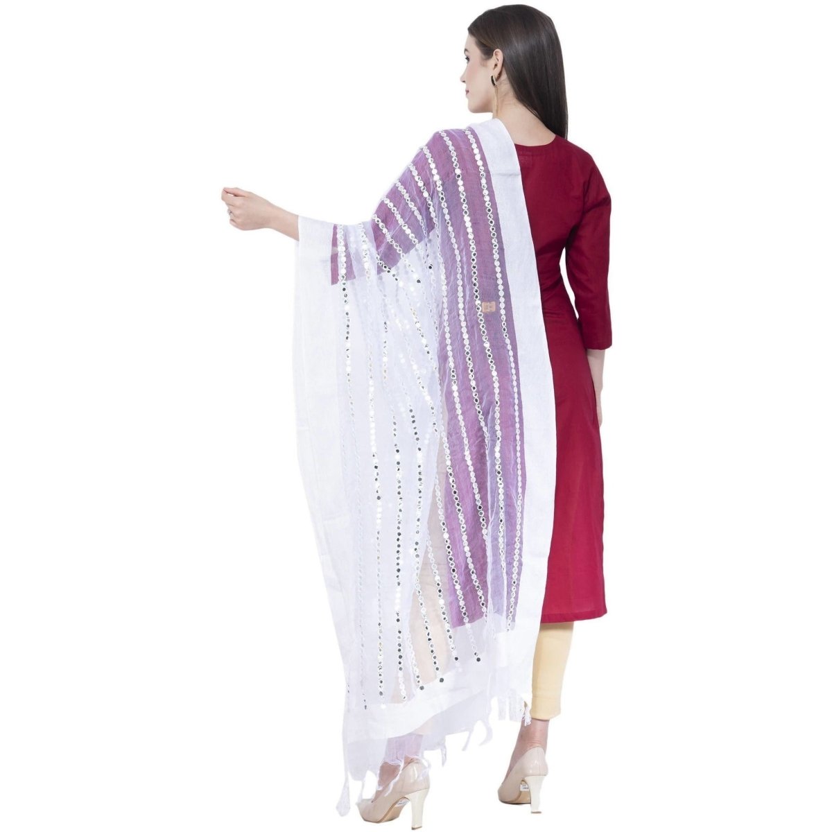 A R Silk Women's Mirror Work Orgenza Cotton White Dupattas and Chunnis