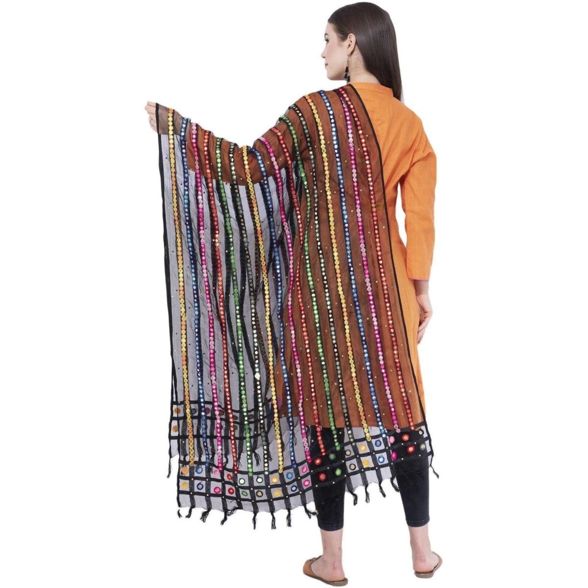 A R Silk Women's Multi Thread Work Orgenza Cotton Black Dupattas and Chunnis