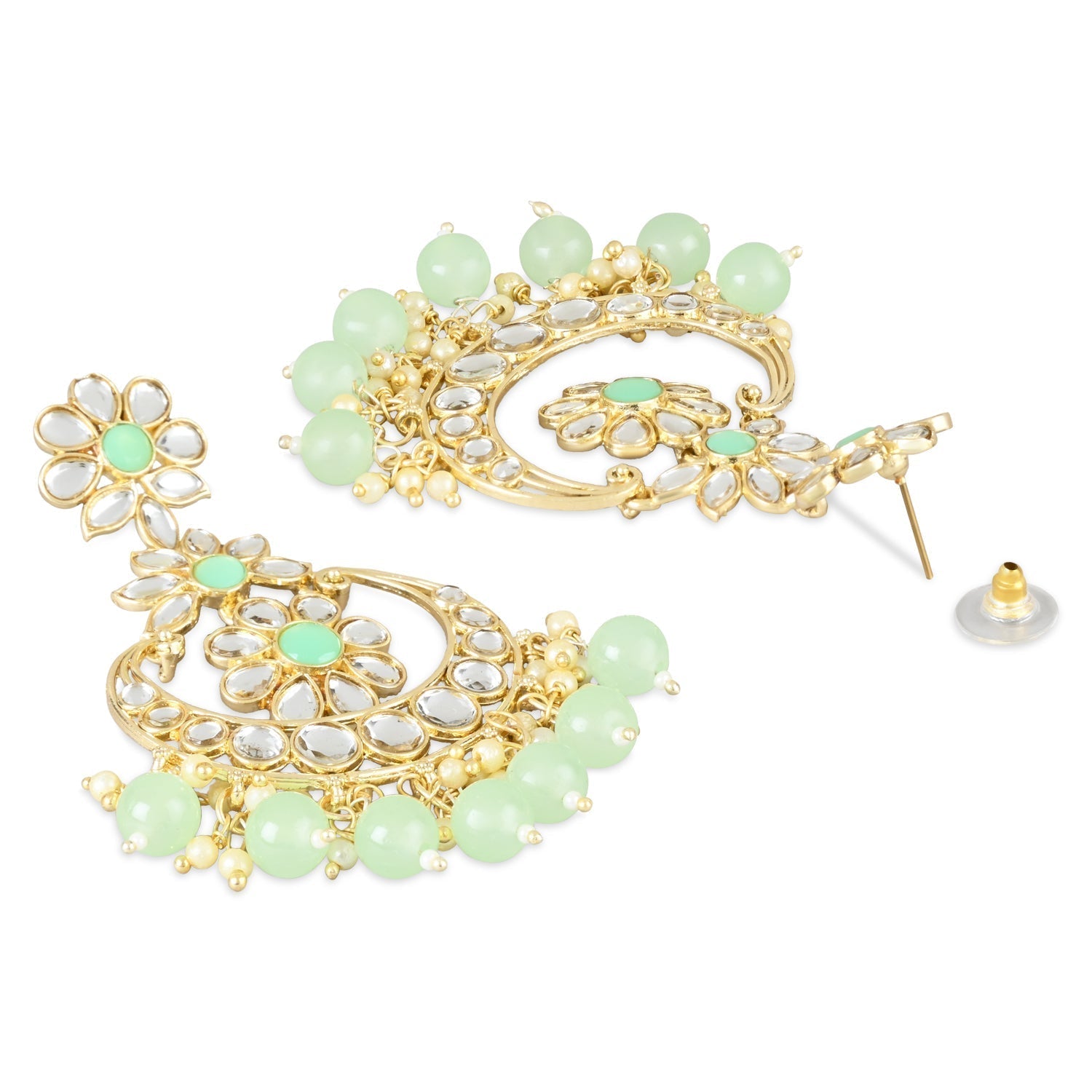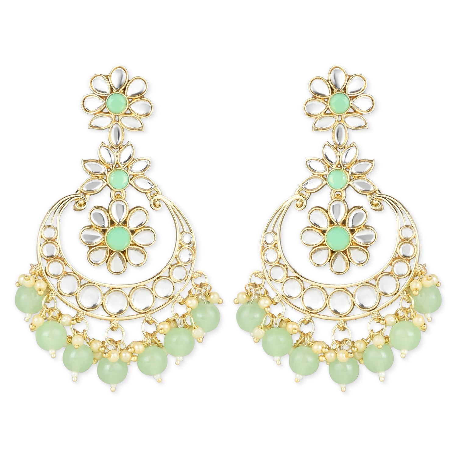 Gold-Polished Traditional Handcrafted Kundan Earrings Adorned with Pearls for Women - Wahe Jewels