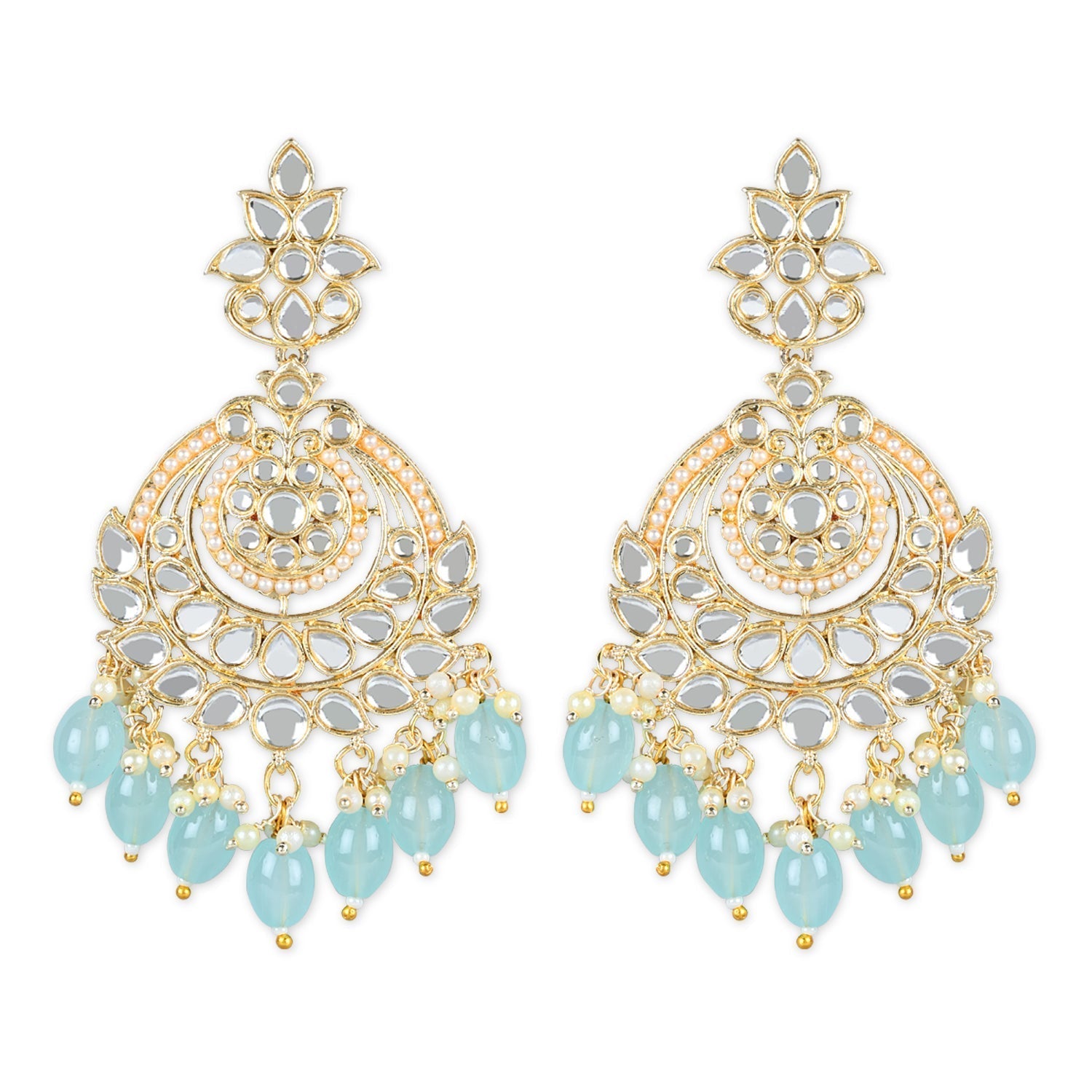 Gold-Polished Traditional Handcrafted Pearl Kundan Beaded Earrings for Women - Wahe Jewels