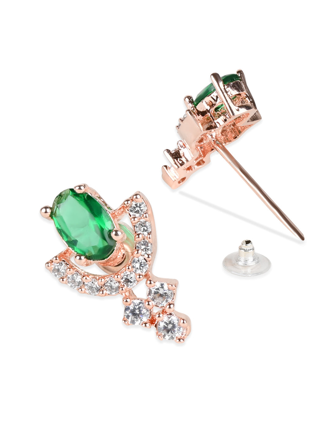 Stylish Latest Fashion Rose Gold-Polished Glittering American Diamond Fashionable Stud Earrings for Women & Girls - Wahe Jewels