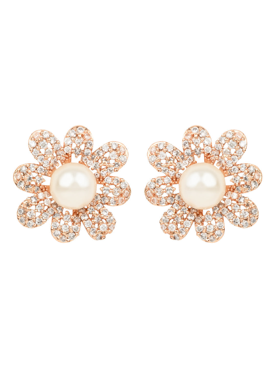 Stylish Latest Fashion Rose Gold-Polished & White Floral Studs Earrings for Women - Wahe Jewels