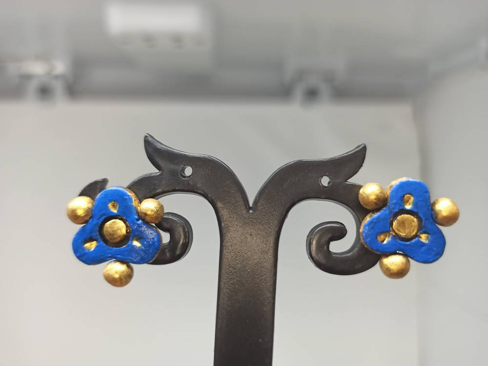 Terracotta Ear Studs-Blue