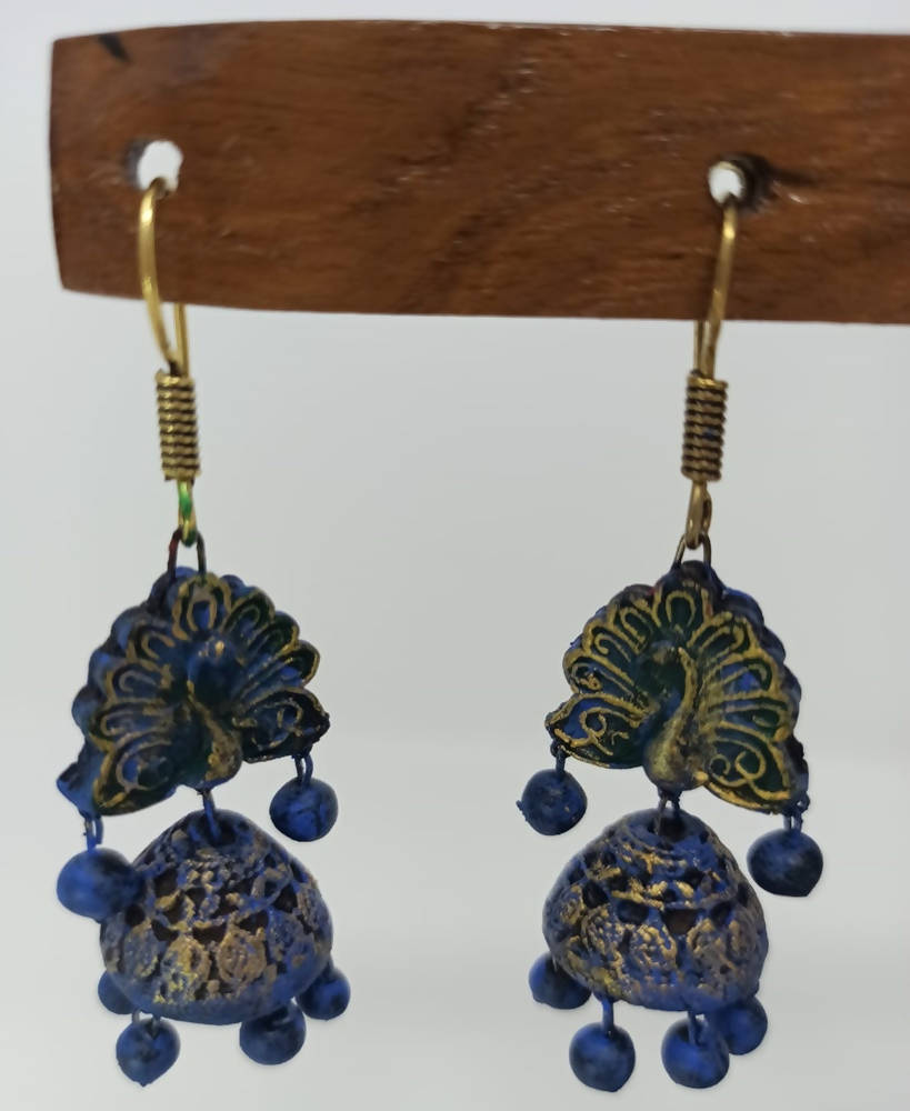 Terracotta Peacock Stud jhumkas