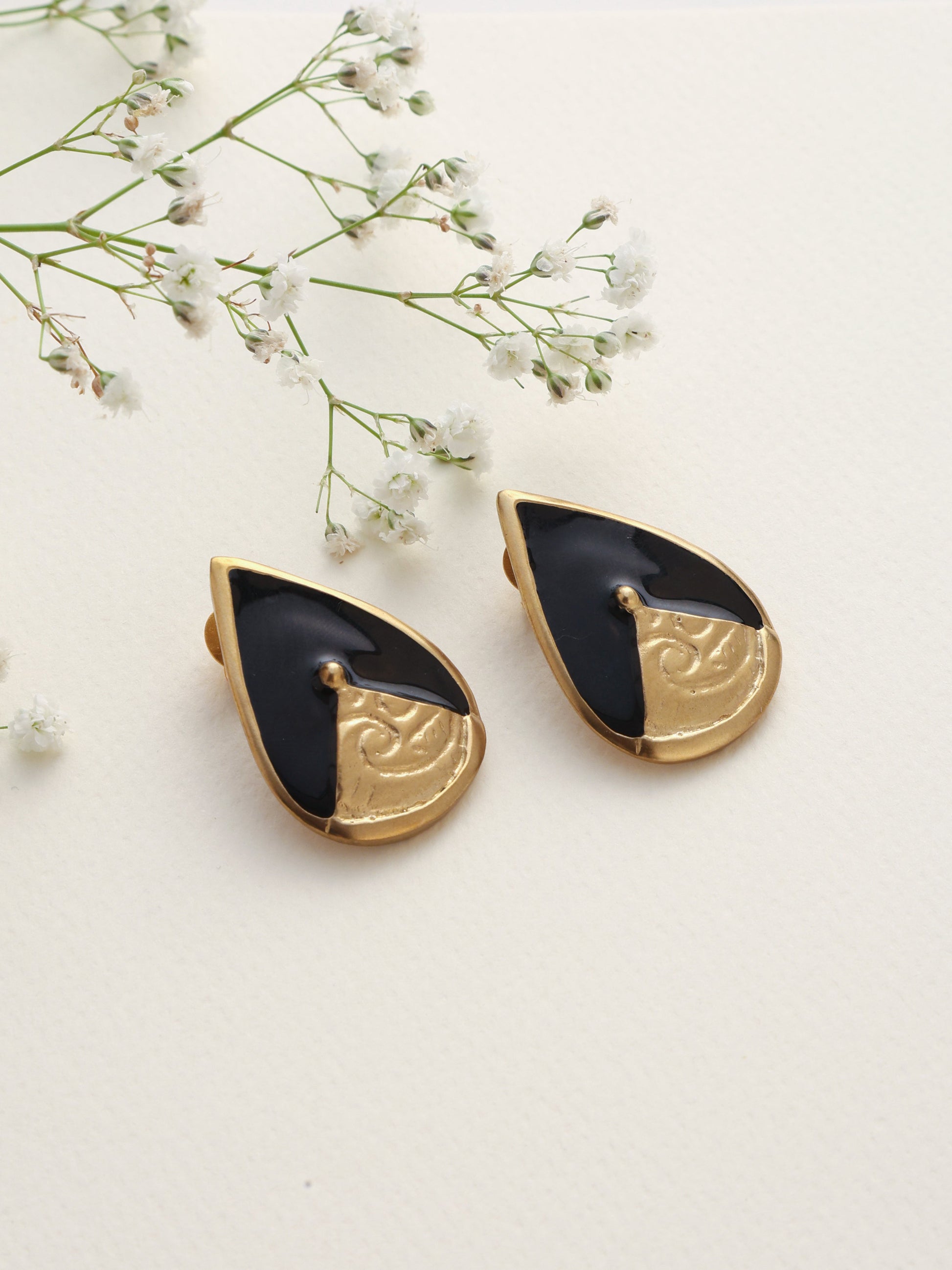 trueBrowns Brass Black Stone Drop Stud Earrings