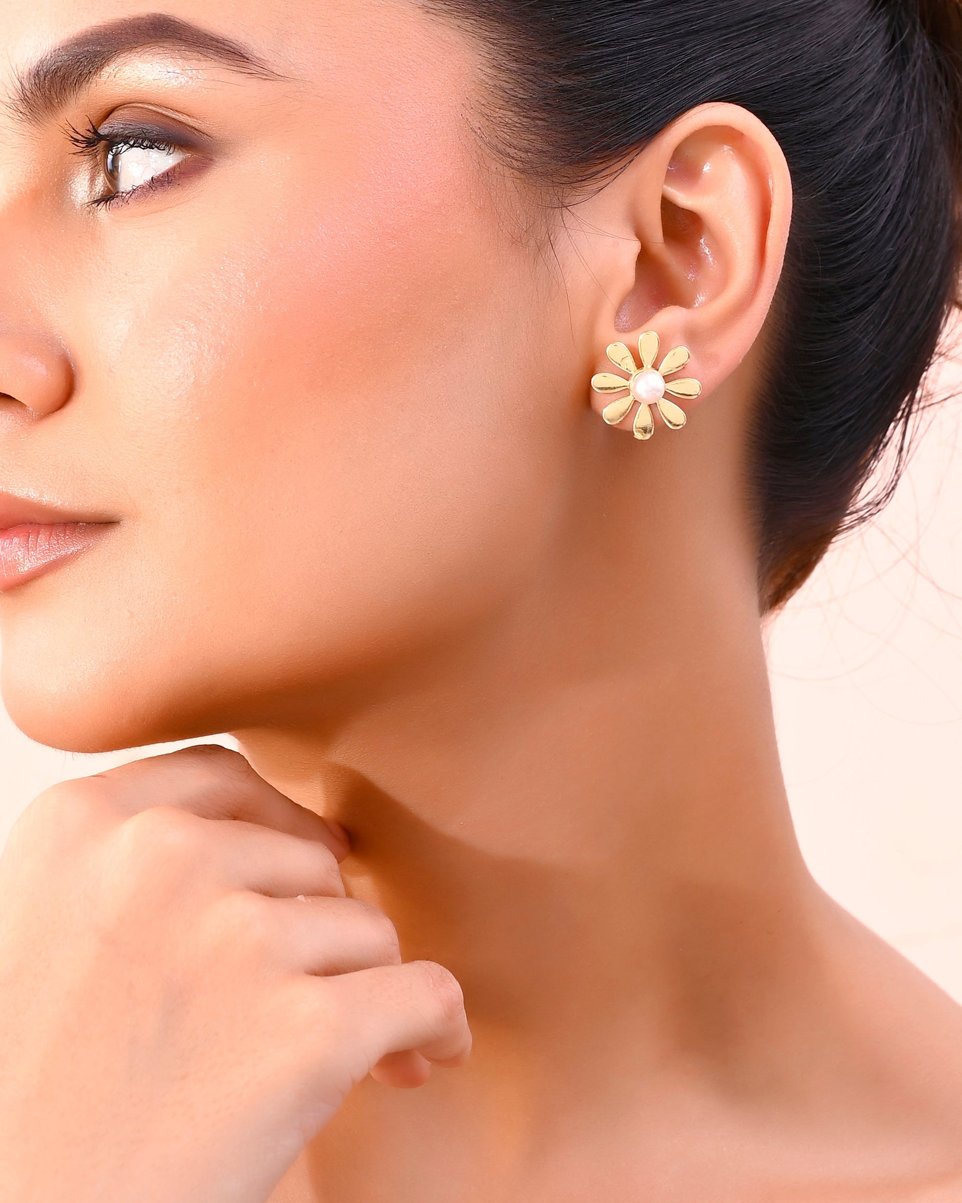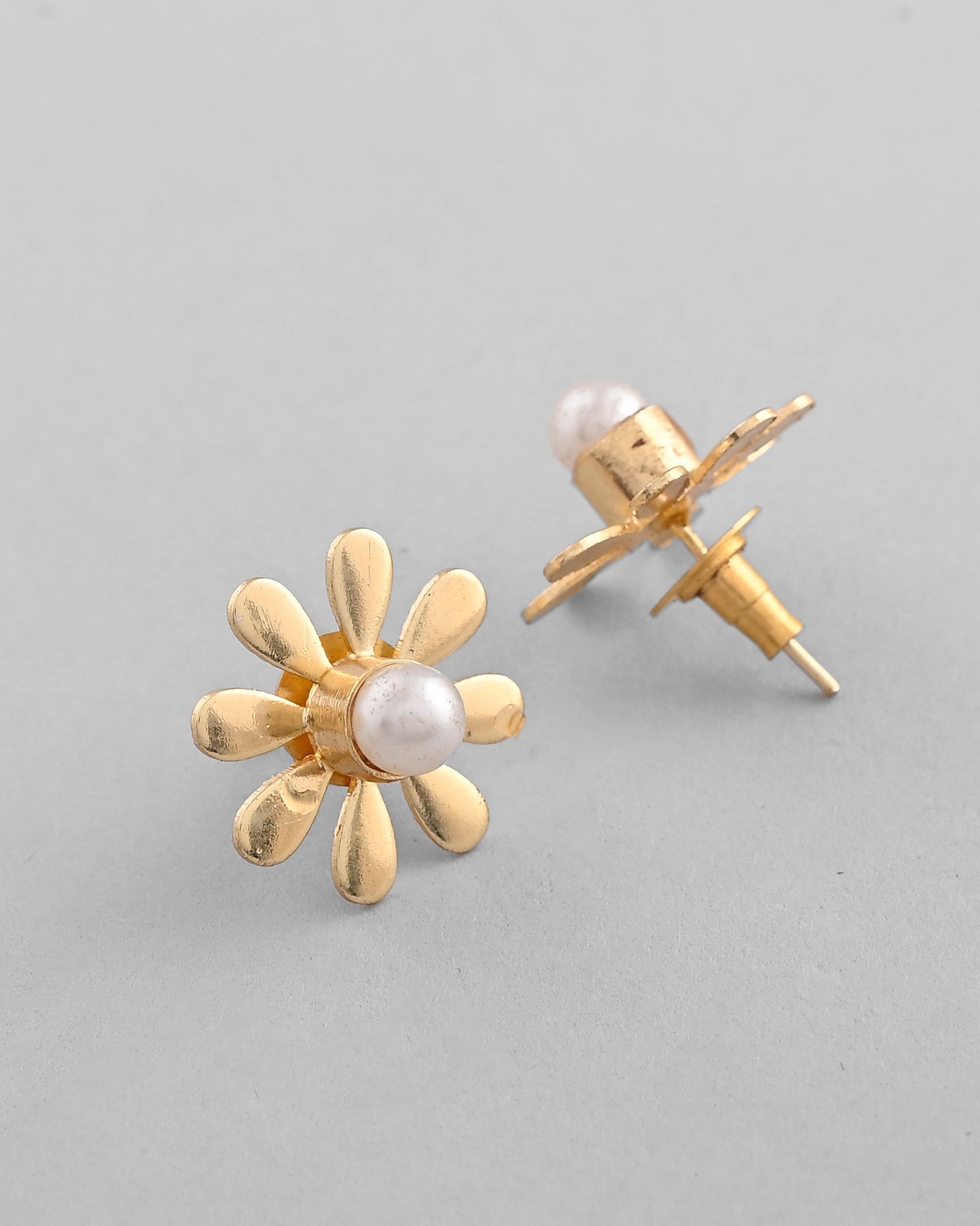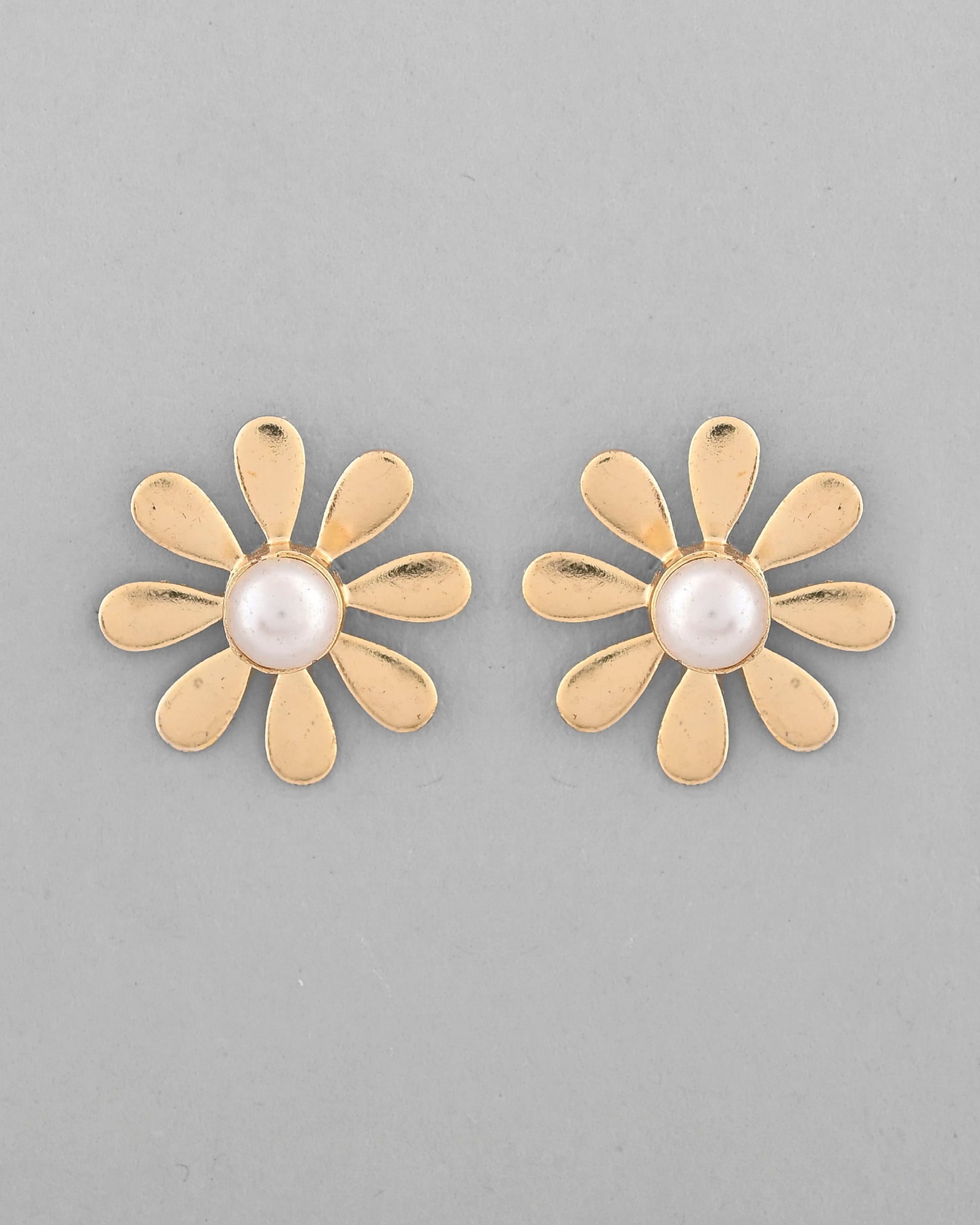 VOJ Gold-Polished Flower Shaped Pearl Stud Earrings