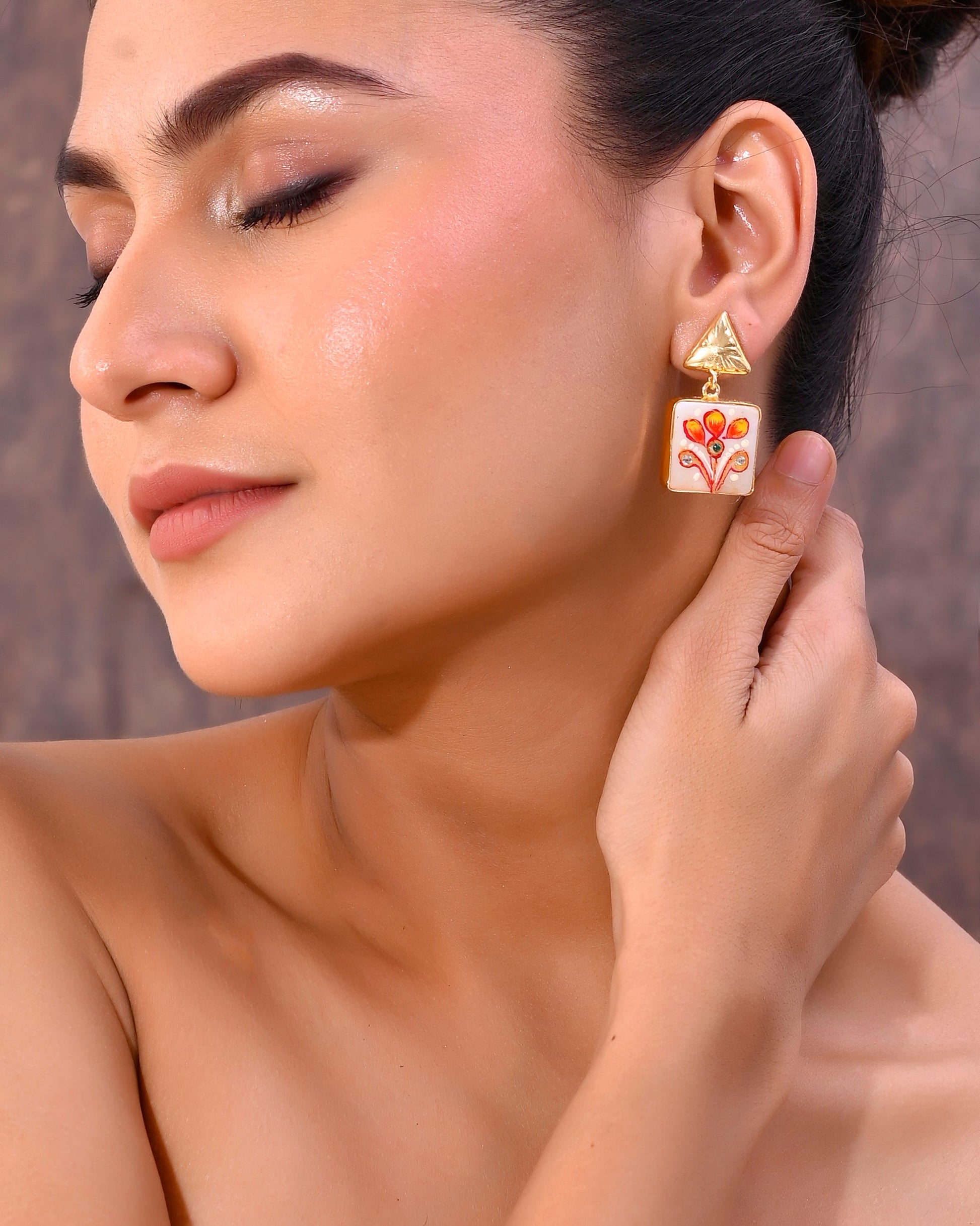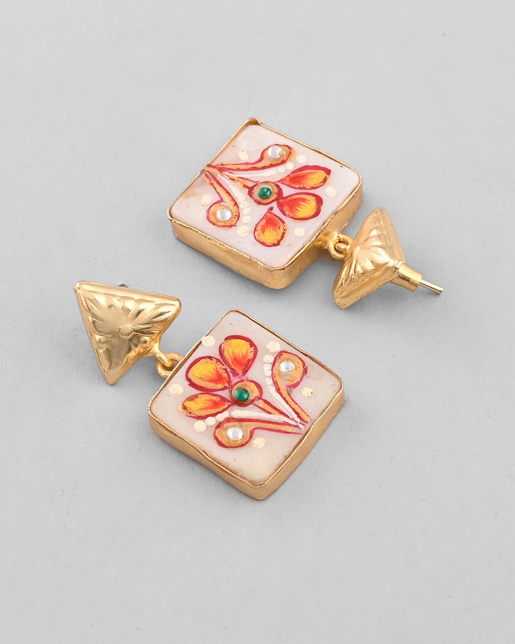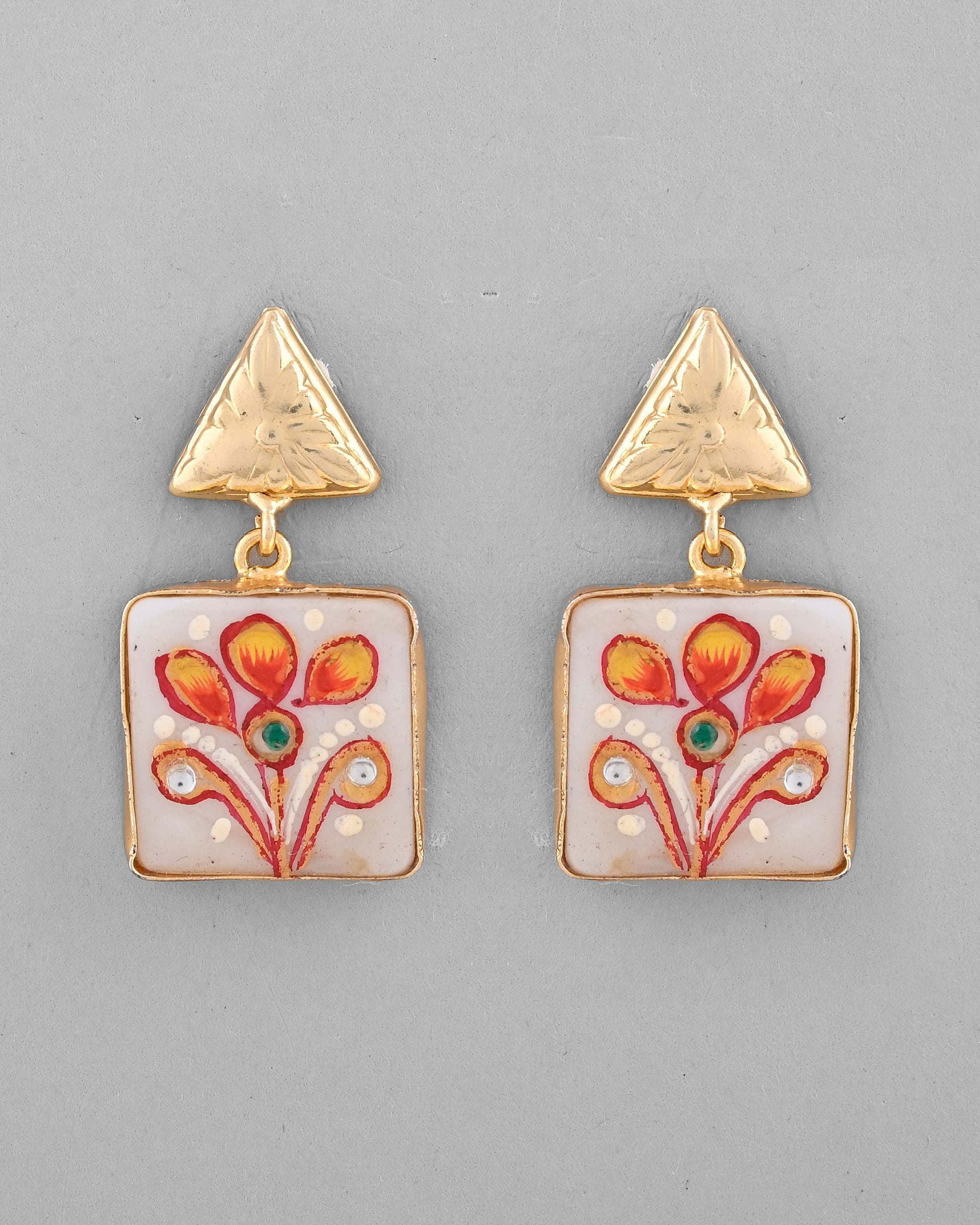 VOJ Gold-Polished Hand Painted Drop Stud Earrings