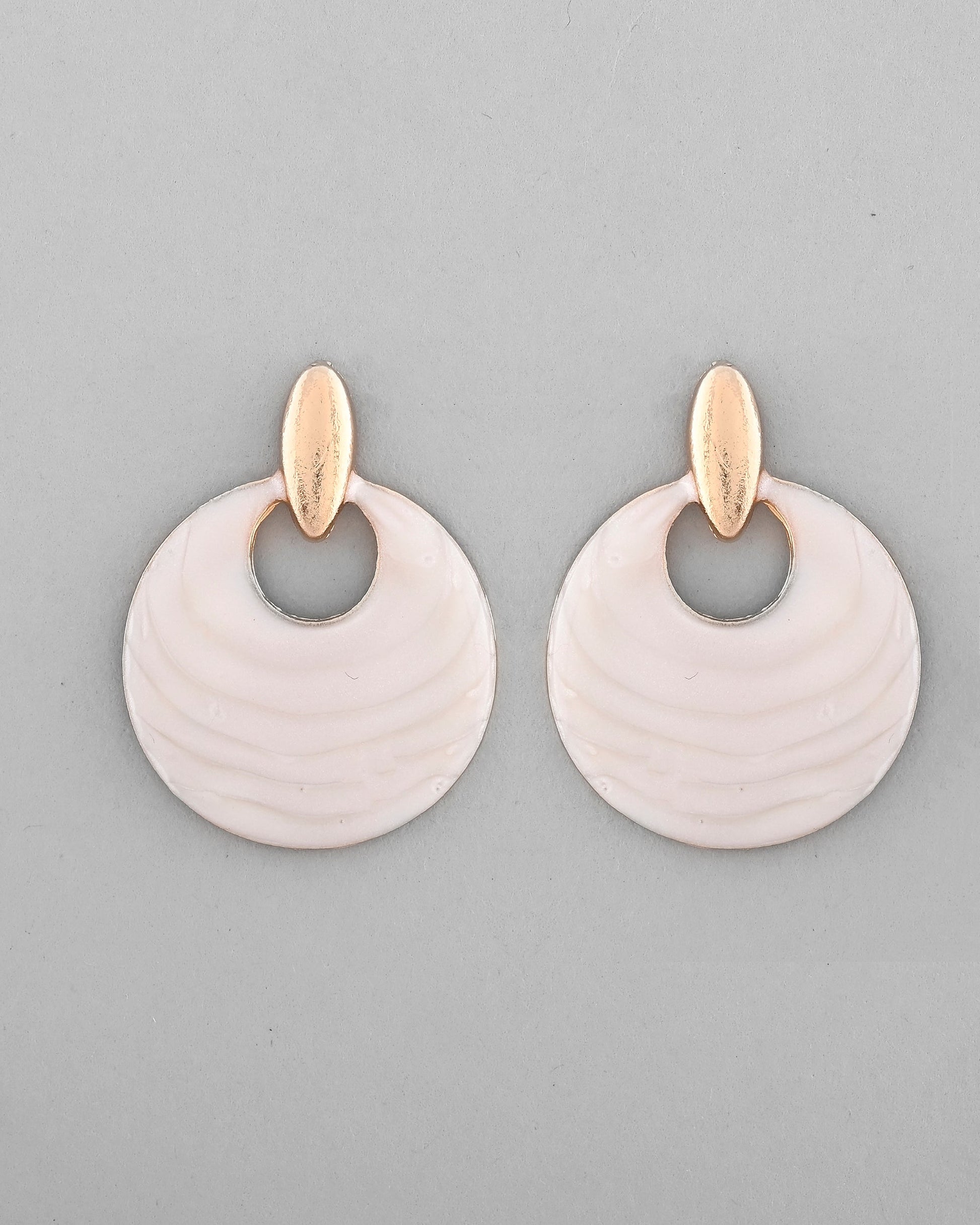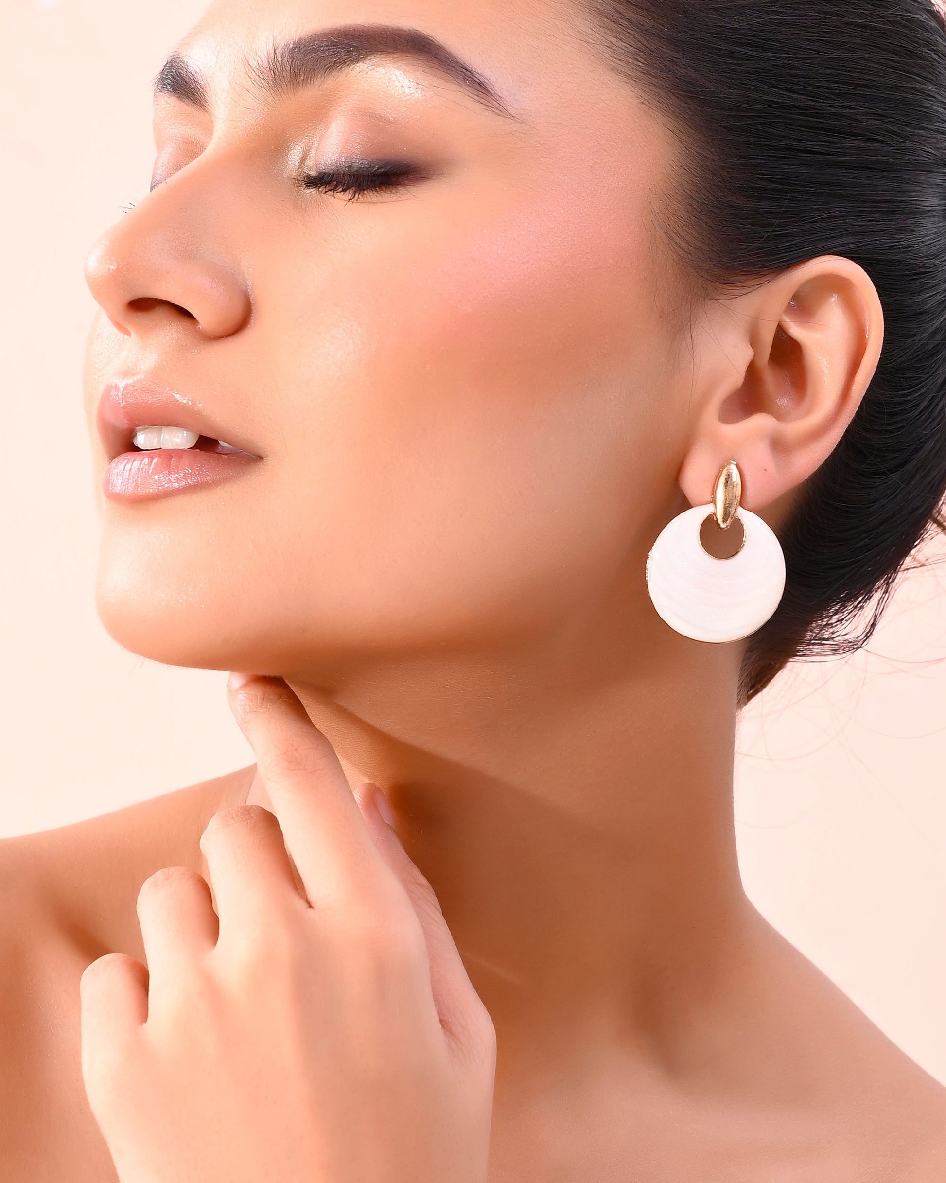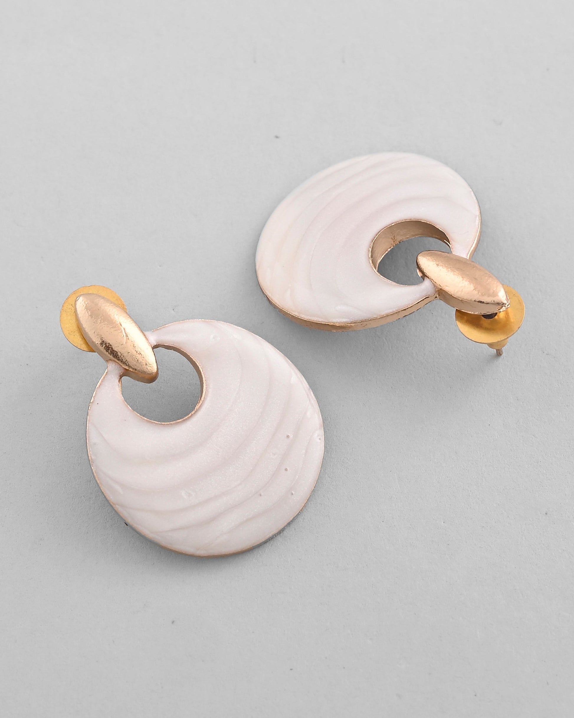 VOJ Gold-Polished Korean Style White Circular Studs Earrings