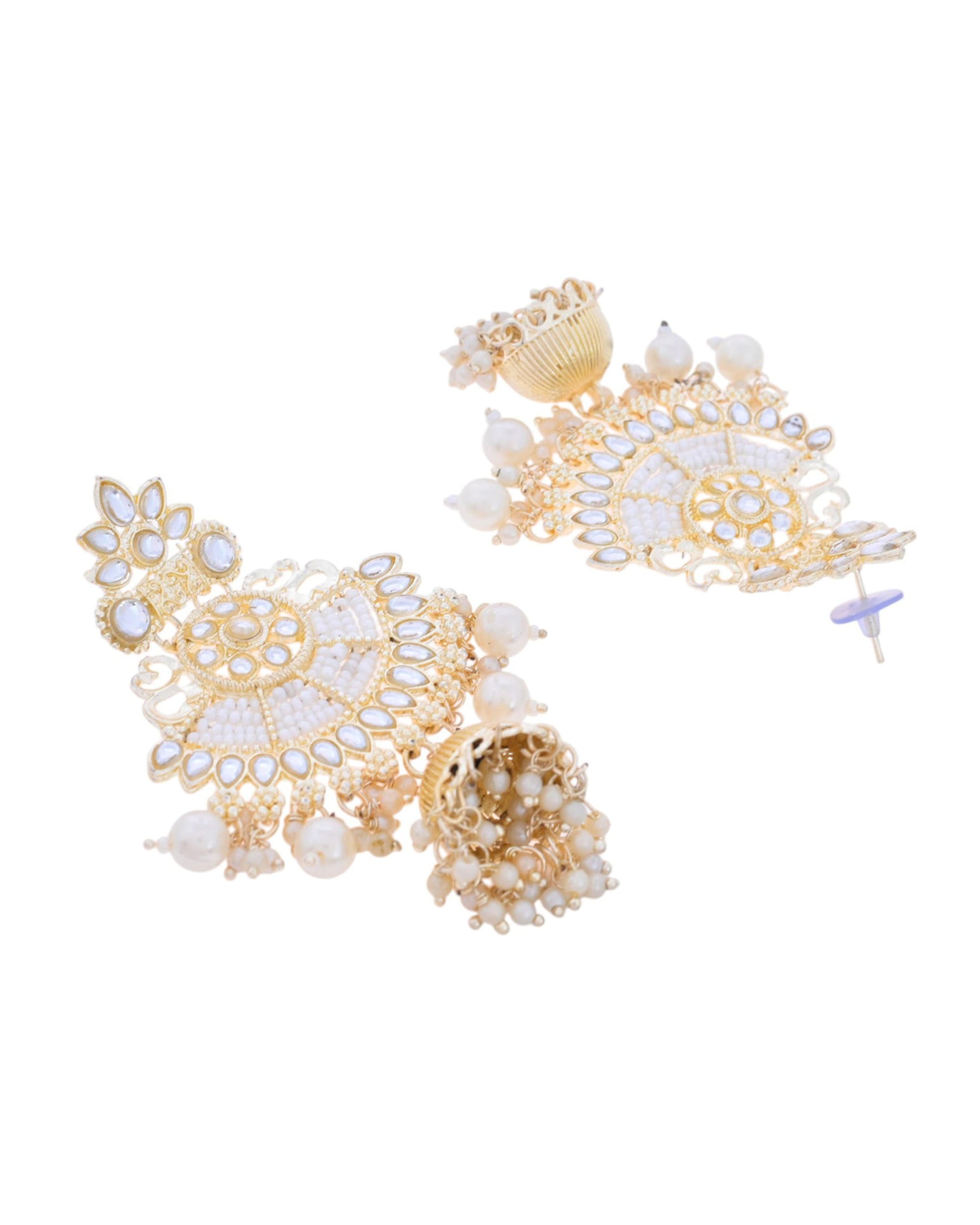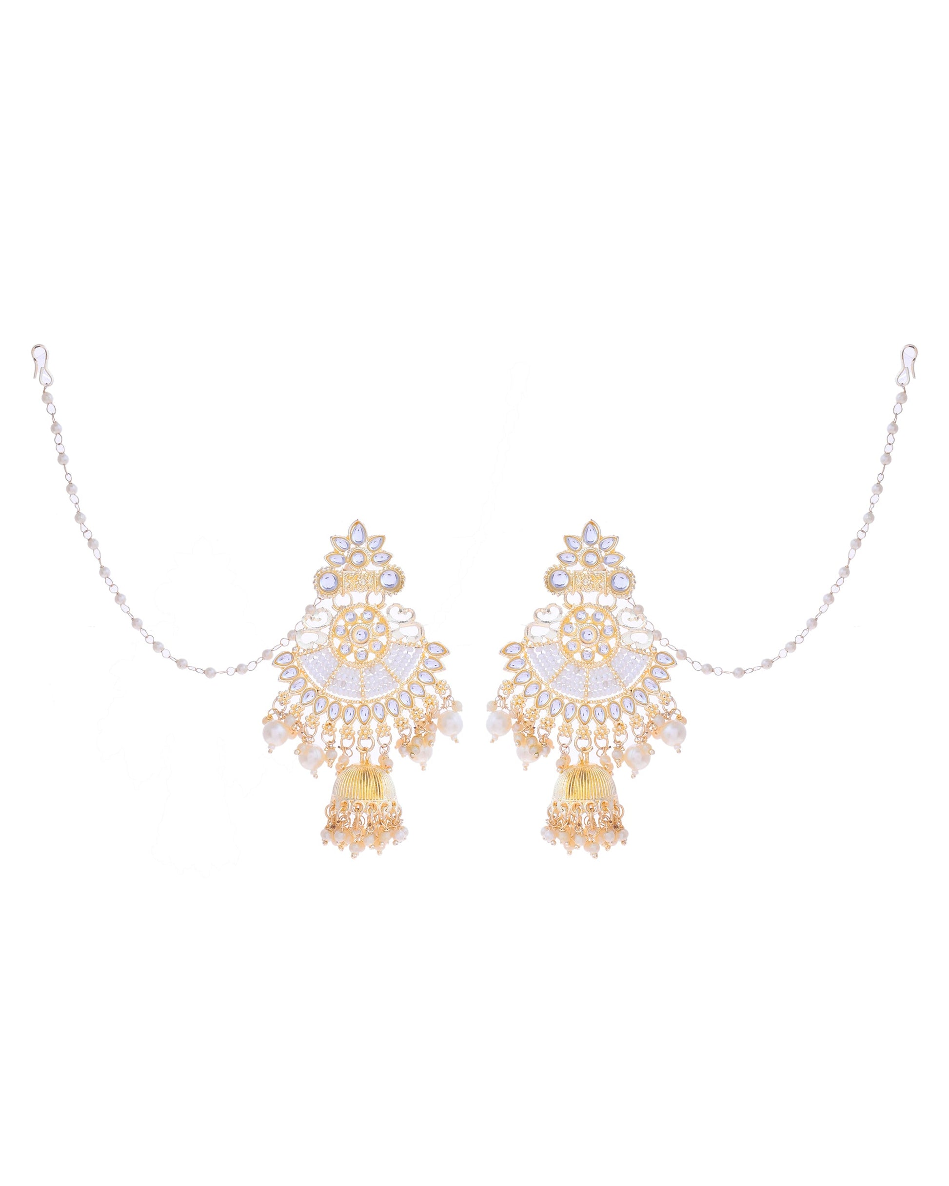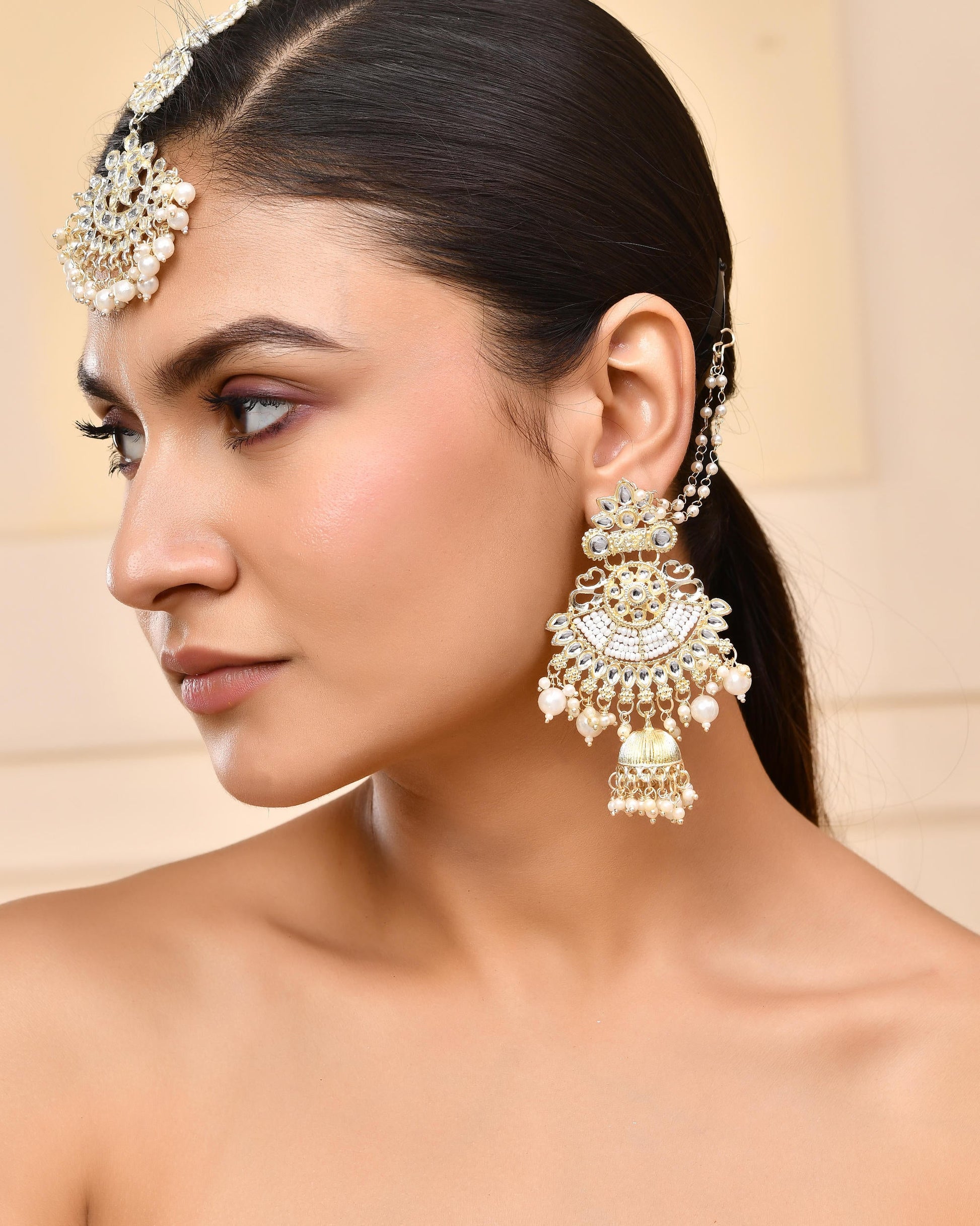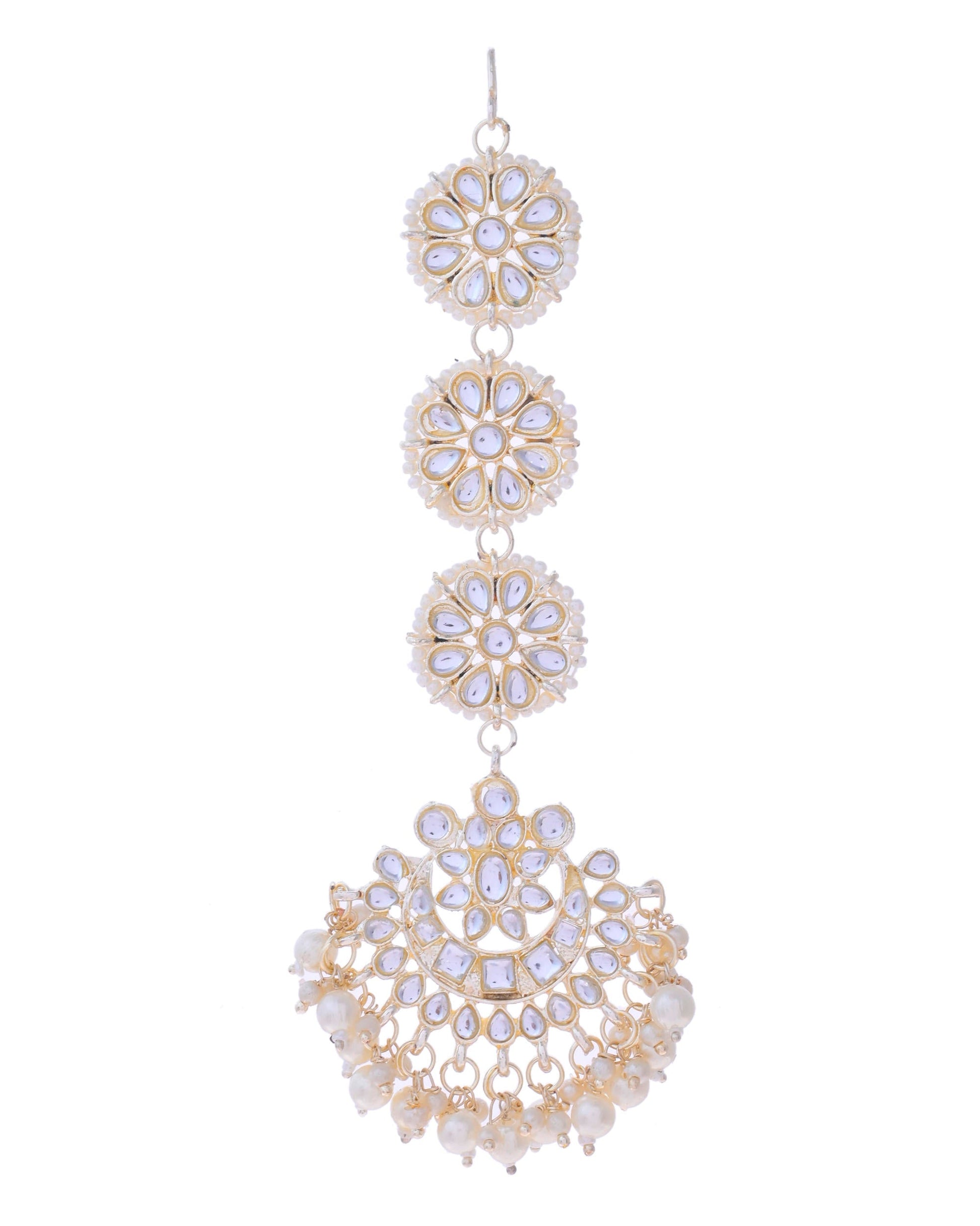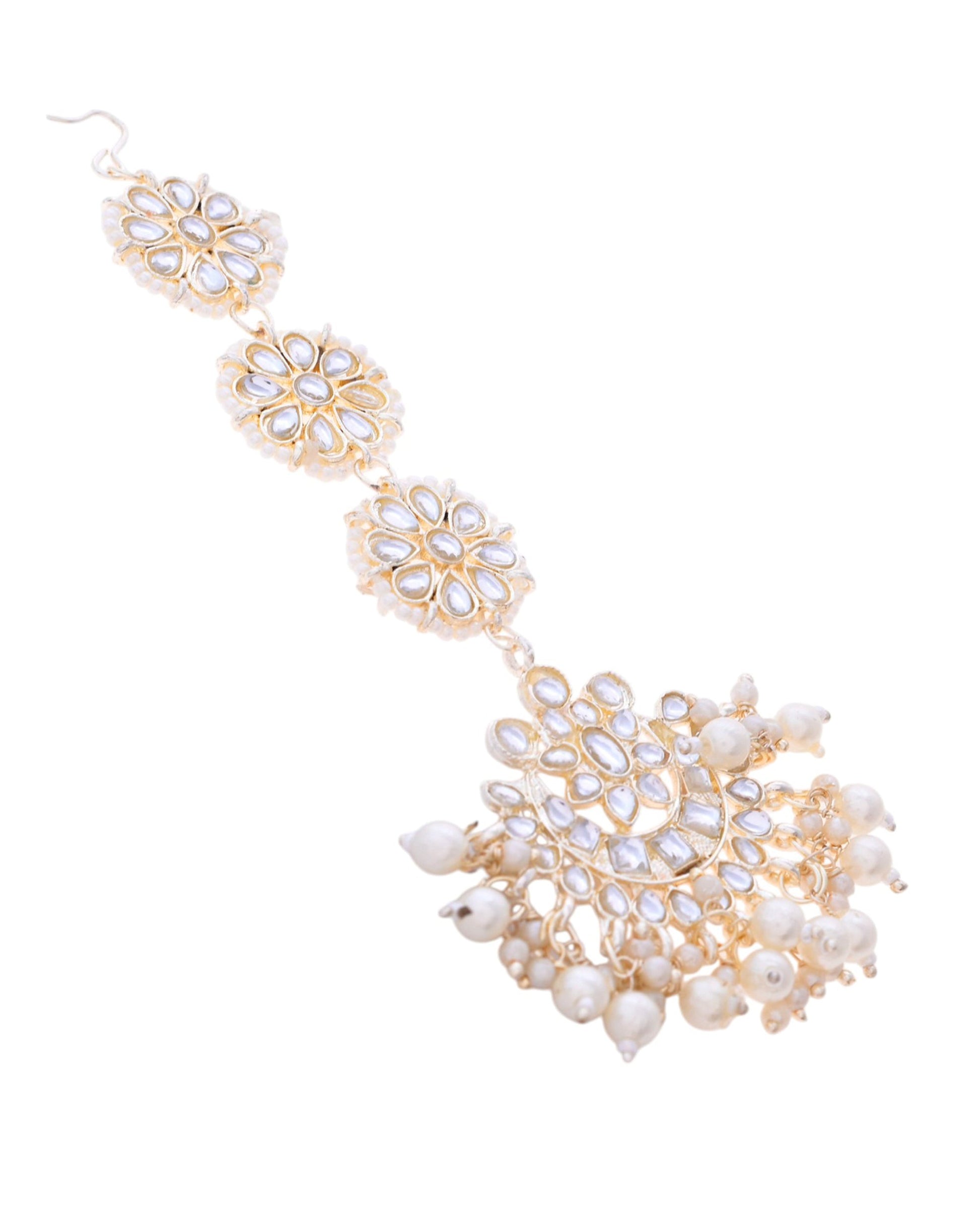 VOJ Gold-Polished Kundan Studded Earrings with Maang Tikka