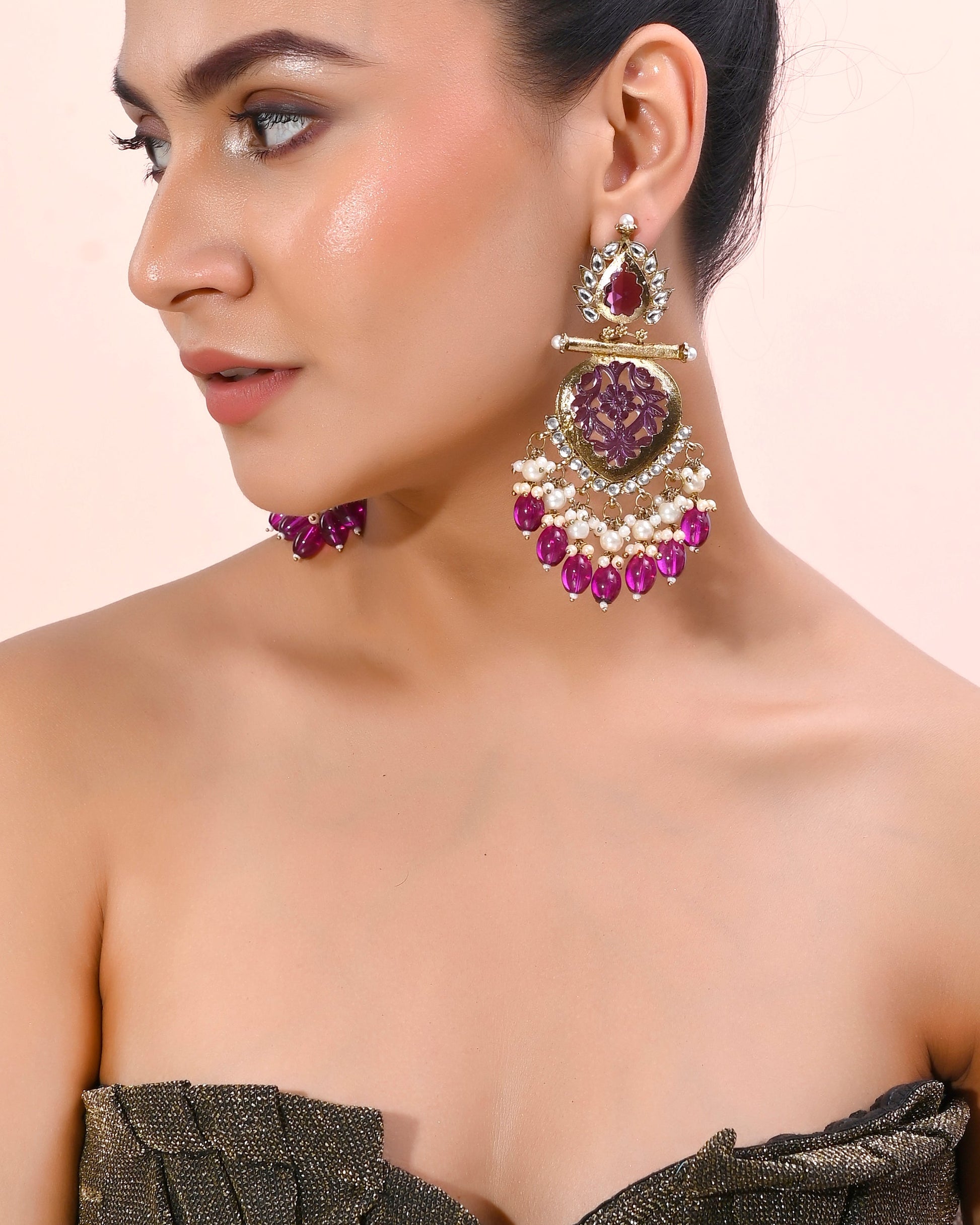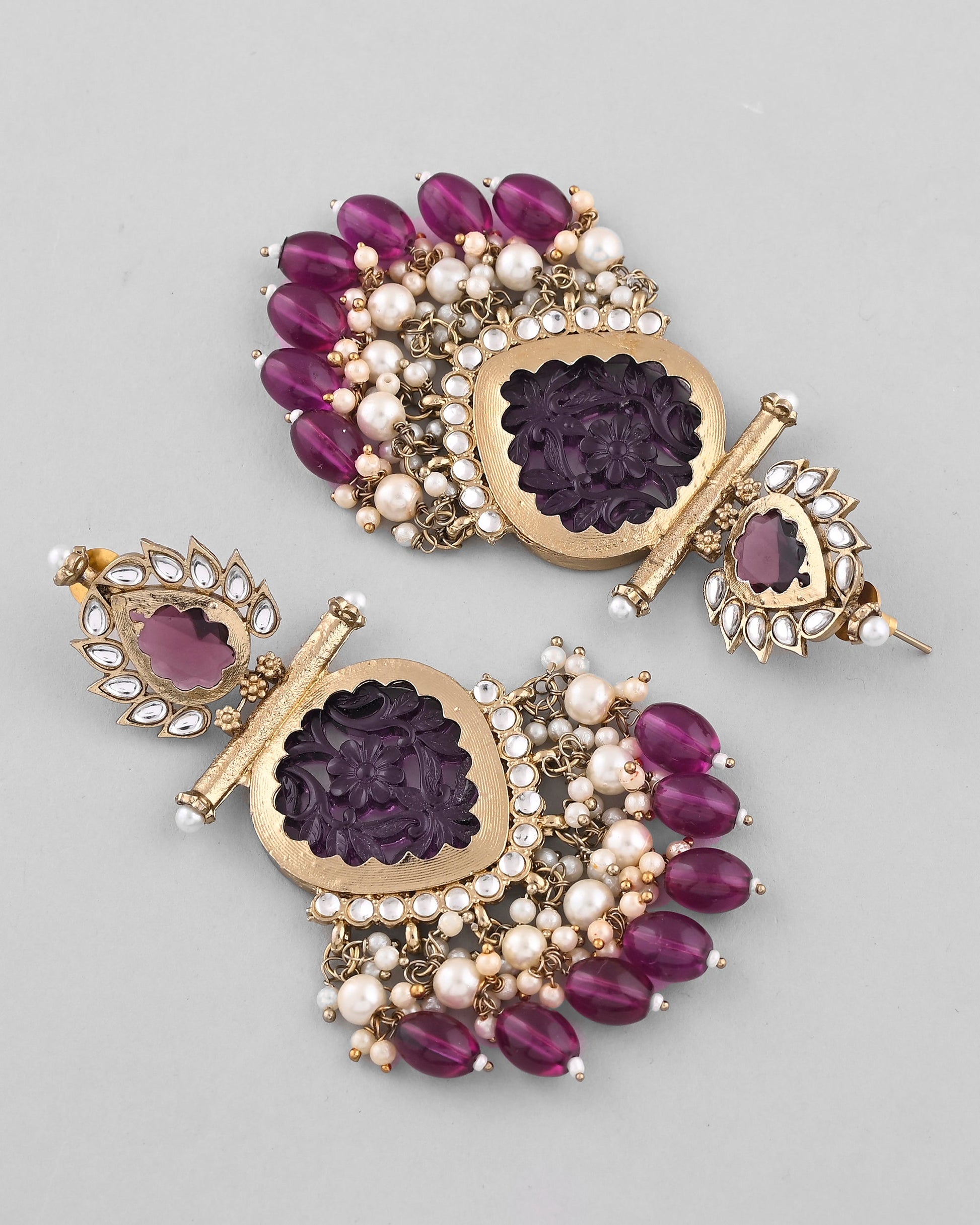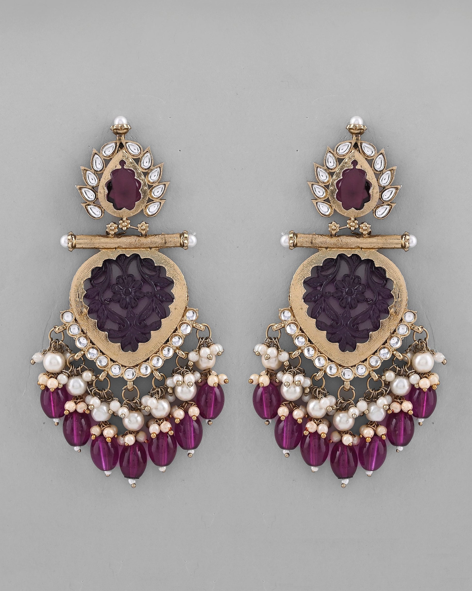 VOJ Gold-Polished Purple Colour Drop And Dangle Statement Earrings