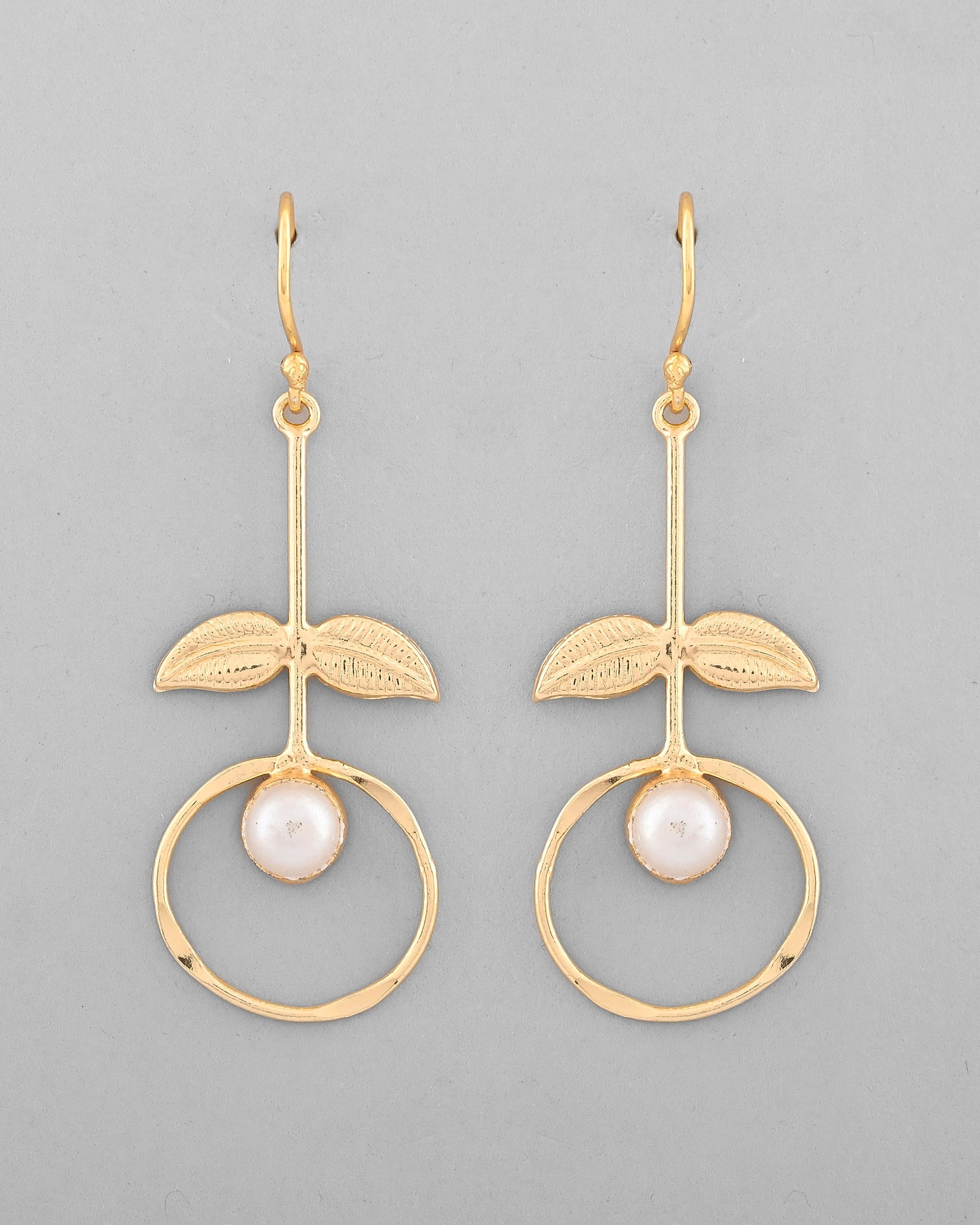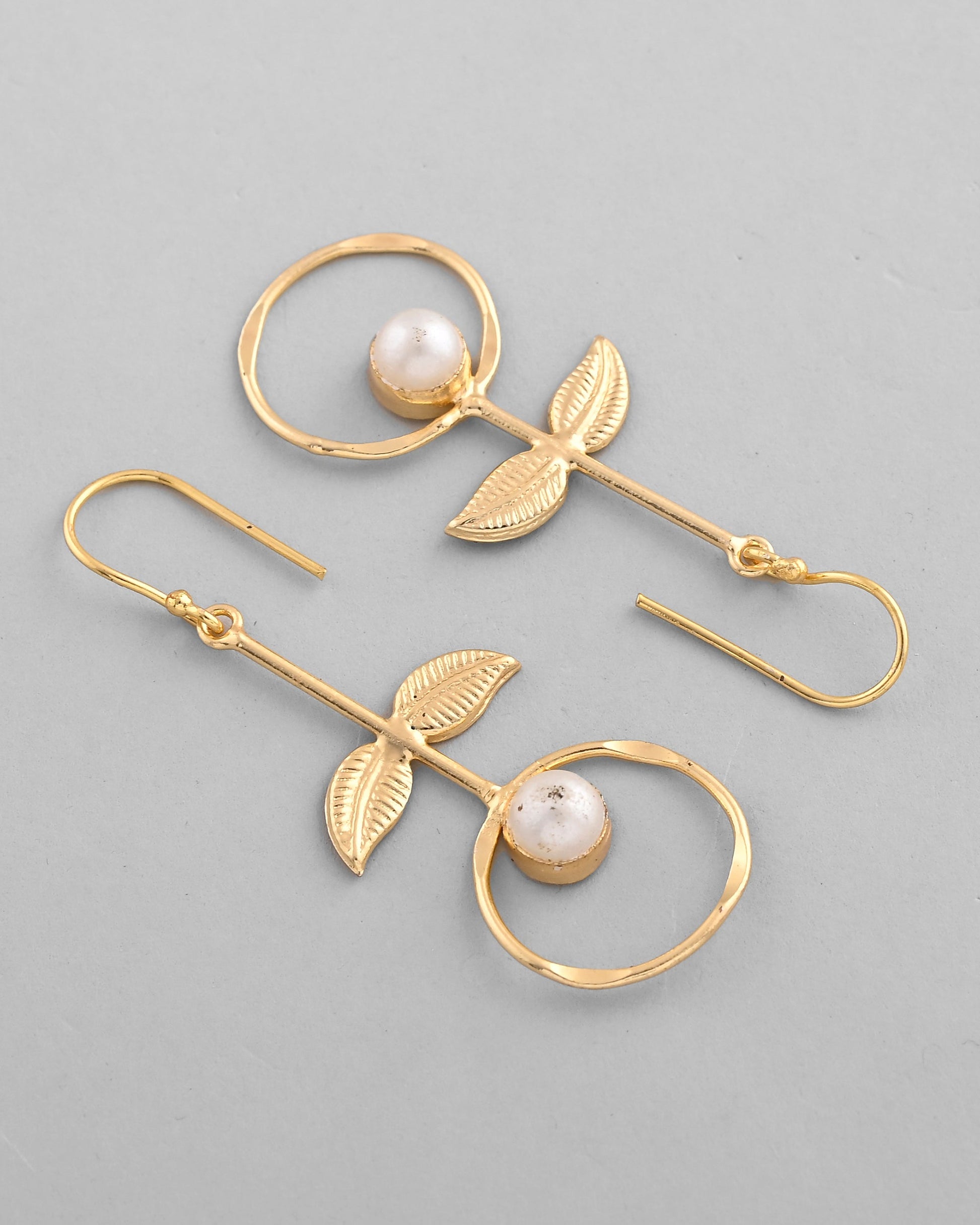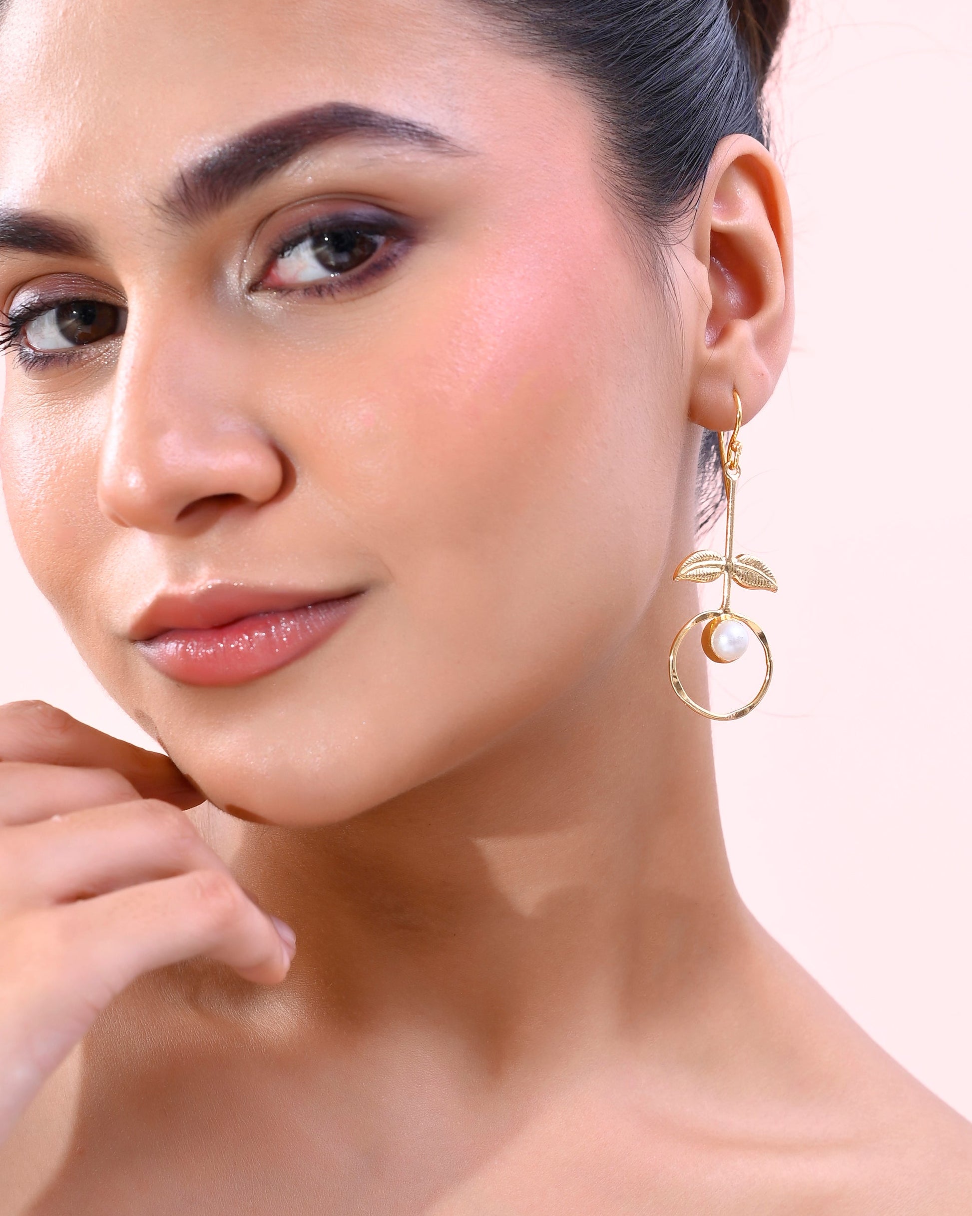 VOJ Gold-Polished White Stone Studded Circular Drop Earrings