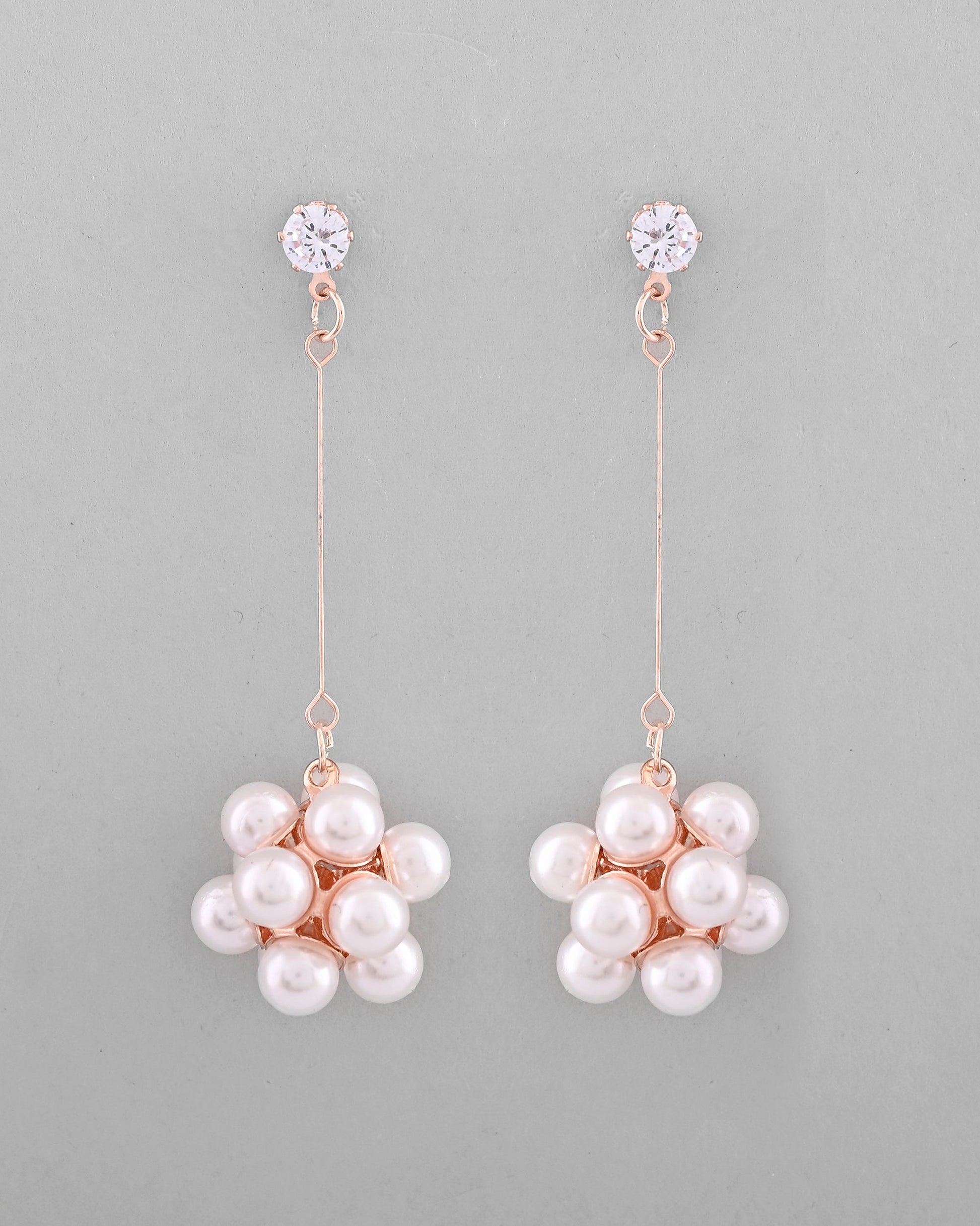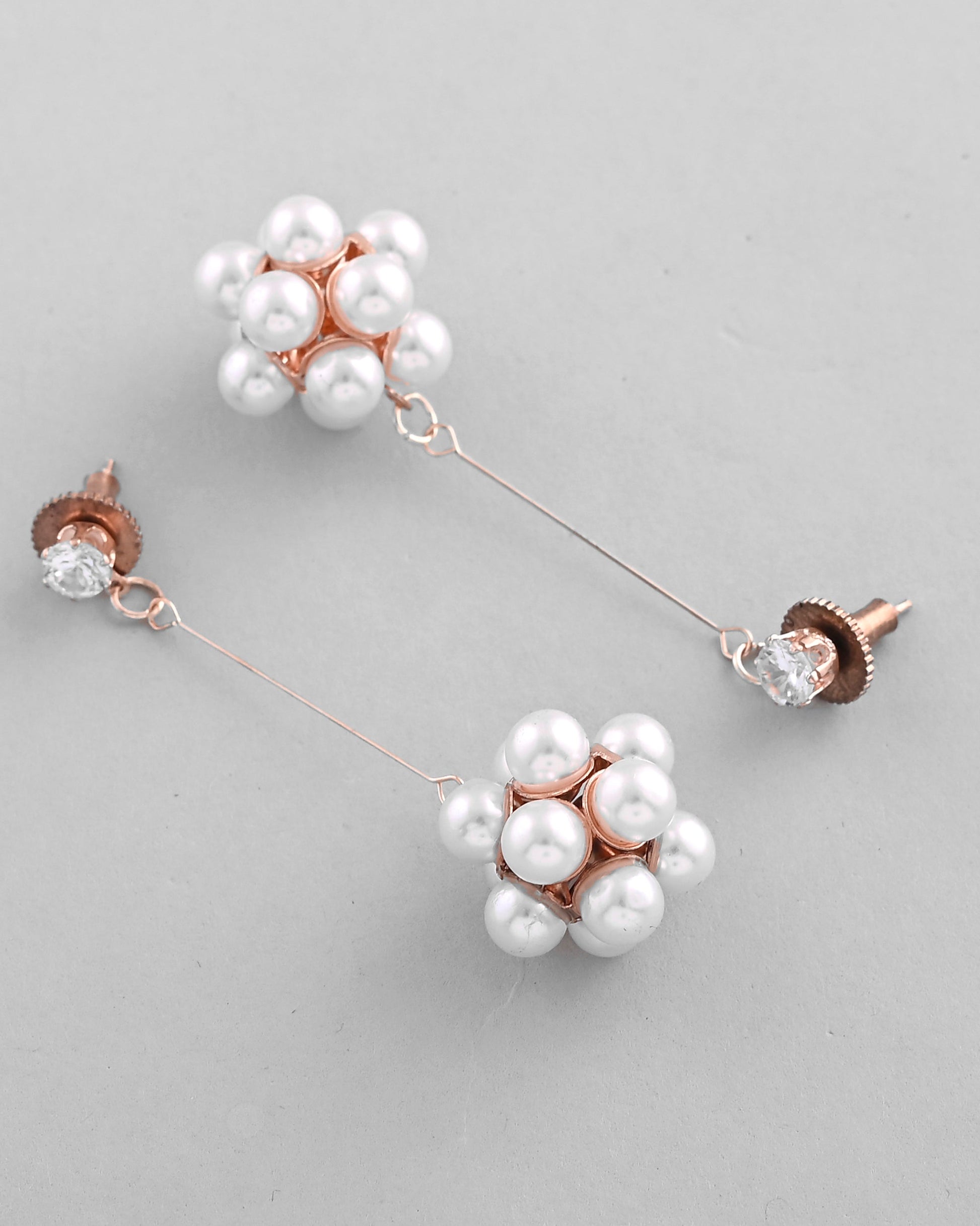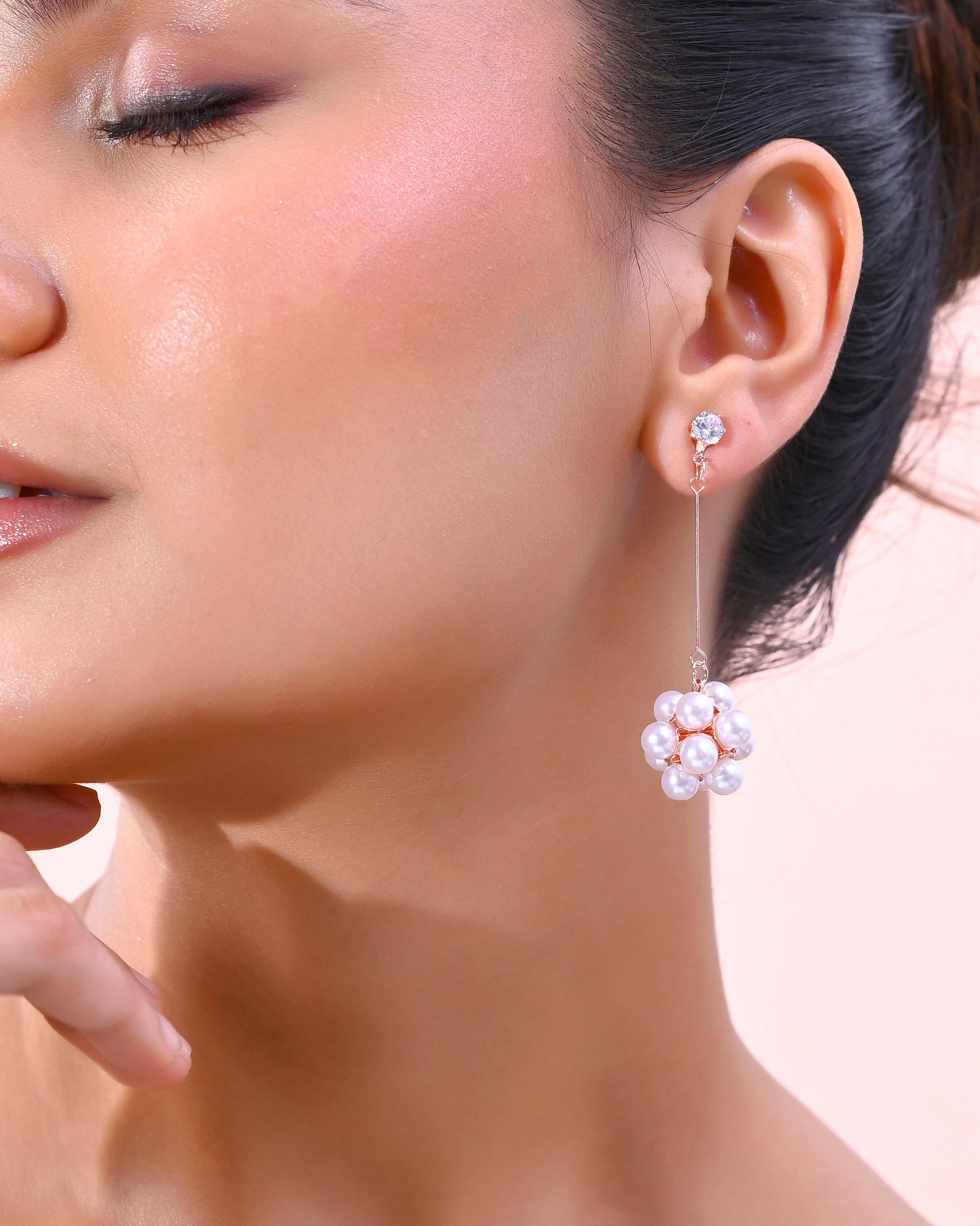 VOJ Rose Gold-Polished Handcrafted Floral Pearl Drop Earrings