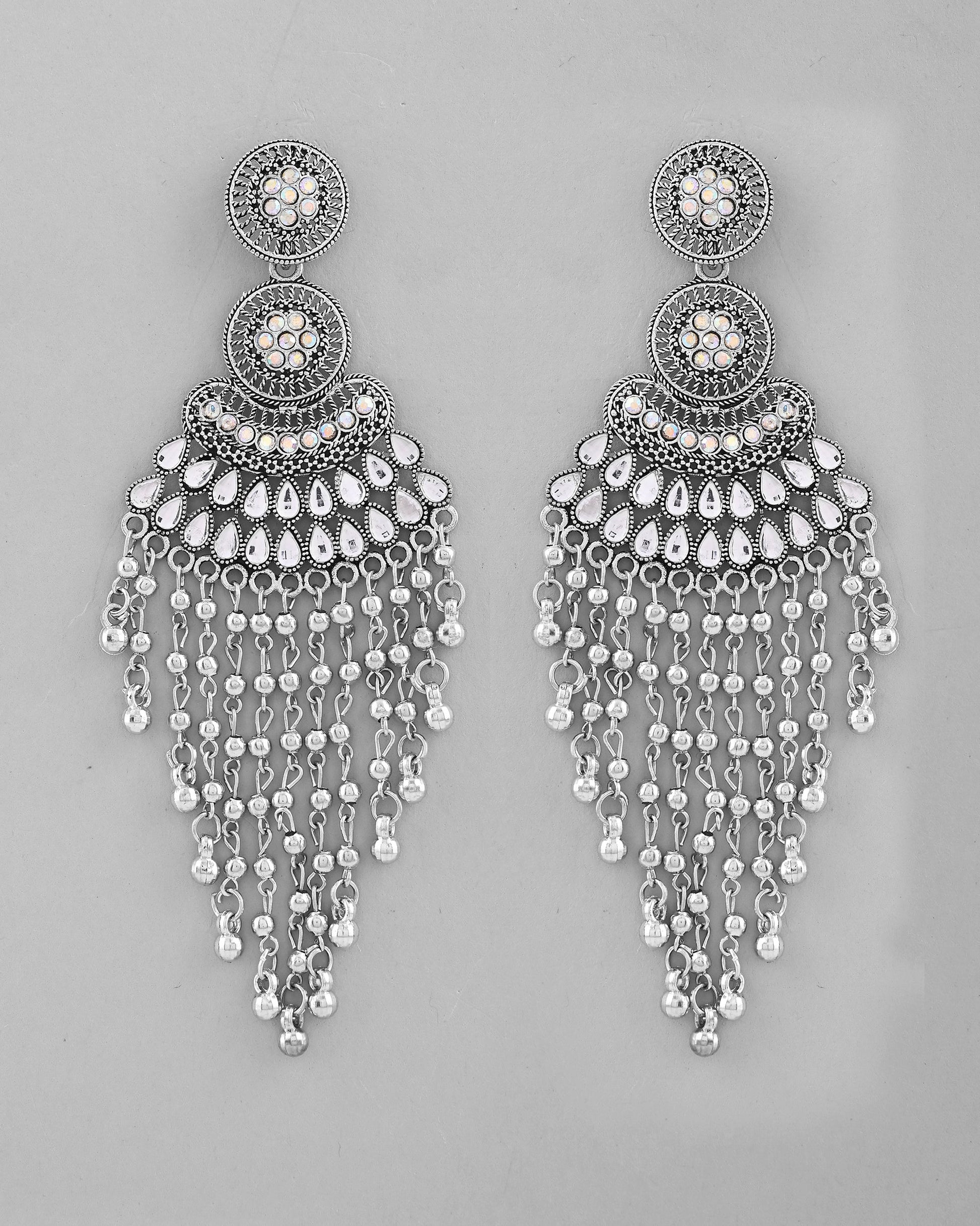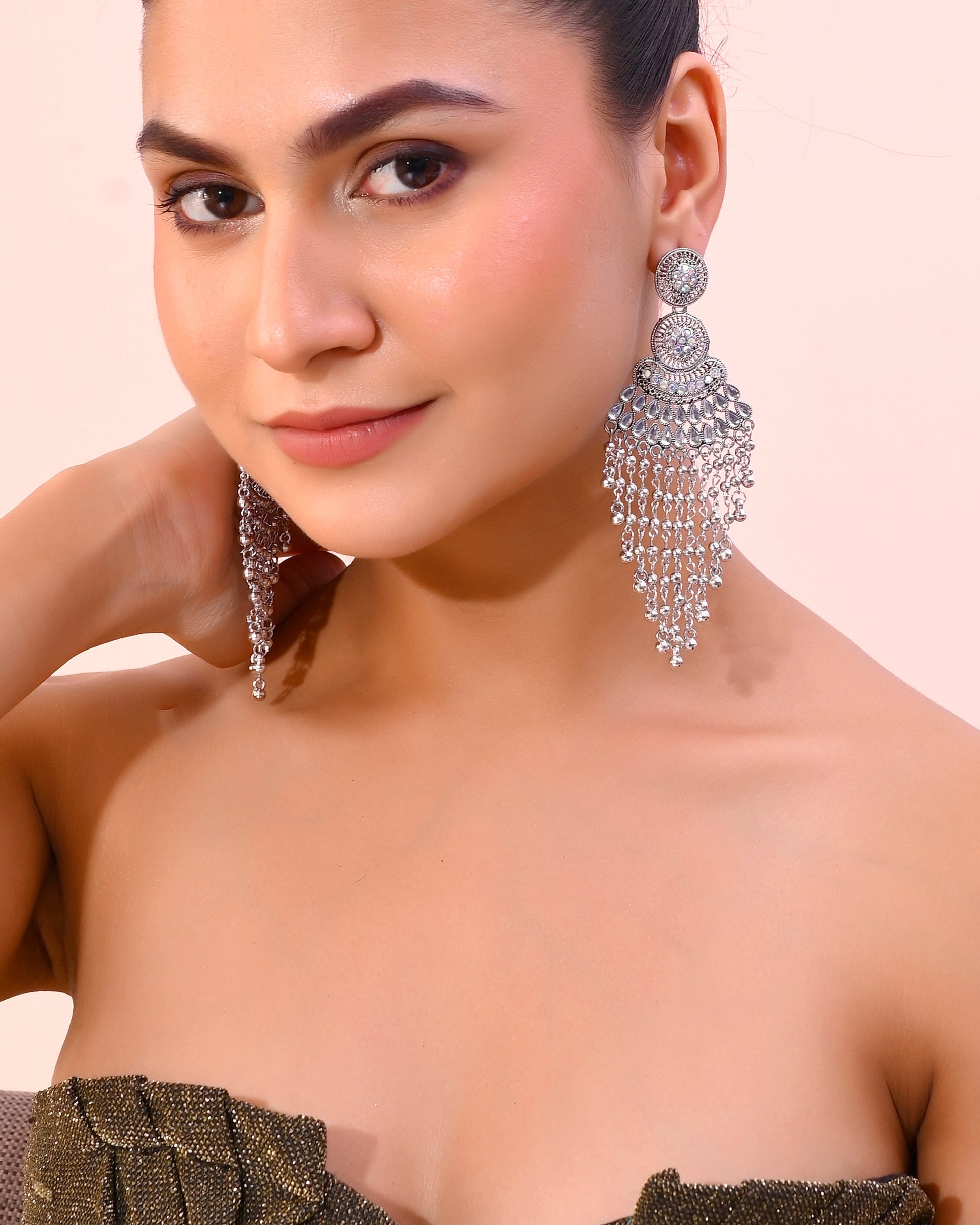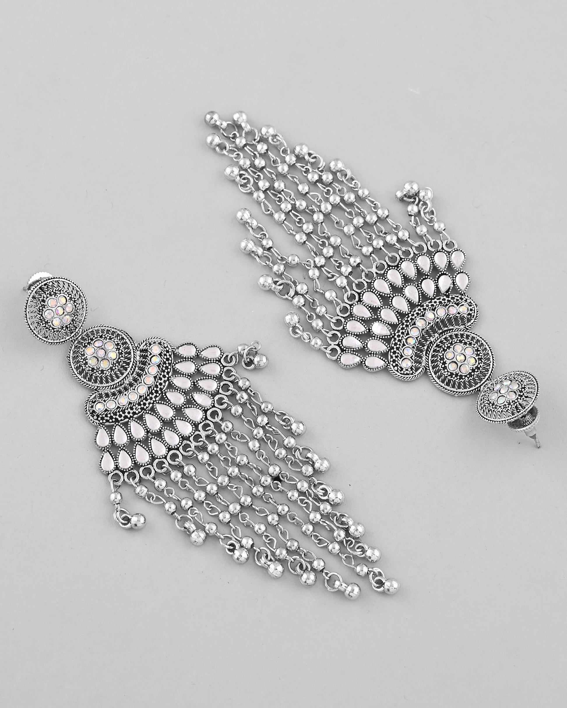 VOJ Silver-Plated Ghungroo Oxidized Drop Long Earrings