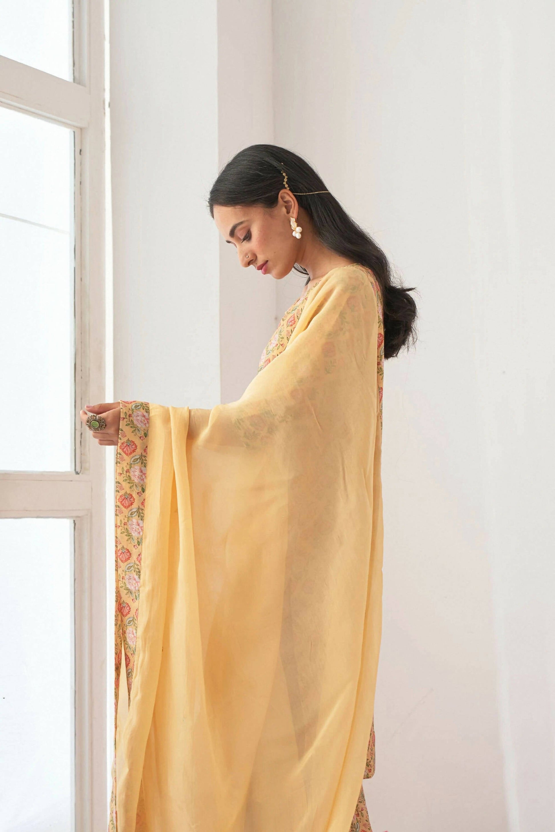 Designer Stylish Yellow Muslin Stitched Suit With Dupatta - Anbazaar