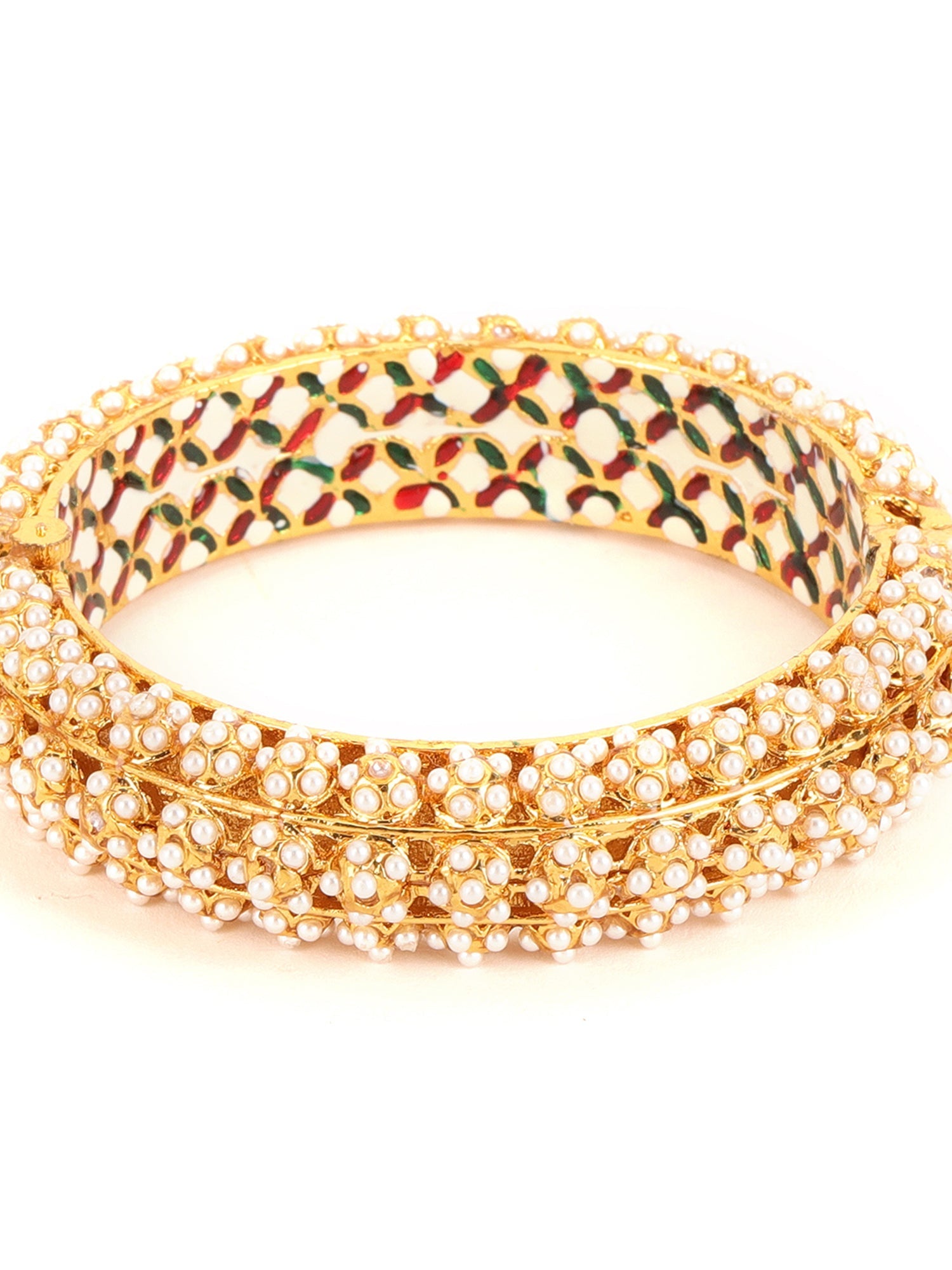 Handcrafted Pearl Heavy Bangle - Ruby Raang
