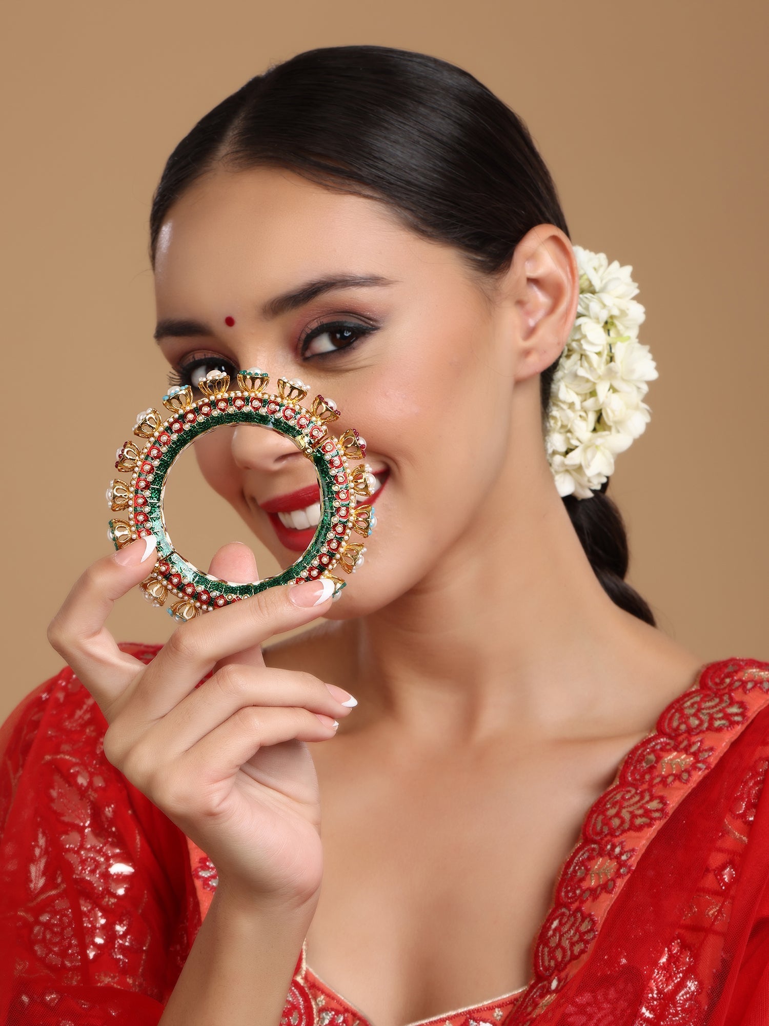 Multi Meenakari Handcrafted Heavy Bangle - Ruby Raang
