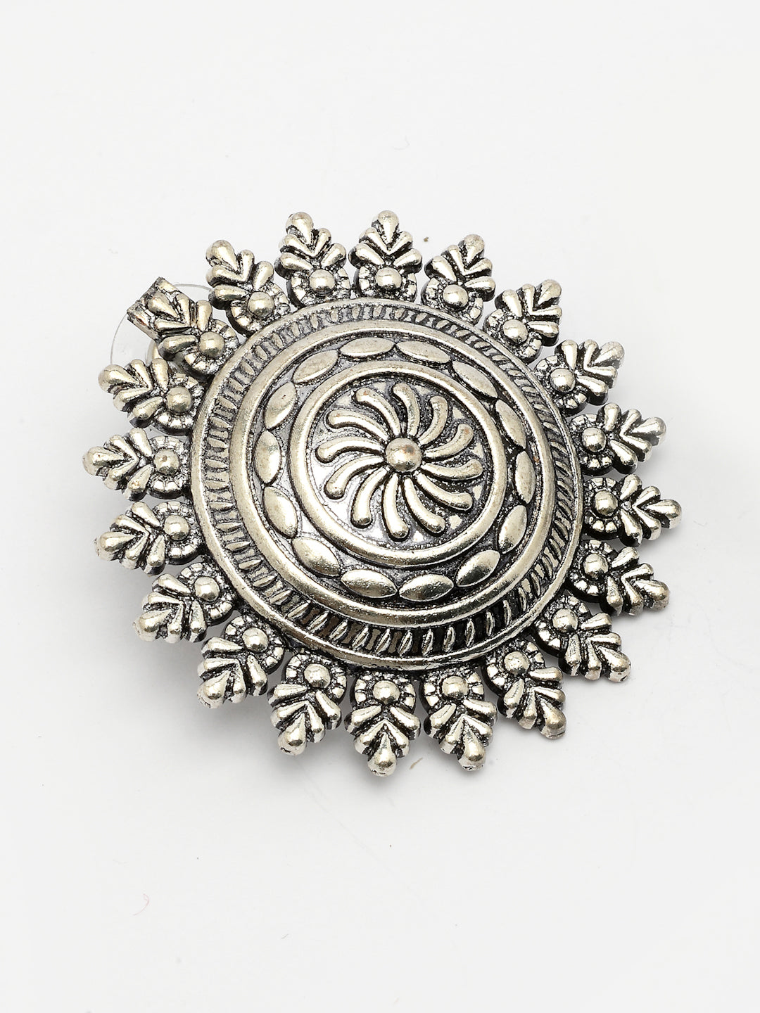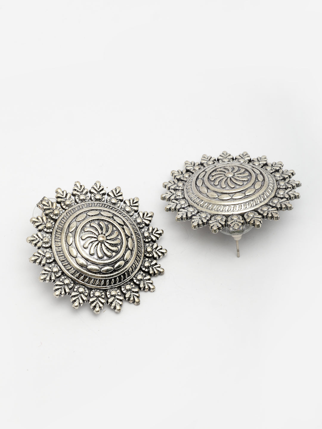 NVR Women Silver Plated Oxidized Circular Shape Stud Earrings
