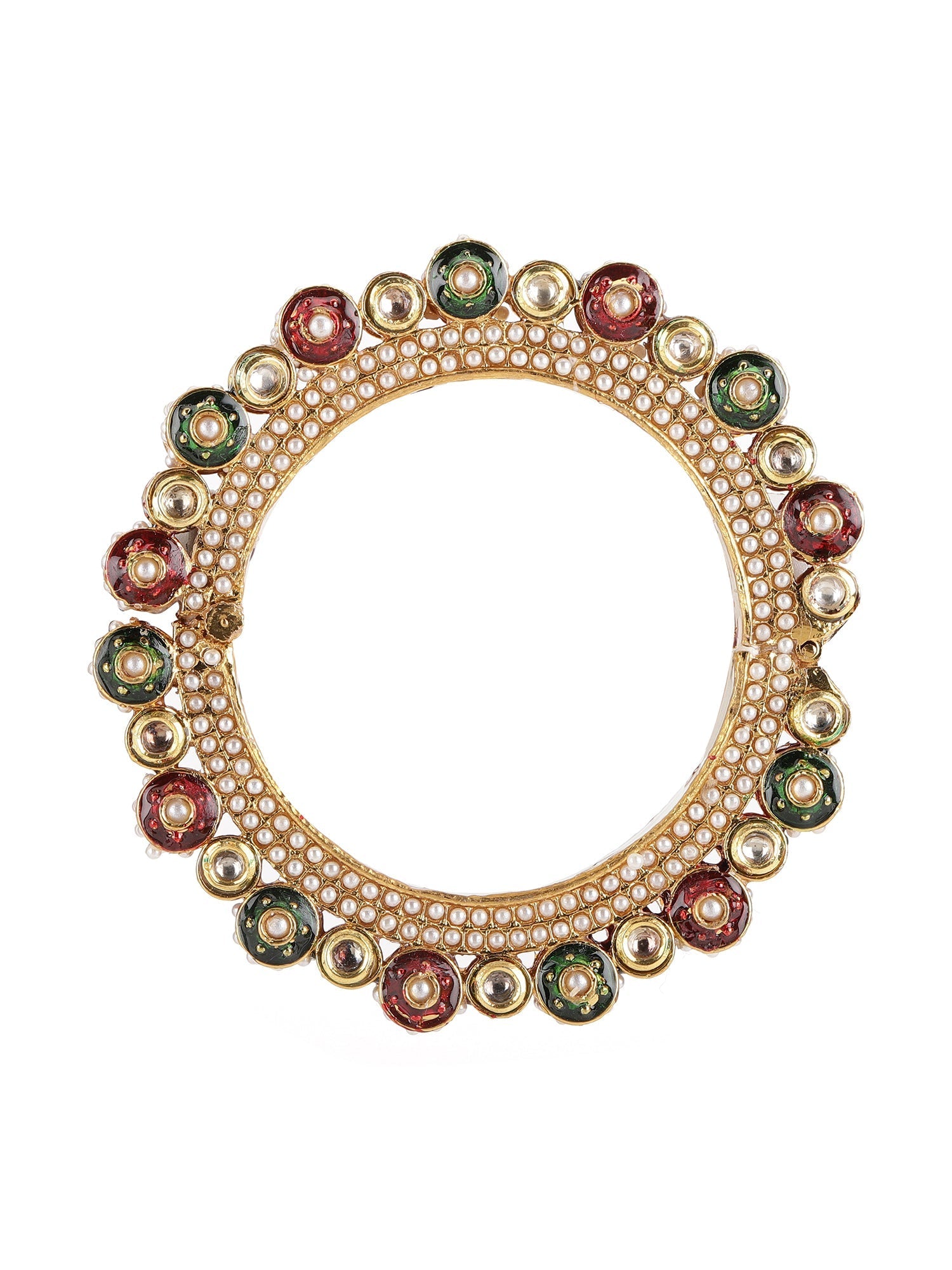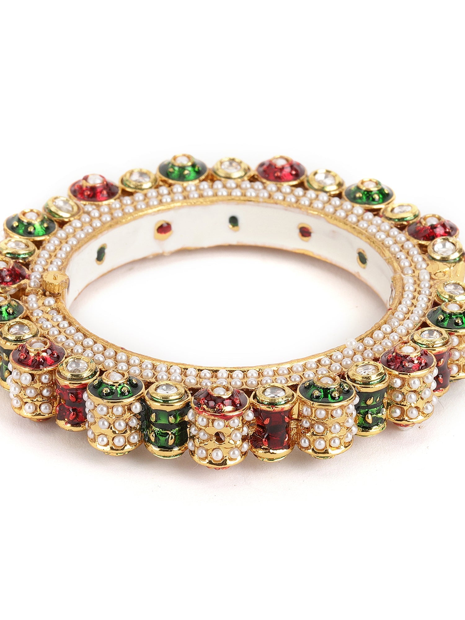 Pearl Meenakari Handcrafted Heavy Bangle - Ruby Raang