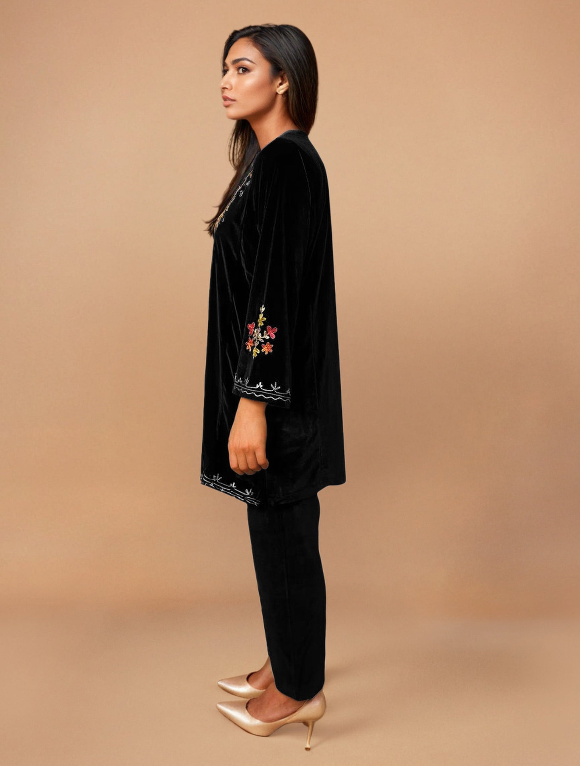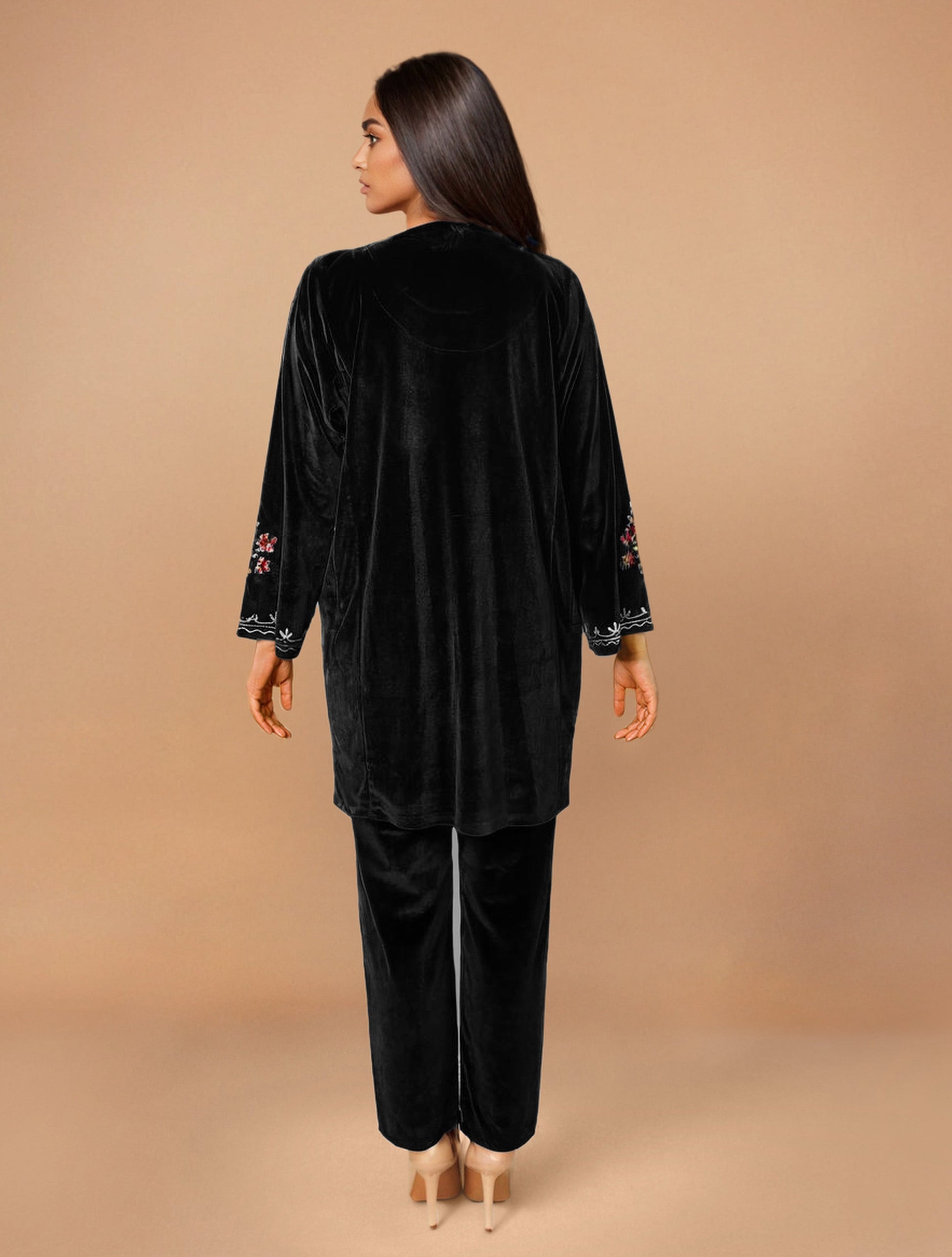 trueBrowns Black Velvet Embroidered Co-ord Set