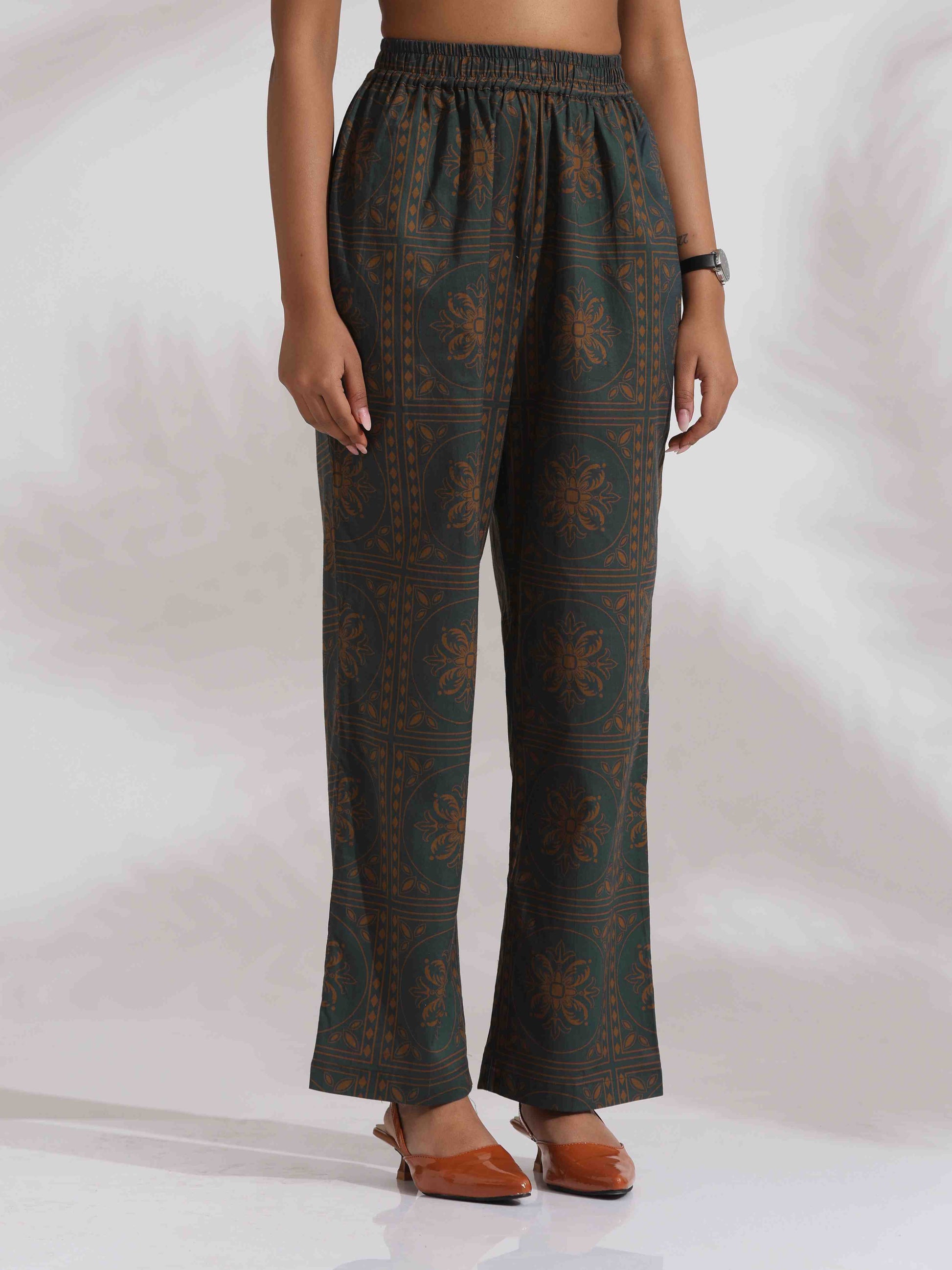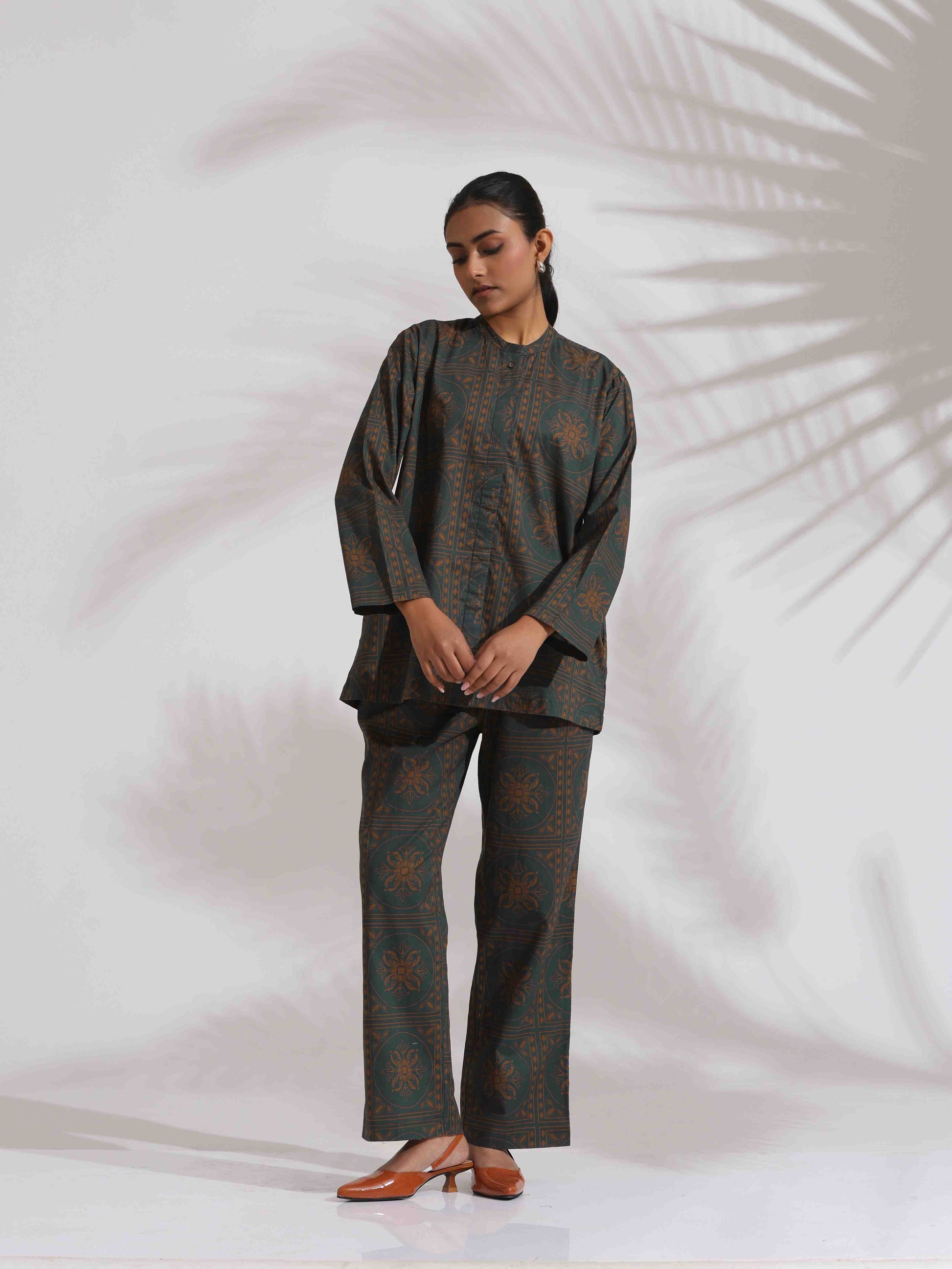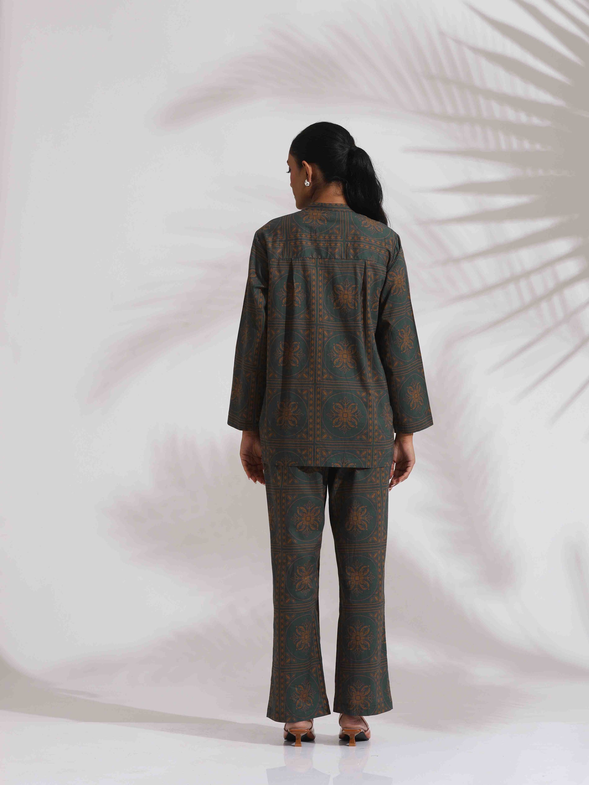 trueBrowns Green Cotton Print Shirt Top & Pants Co-ord Set
